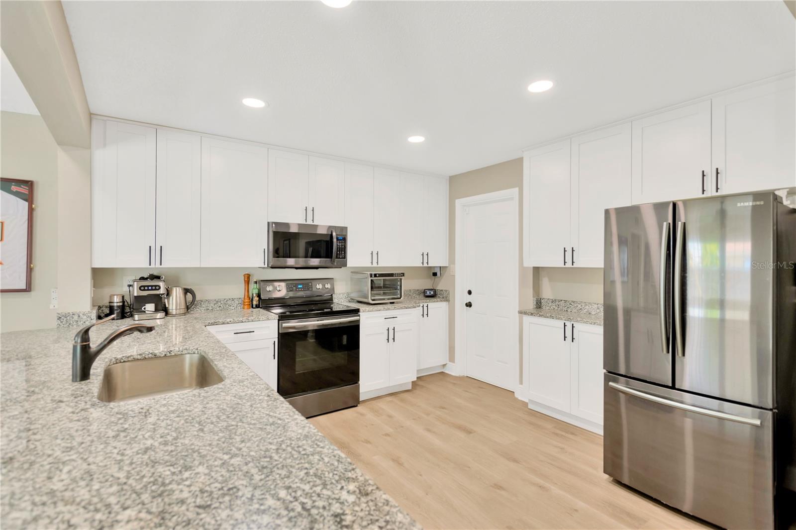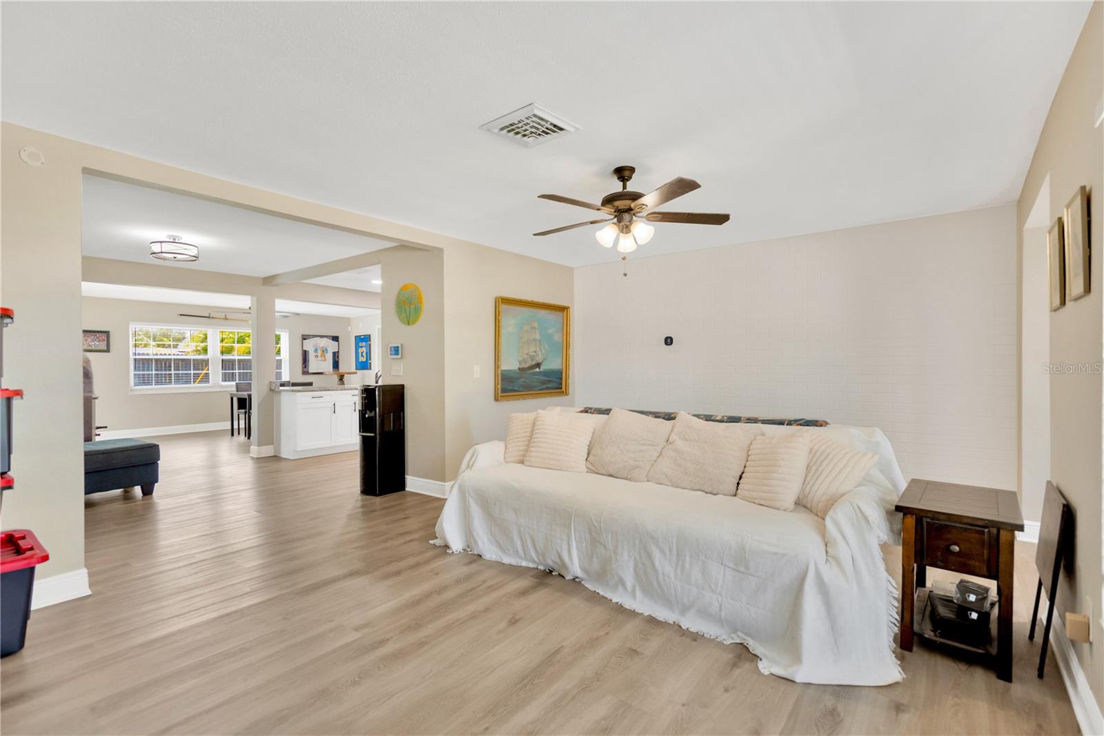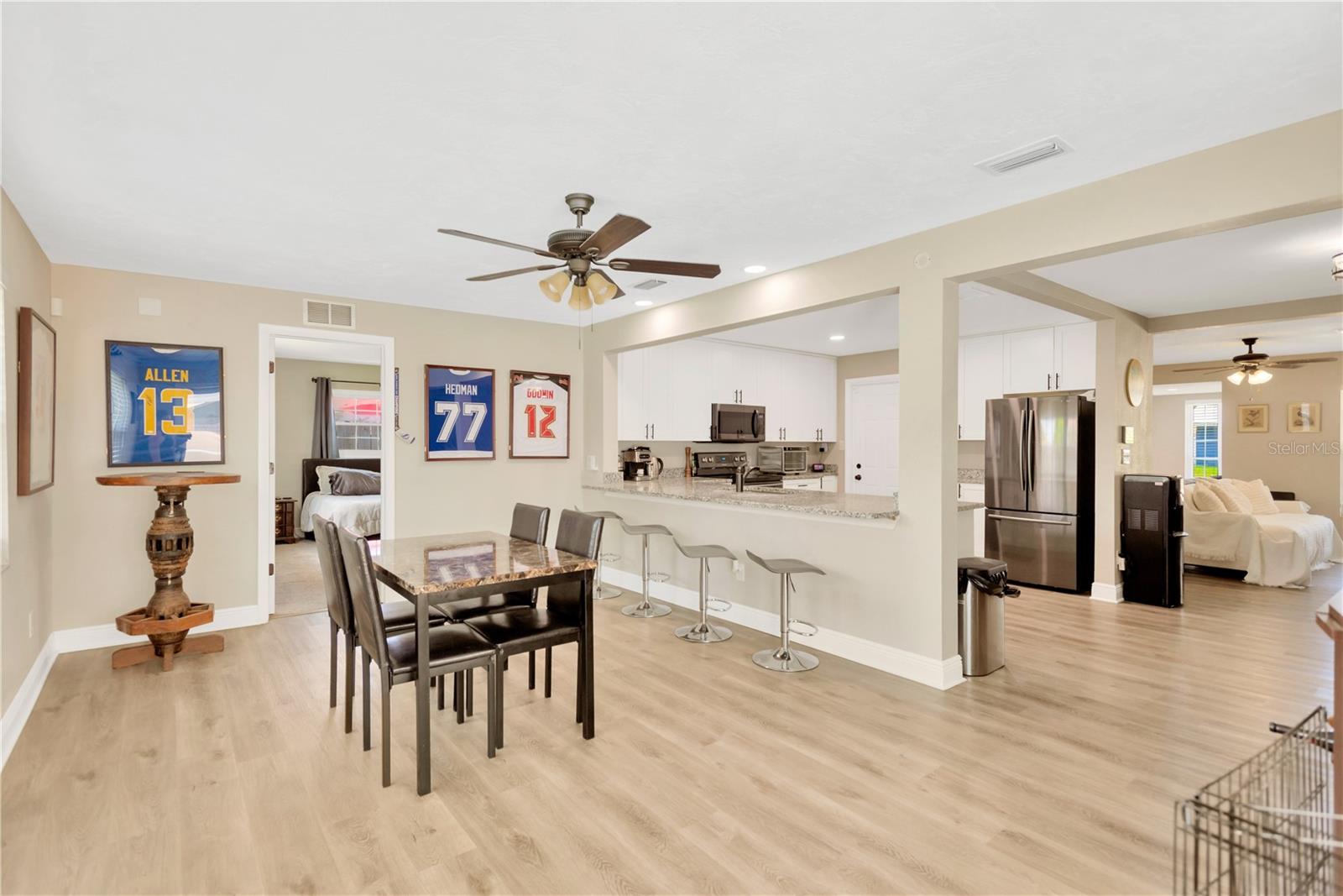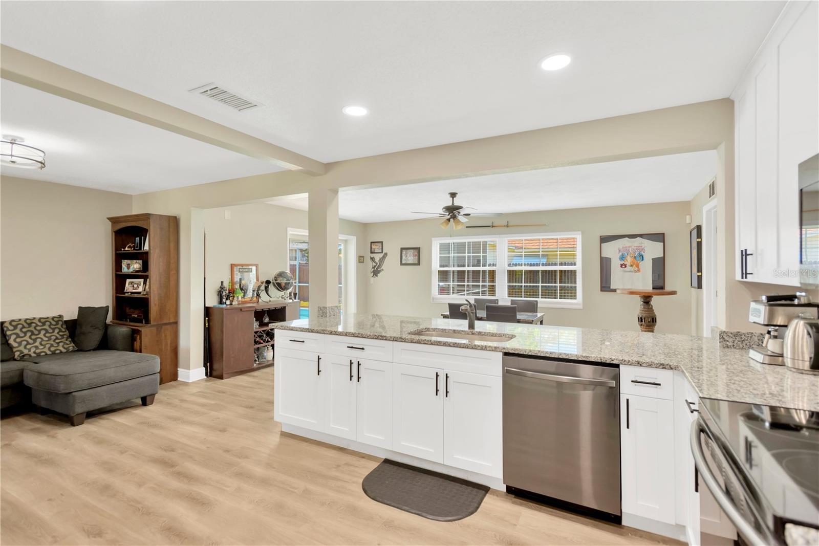 WELCOME TO THIS DELIGHTFULLY RENOVATED St Pete BEAUTY!! Located in St Pete's Highly Sought After Pinellas Point Neighborhood!!! This Completely Updated 3 Bed/2 Bath/2 Car Garage, POOL HOME on a Large, Pie-Shaped, Corner Lot is Absolutely Turn-Key! From the moment you step inside, you’ll feel the Comfy, Cozy Vibe of this Open Floor Plan Design with Plenty of Windows that allow lots of Natural Light to Flow Through! The Neutral LVP Flooring in all the main living areas is not only Nice Looking, but also Easy to Maintain! From the Foyer Entryway is a Living Room Space that could be great for quiet reading or good as an "At Home Office" with a Window View! The Spacious Kitchen boasts Beautiful Granite Counters, Crisp-Bright Shaker Style Cabinets, Undermount Single Basin Sink, Stainless Steel Appliances & a Breakfast Bar that overlooks the Dining Area from one side and is open to the Family Room on the other Side! This type of layout is Perfect for Entertaining family & friends or keeping Or watching TV while preparing a meal. You will Love the View of the Sparkling In-Ground Pool from the Glass French Doors in the Dining Area. The Roomy Primary Bedroom Retreat offers Soft Carpet for when you step out of bed, additional Glass French Doors that open to a Walk-In Closet and en-suite Bathroom with Granite Counters, Undermount Sink and Stall Shower. Your Outdoor Backyard Retreat provides a Covered Patio for Dining in the Shade, as well as a Large Screened Lanai Deck Area for Grilling Out & Sunbathing or Swimming & Cooling Off in the Pool! You can even Roast Marshmallows over the Fire Pit and gaze at the stars in the Shell Covered Side Yard space! You’ll appreciate having a Longer Driveway for Extra Parking Space and will enjoy Relaxing on the Front Porch watching the Glorious Florida Gulf-Coast Sunsets! This Great Home is Just Minutes from the Beach and near Numerous Fantastic Restaurants, Entertainment, Shopping, Arts and All the Amazing St Pete Area has to offer! Nothing left to do in this home except unpack the Truck and Love where you live! Come See it TODAY!