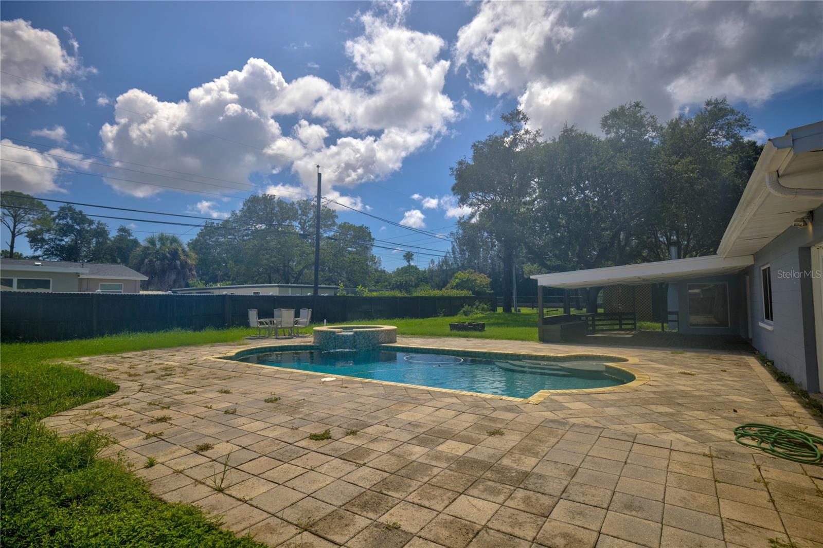 Welcome to Rio Vista, one of St. Petersburg's most sought-after neighborhoods. This charming community offers a prime location near Weedon Island and Riviera Bay, perfect for outdoor enthusiasts who enjoy fishing, canoeing, and other recreational activities. With close proximity to dining, shopping, beaches, major roadways, and Downtown St. Petersburg's vibrant attractions, this home is ideal for those seeking both convenience and a serene lifestyle. Situated on a spacious corner lot, this property offers an ample backyard perfect for family gatherings and outdoor enjoyment. Dive into the inviting saltwater pool, featuring a new cell and computer system installed less than six months ago, an 8.5-foot depth, 16 x 33' long and stunning pebble-tech and shell interior finish. As you step inside, you'll be greeted by beautiful double doors leading into a thoughtfully designed interior. The family room, complete with a cozy fireplace, provides a perfect space for relaxing on cooler nights. The kitchen offers ample countertop space and a clear view of the dining area and backyard, making it perfect for both cooking and entertaining. The master bedroom is a nice retreat featuring double doors that open to the pool area, a remote-controlled ceiling fan, a cedar walk-in closet, and newly remodeled En-suite bathroom with a teak wood sink. A second guest bathroom has also been recently updated with modern finishes. Additional highlights include fresh interior and exterior paint, a roof replaced just three years ago with durable modified bitumen, a two-car garage, and large Quonset hut shed in the backyard. This home is move in ready yet offers endless possibilities for personal touches. Don't miss this fantastic opportunity to own a piece of Rio Vista's charm!