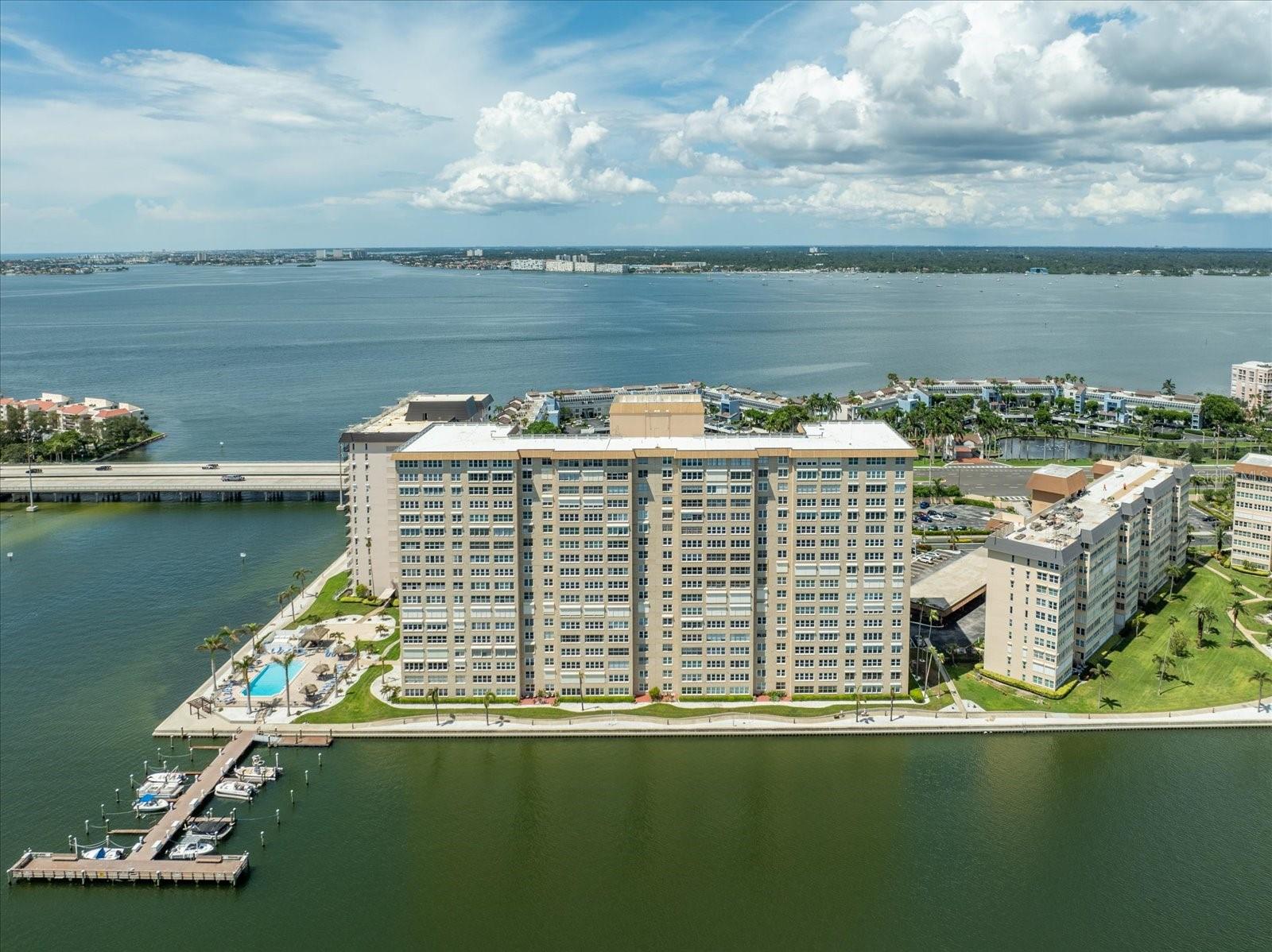 Welcome to paradise! Perfectly situated on the serene waterfront of St. Petersburg, this exquisite 2-bedroom, 2-bathroom condo offers breathtaking southeast-facing views from the third floor, giving you a "cruise ship" experience every day. Enjoy the tranquility of natural sunlight without the glare while enjoying the beauty of our Florida water views. Key Features include new floors, new carpet, and fresh neutral paint throughout. All electrical outlets and light switches have been updated for modern convenience. State-of-the-Art Kitchen: The brand new kitchen is equipped with top-of-the-line Samsung appliances, including a dishwasher, chef's oven, microwave with assorted features including a steam roast element and air fryer, and a refrigerator equipped with ionized water and ice maker and a wine compartment. A large bar complete with new 5 burner glass cooktop, slide out storage under the bar and hidden trash can that slides out. Enjoy soft close doors and drawers, a disposal, and matching marble finishes in both the kitchen and bathrooms. Luxurious Bathrooms: Both bathrooms feature brand new elongated toilets, marble finishes, & new plumbing fixtures. Each bathroom features new tempered glass barn door sliders in both showers and tempered translucent windows. 2 years new, high impact glass windows that rotate 90 degrees so that they are easy to clean! Custom Storage Solutions: Newly installed custom closets in the primary suite, guest room, hallway, and linen closet provide ample storage space. Additionally, enjoy two very large storage units on the 3rd floor (3x3 and 8x4) conveniently located walking distance from your unit. Comfort and Convenience: New air handler, a new 2.5-ton AC unit in a protected area, Wi Fi Voice Command thermostat and new full-size washer and dryer. The vents and air conditioning ducts have been recently serviced. Four new 52 inch ceiling fans with LED light bulbs. Primary Suite Retreat: The primary suite features new French doors and custom closets, providing a luxurious escape. Guest Room/ Office: The guest room includes a built-in floor-to-ceiling desk and shelving, perfect for a home office. Additional Amenities: A desk area with a window in the kitchen, 1 covered parking garage space, and free cable and internet (a $309 value). Resort-Style Living: Enjoy access to 4 pools, a resident center with a billiards room, card room, large auditorium, library, and event schedule. Active Lifestyle: Take advantage of daily workouts in the gym, tennis courts, and a sidewalk around the island. The community also features a canoe/kayak launch and 3 docks with boat slips available. Non smoking building. Security and Convenience: A gated community with key fobs and code, on-site nighttime security, and management. Visitor parking is available for your guests. Local Amenities: A store with a deli and butcher shop on the island makes everyday shopping convenient. Additional Perks: The community is 55 plus, can be rented for a minimum of 6 months, and includes a wheelchair lift into the main pool. No assessments or HOA increases scheduled, the milestone and wind mitigation studies completed and attached. Don't miss this opportunity to live in a beautifully renovated condo with unparalleled amenities and stunning water views. Schedule your private tour today and make this waterfront oasis your new home!