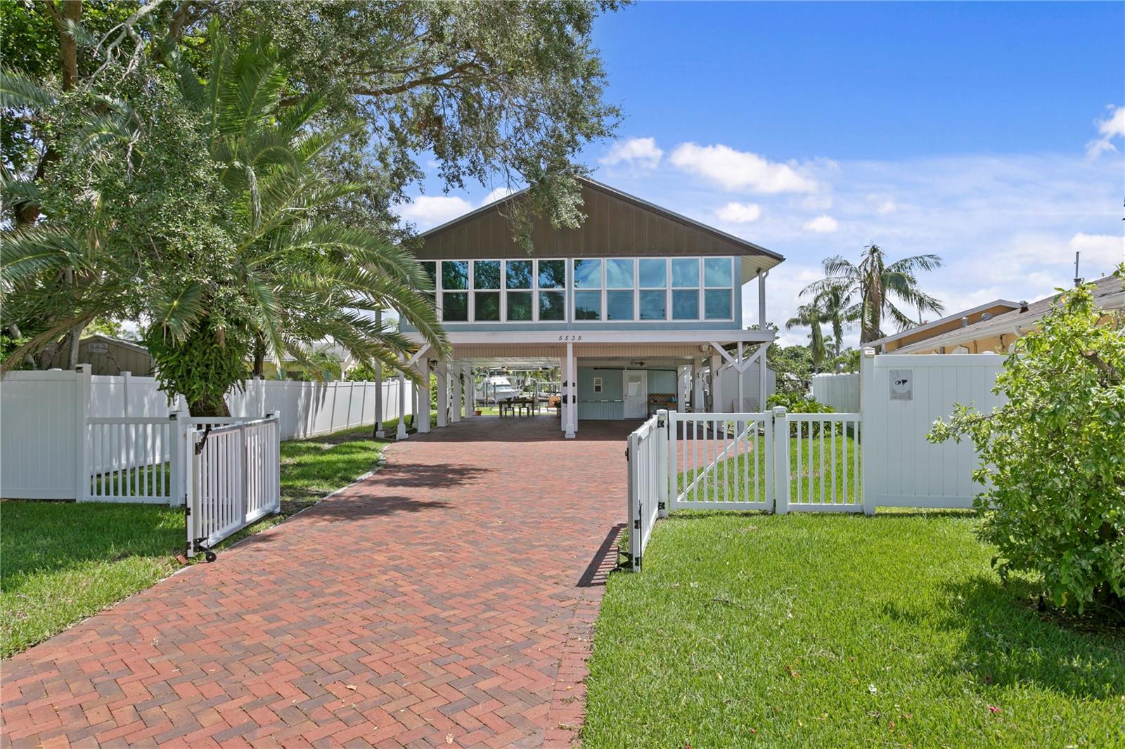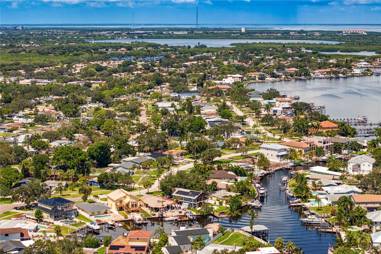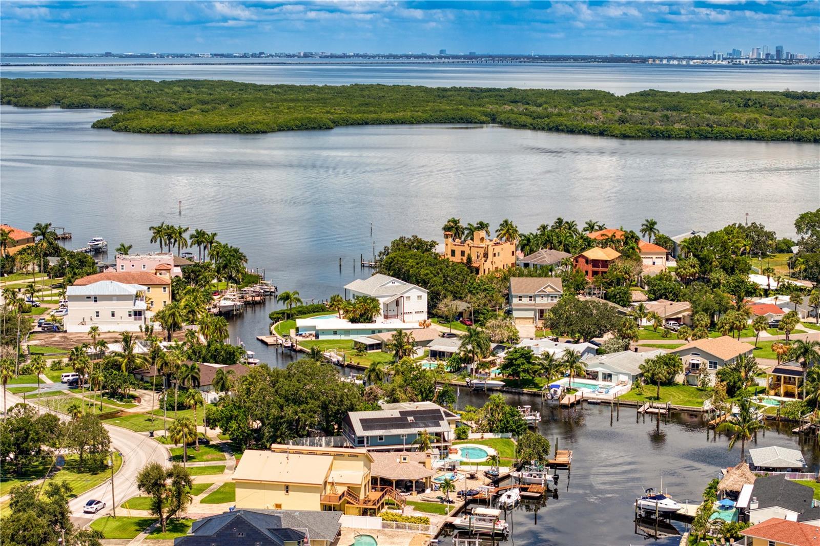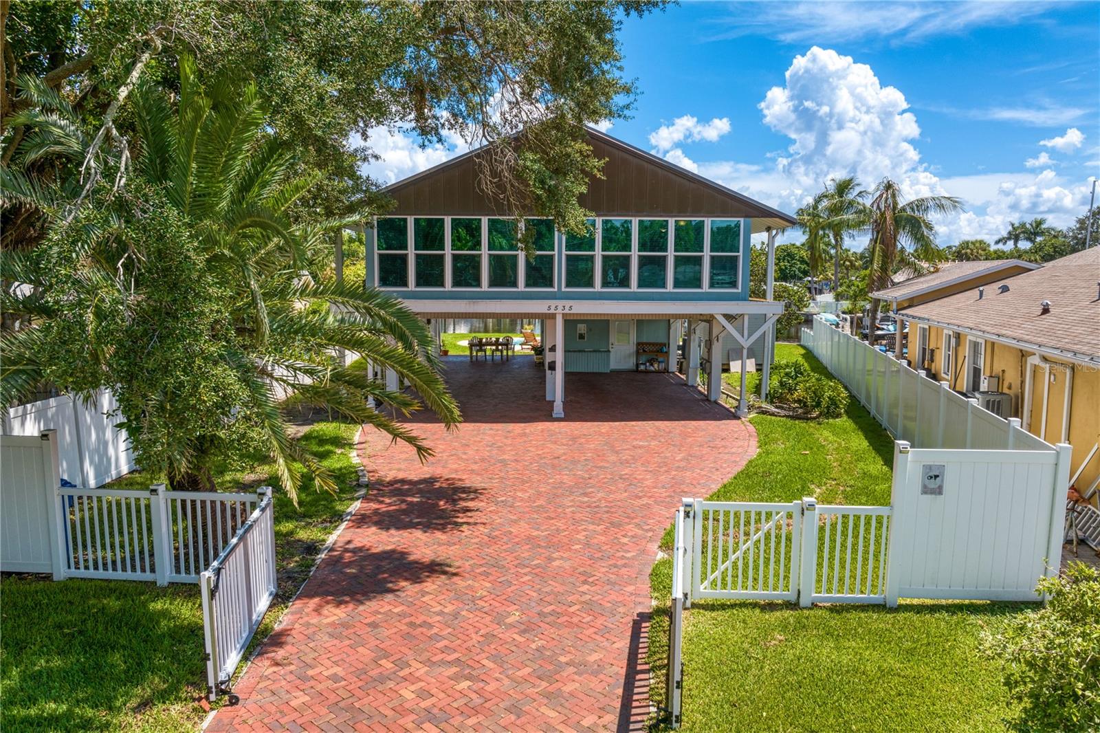This home withstood both Hurricane Helene and Hurricane Milton with very minimal damage to the storage room on first floor. The main living floor of the home was undamaged in either storm….one more benefit of being built up above most of their neighbors in Shore Acres. What an amazing opportunity to make that dream of waterfront living a reality! This prime Shore Acres location provides a perfect launch for boating enthusiasts with 85 feet of waterfront footage on a wide canal that gives you direct access to Tampa Bay. The uniqueness of this property is what makes it so special. The home is wisely built 12 feet above base flood elevation, giving you endless views and eliminating the worry of flooding. You’ll love waking up to sunrises to the East and sunsets that will drench your home with that magic hour glow. Two bedrooms and two full baths give you everything you may be looking for in a lower maintenance property with all the amenities that come with large waterfront living. The sunny and inviting pool is the ideal backdrop for friends and family to gather on one of Shore Acres best lots. The situation on the canal provides added distance from your neighbors and an increased level of privacy. Open living spaces indoors make the efficient square footage feel even larger than it is. You’ll be charmed by the warmth of the home and the ease of lifestyle that comes with it. Warm knotty hardwood floors throughout, and stunning paneled ceilings contribute to the ambiance within. The newer renovated kitchen features solid wood cabinetry, upgraded stainless appliances, a gorgeous tile backsplash and stunning granite counters. The first level of the home includes a recently remodeled office or utility room with great storage space. Solar panels on the newer roof make monthly bills a breeze. Pull up to your home, put your toes in the water, and get ready to fall in love.