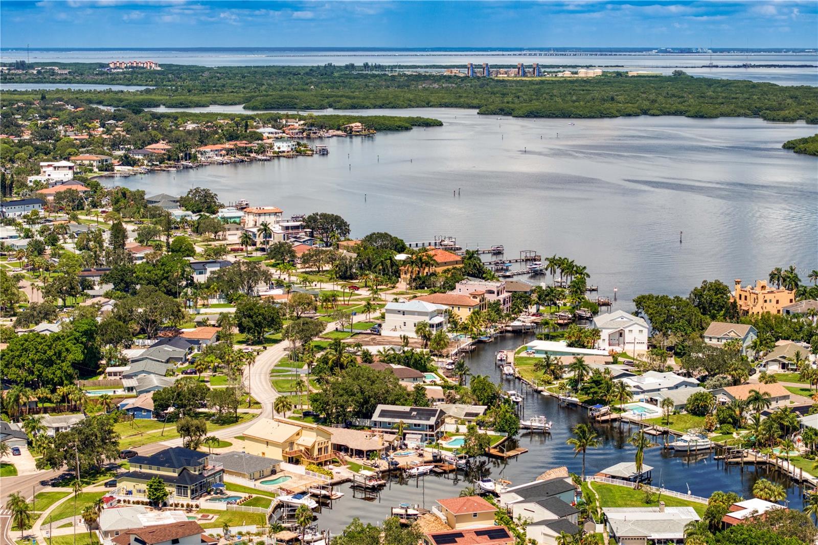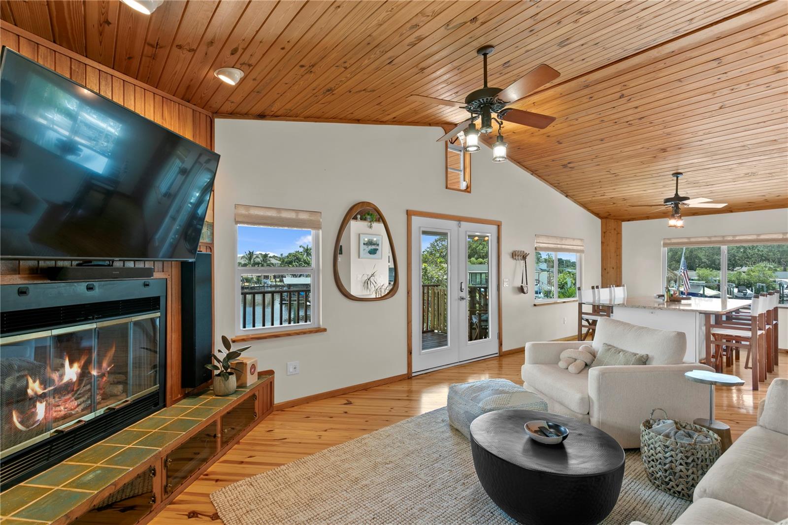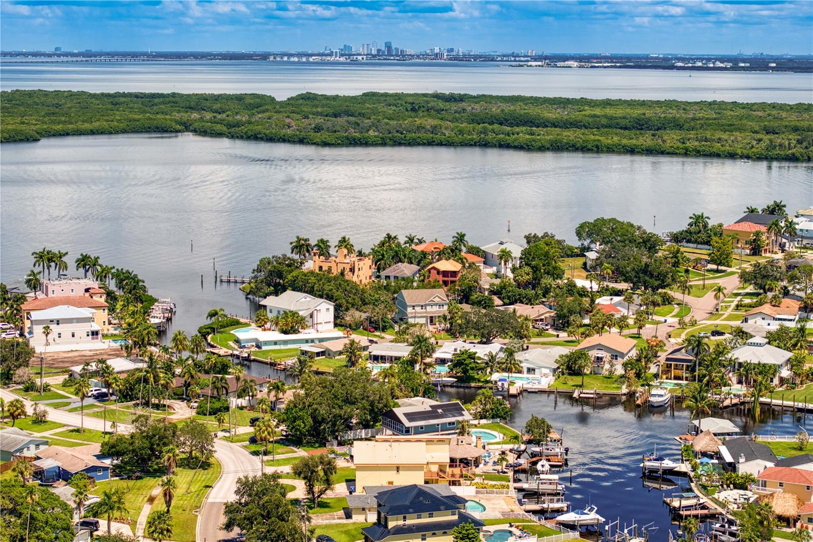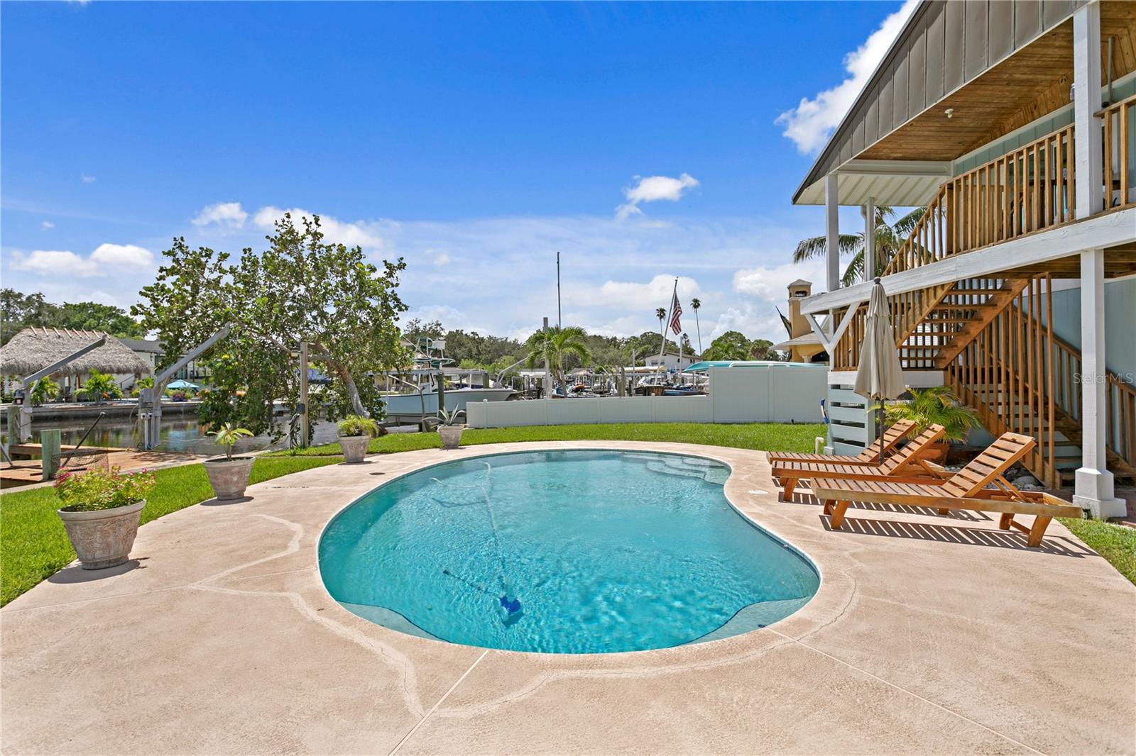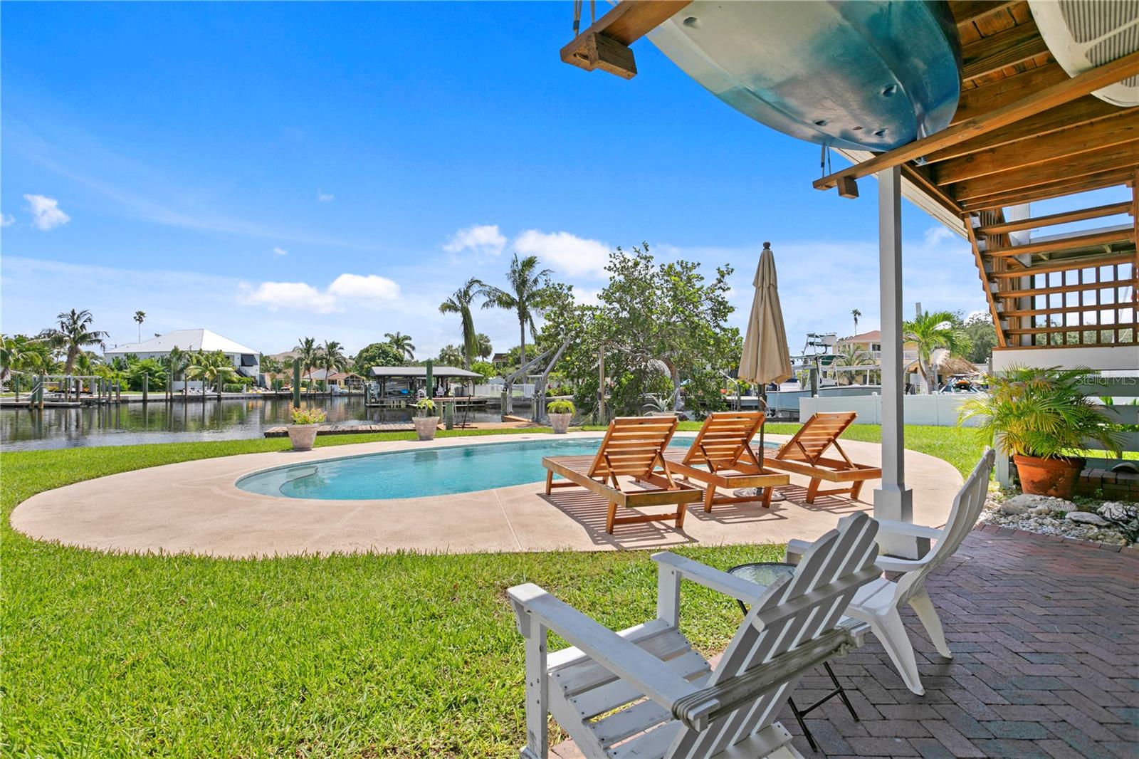 This home withstood both Hurricane Helene and Hurricane Milton with very minimal damage to the storage room on first floor. The main living floor of the home was undamaged in either storm….one more benefit of being built up above most of their neighbors in Shore Acres. What an amazing opportunity to make that dream of waterfront living a reality! This prime Shore Acres location provides a perfect launch for boating enthusiasts with 85 feet of waterfront footage on a wide canal that gives you direct access to Tampa Bay. The uniqueness of this property is what makes it so special. The home is wisely built 12 feet above base flood elevation, giving you endless views and eliminating the worry of flooding. You’ll love waking up to sunrises to the East and sunsets that will drench your home with that magic hour glow. Two bedrooms and two full baths give you everything you may be looking for in a lower maintenance property with all the amenities that come with large waterfront living. The sunny and inviting pool is the ideal backdrop for friends and family to gather on one of Shore Acres best lots. The situation on the canal provides added distance from your neighbors and an increased level of privacy. Open living spaces indoors make the efficient square footage feel even larger than it is. You’ll be charmed by the warmth of the home and the ease of lifestyle that comes with it. Warm knotty hardwood floors throughout, and stunning paneled ceilings contribute to the ambiance within. The newer renovated kitchen features solid wood cabinetry, upgraded stainless appliances, a gorgeous tile backsplash and stunning granite counters. The first level of the home includes a recently remodeled office or utility room with great storage space. Solar panels on the newer roof make monthly bills a breeze. Pull up to your home, put your toes in the water, and get ready to fall in love.