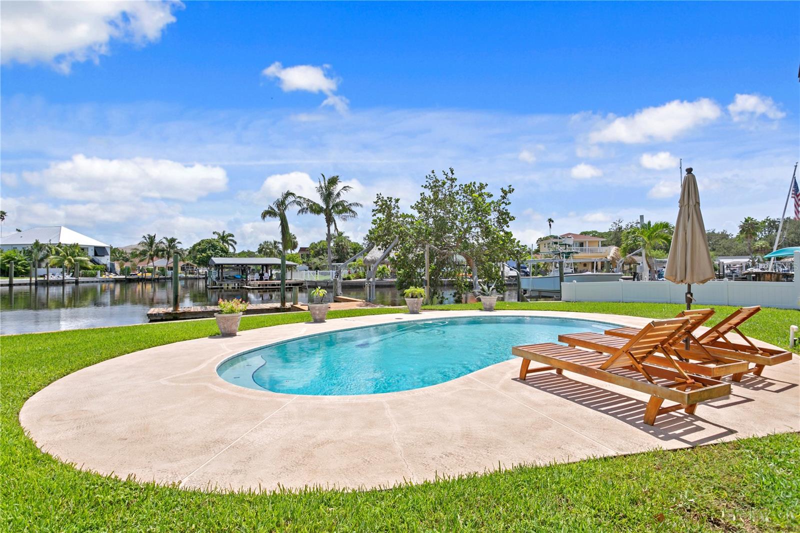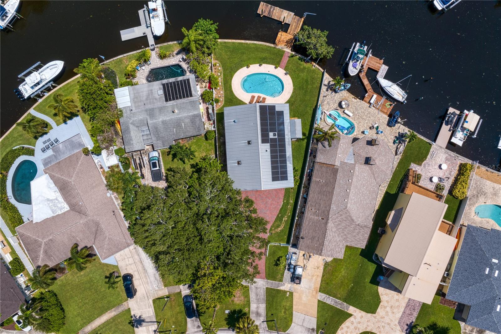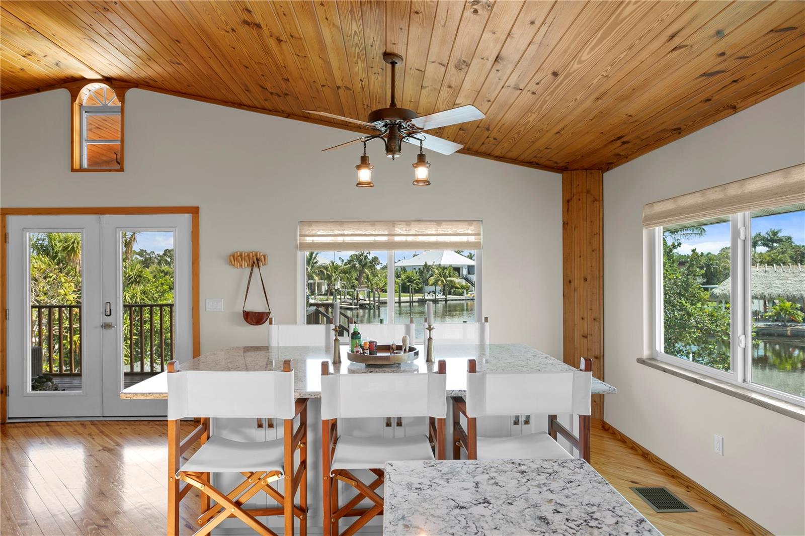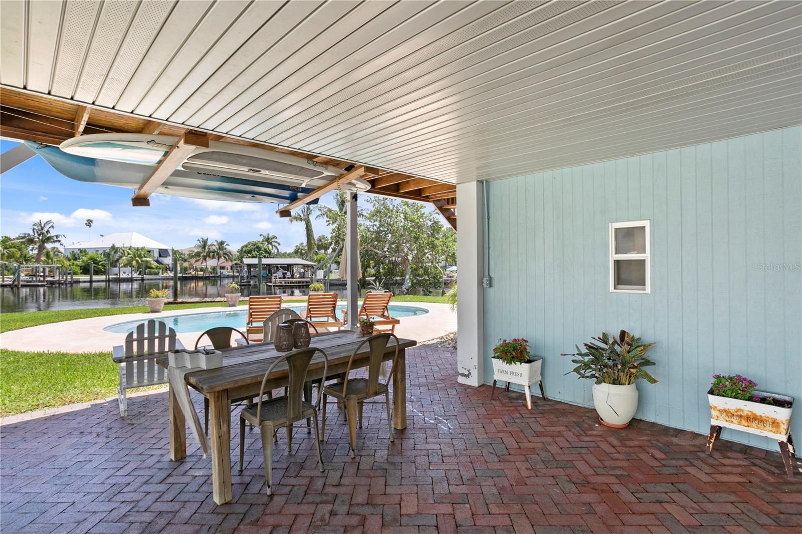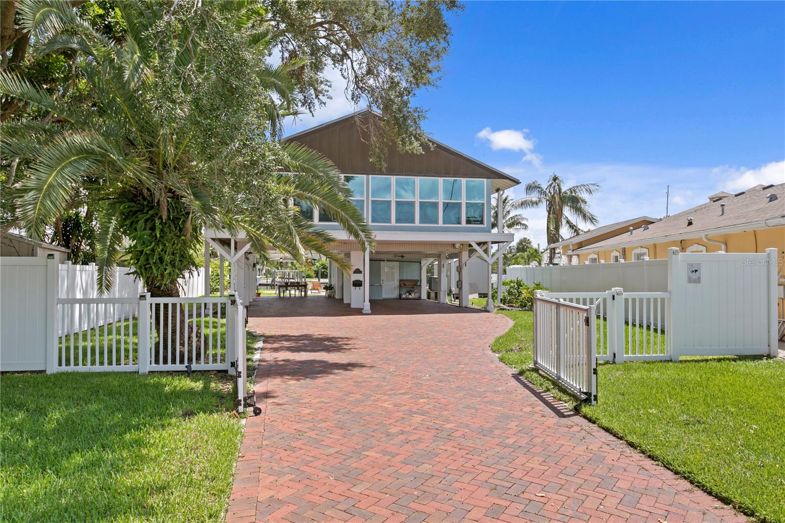 This home withstood both Hurricane Helene and Hurricane Milton with very minimal damage to the storage room on first floor. The main living floor of the home was undamaged in either storm….one more benefit of being built up above most of their neighbors in Shore Acres. What an amazing opportunity to make that dream of waterfront living a reality! This prime Shore Acres location provides a perfect launch for boating enthusiasts with 85 feet of waterfront footage on a wide canal that gives you direct access to Tampa Bay. The uniqueness of this property is what makes it so special. The home is wisely built 12 feet above base flood elevation, giving you endless views and eliminating the worry of flooding. You’ll love waking up to sunrises to the East and sunsets that will drench your home with that magic hour glow. Two bedrooms and two full baths give you everything you may be looking for in a lower maintenance property with all the amenities that come with large waterfront living. The sunny and inviting pool is the ideal backdrop for friends and family to gather on one of Shore Acres best lots. The situation on the canal provides added distance from your neighbors and an increased level of privacy. Open living spaces indoors make the efficient square footage feel even larger than it is. You’ll be charmed by the warmth of the home and the ease of lifestyle that comes with it. Warm knotty hardwood floors throughout, and stunning paneled ceilings contribute to the ambiance within. The newer renovated kitchen features solid wood cabinetry, upgraded stainless appliances, a gorgeous tile backsplash and stunning granite counters. The first level of the home includes a recently remodeled office or utility room with great storage space. Solar panels on the newer roof make monthly bills a breeze. Pull up to your home, put your toes in the water, and get ready to fall in love.