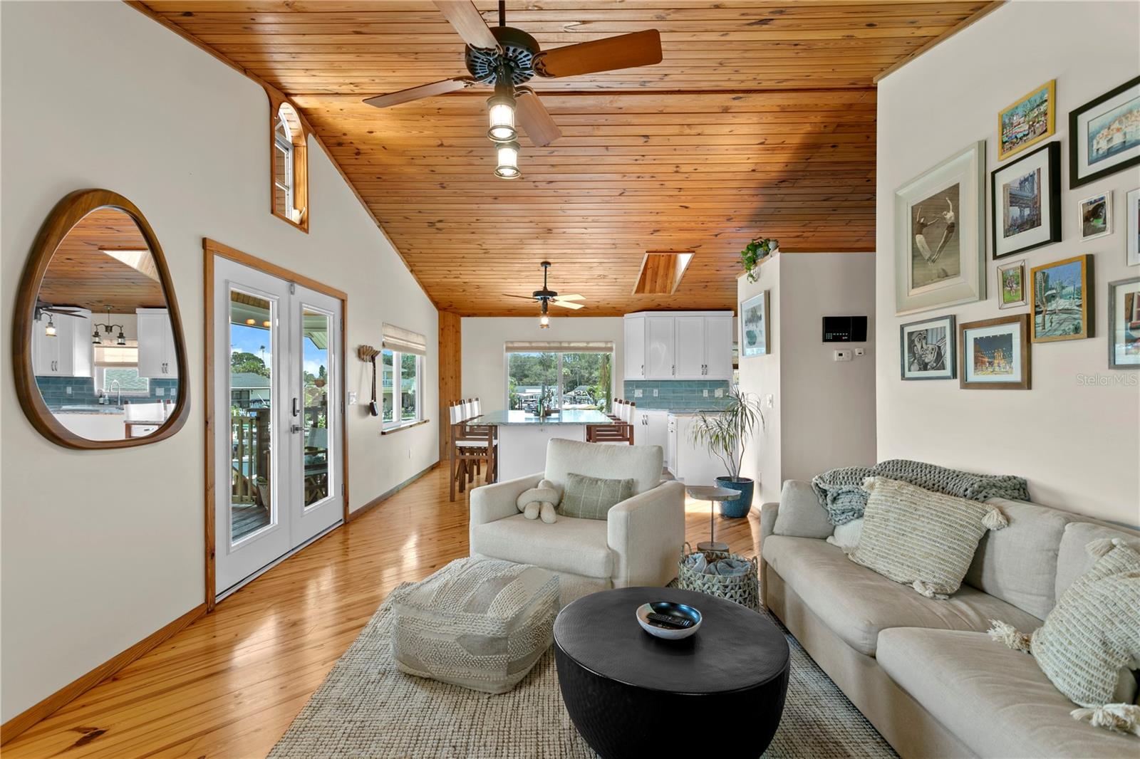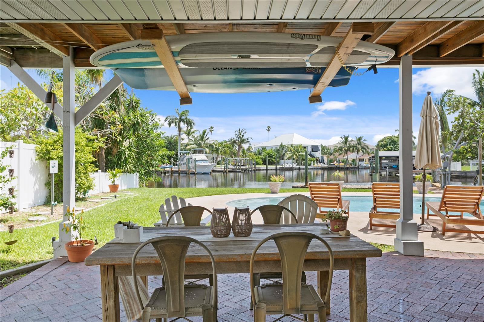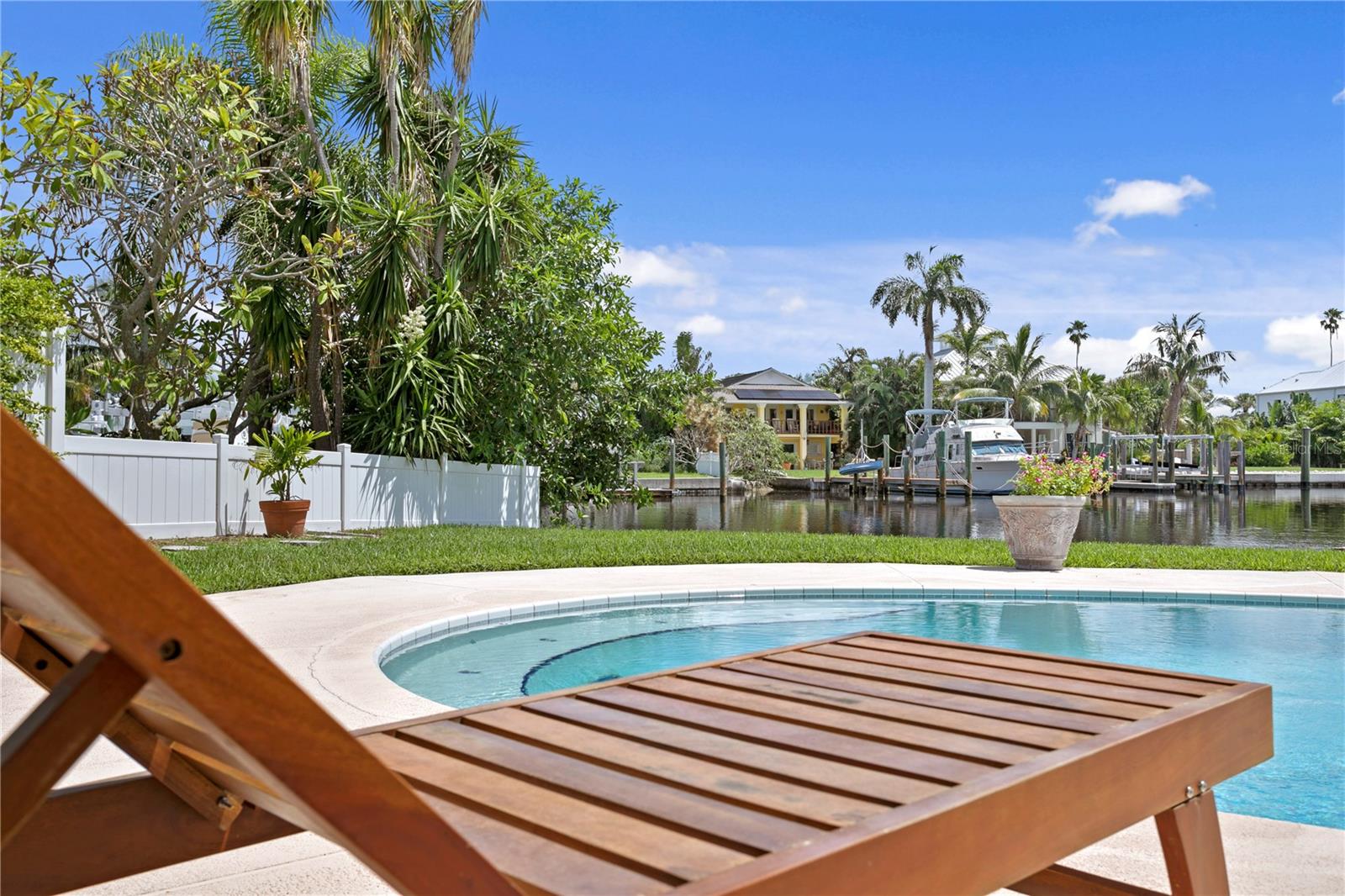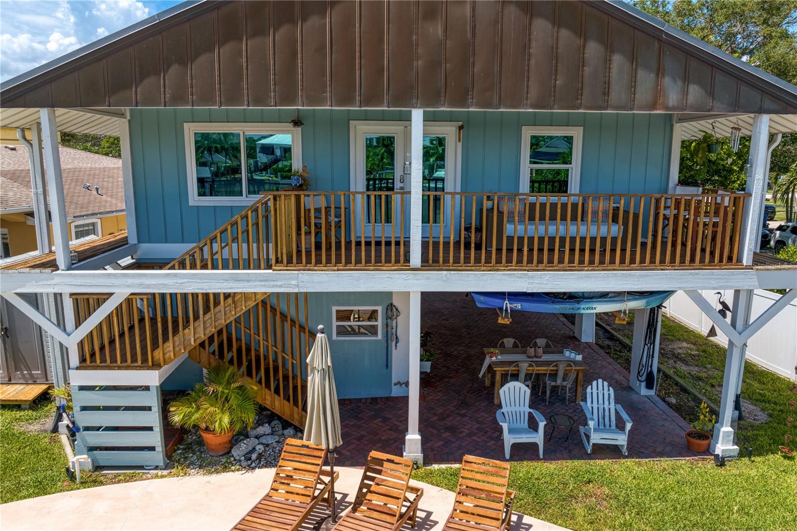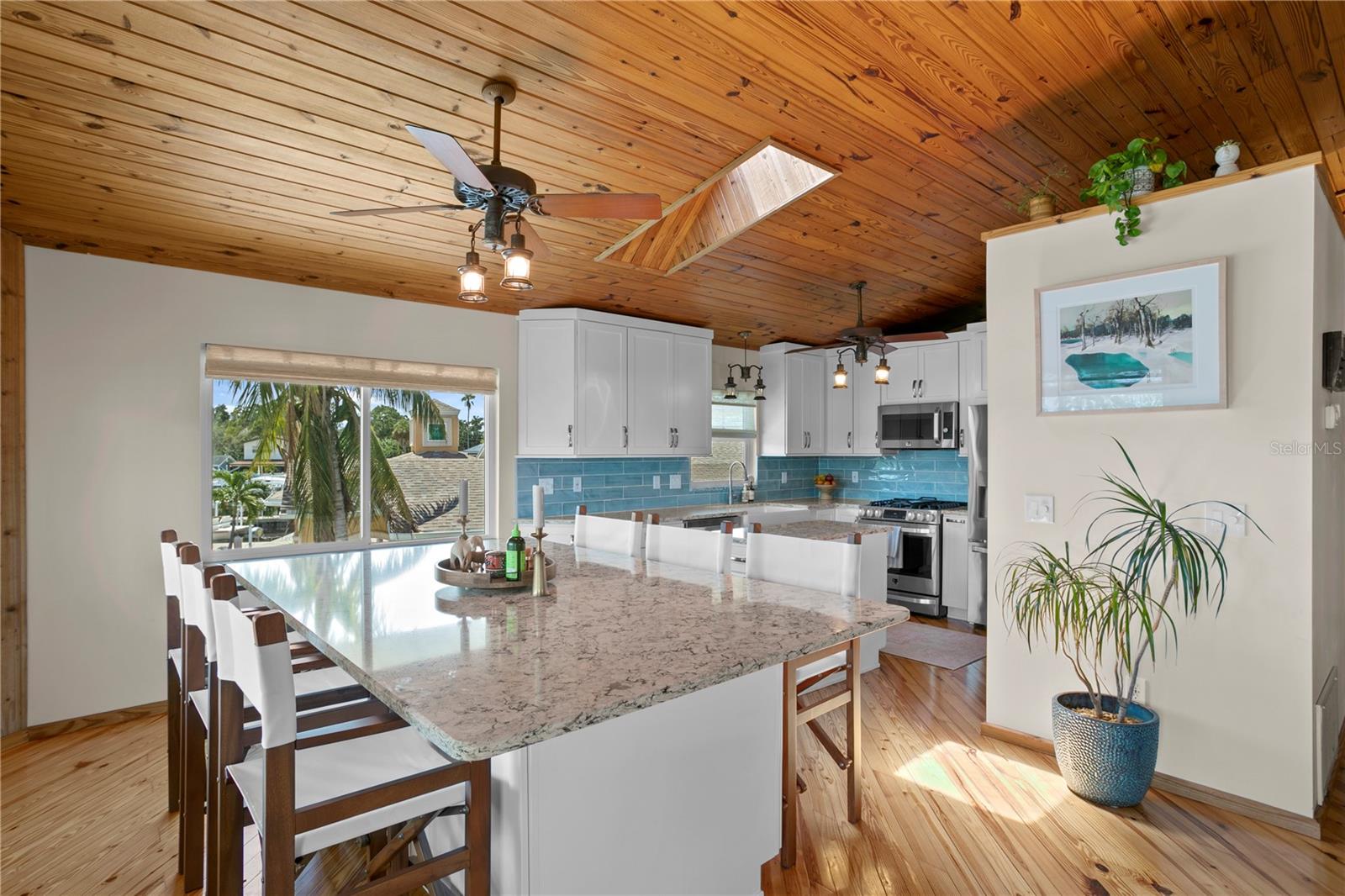 This home withstood both Hurricane Helene and Hurricane Milton with very minimal damage to the storage room on first floor. The main living floor of the home was undamaged in either storm….one more benefit of being built up above most of their neighbors in Shore Acres. What an amazing opportunity to make that dream of waterfront living a reality! This prime Shore Acres location provides a perfect launch for boating enthusiasts with 85 feet of waterfront footage on a wide canal that gives you direct access to Tampa Bay. The uniqueness of this property is what makes it so special. The home is wisely built 12 feet above base flood elevation, giving you endless views and eliminating the worry of flooding. You’ll love waking up to sunrises to the East and sunsets that will drench your home with that magic hour glow. Two bedrooms and two full baths give you everything you may be looking for in a lower maintenance property with all the amenities that come with large waterfront living. The sunny and inviting pool is the ideal backdrop for friends and family to gather on one of Shore Acres best lots. The situation on the canal provides added distance from your neighbors and an increased level of privacy. Open living spaces indoors make the efficient square footage feel even larger than it is. You’ll be charmed by the warmth of the home and the ease of lifestyle that comes with it. Warm knotty hardwood floors throughout, and stunning paneled ceilings contribute to the ambiance within. The newer renovated kitchen features solid wood cabinetry, upgraded stainless appliances, a gorgeous tile backsplash and stunning granite counters. The first level of the home includes a recently remodeled office or utility room with great storage space. Solar panels on the newer roof make monthly bills a breeze. Pull up to your home, put your toes in the water, and get ready to fall in love.