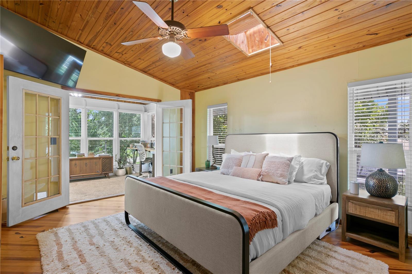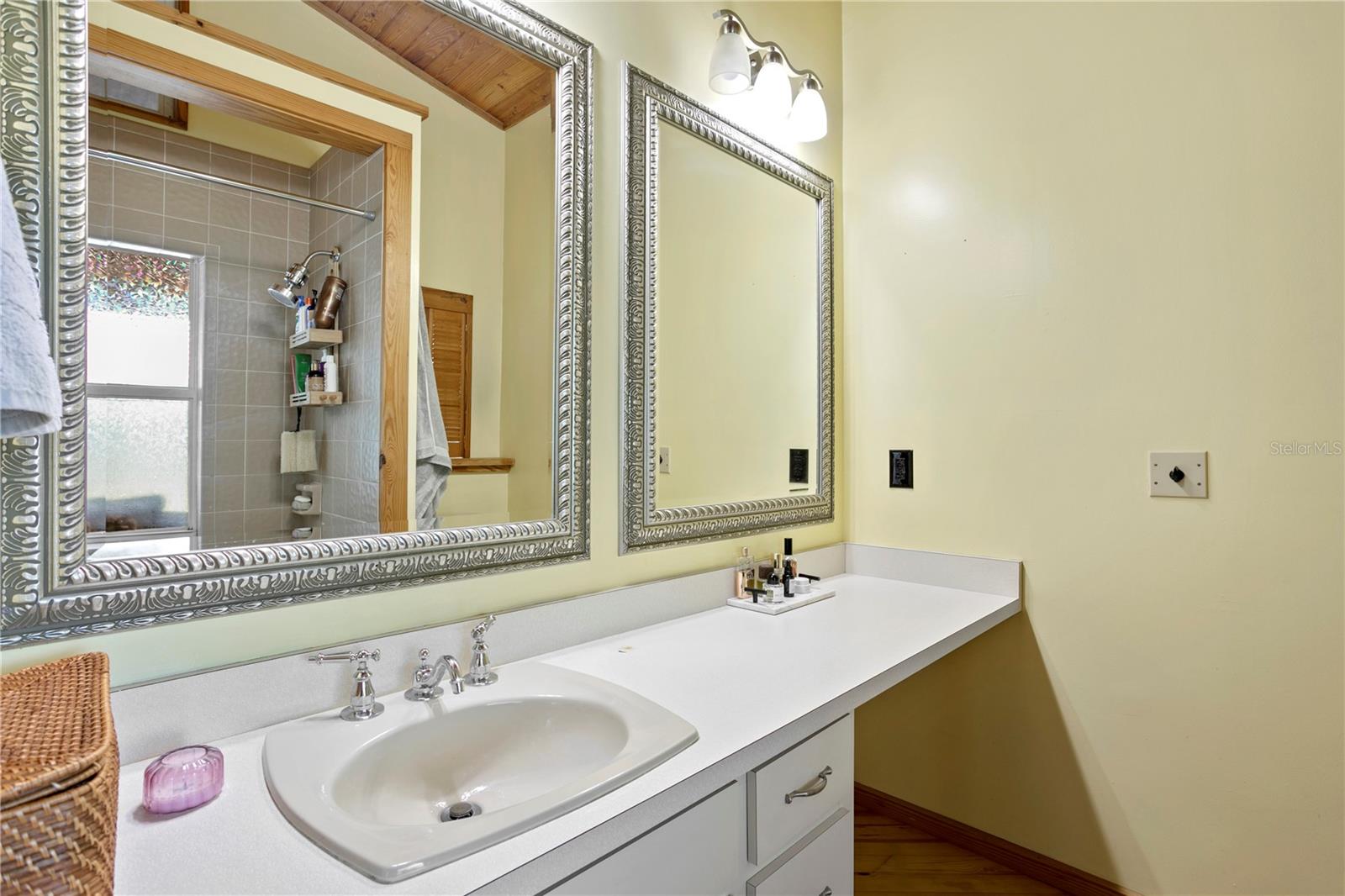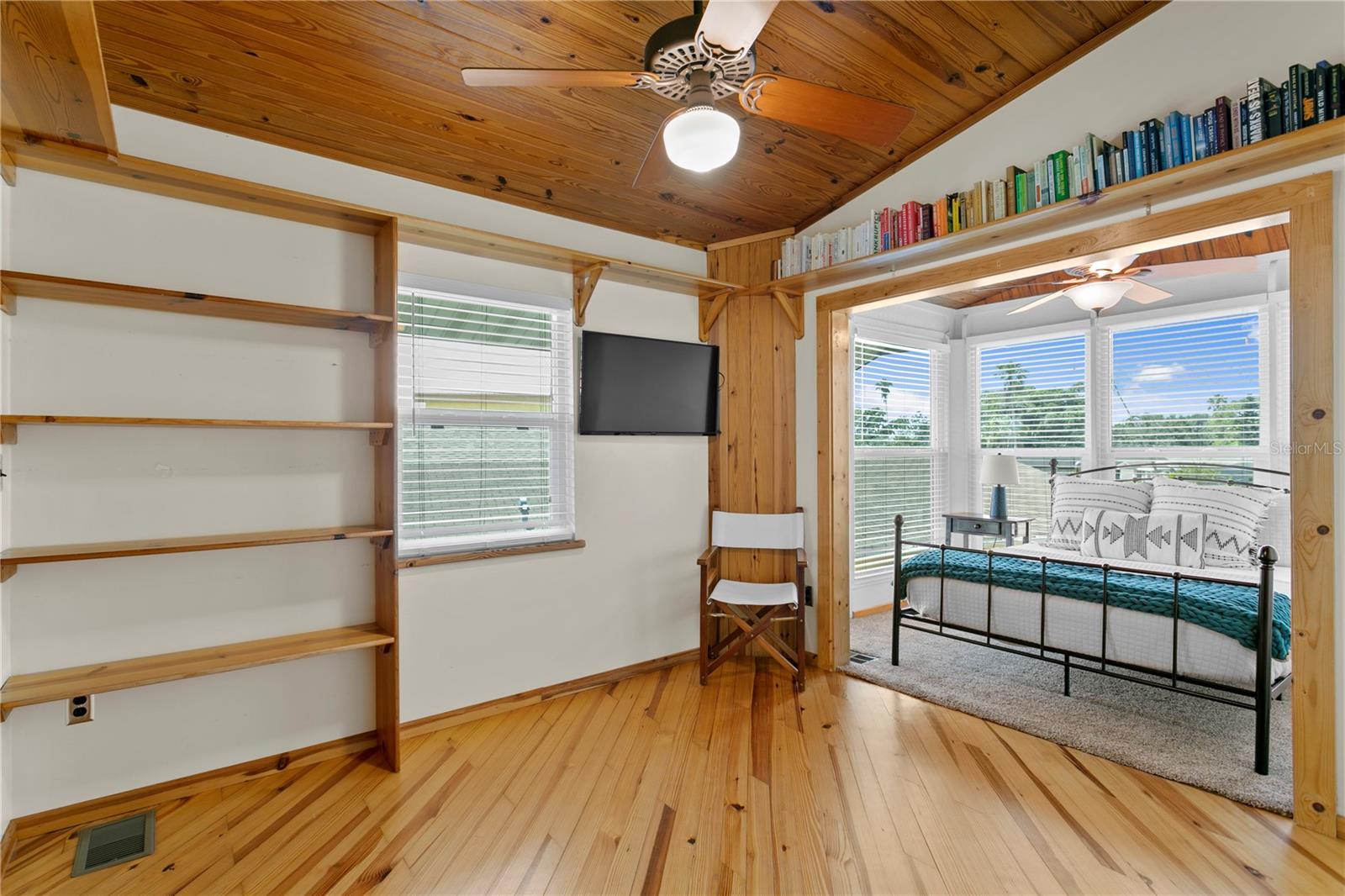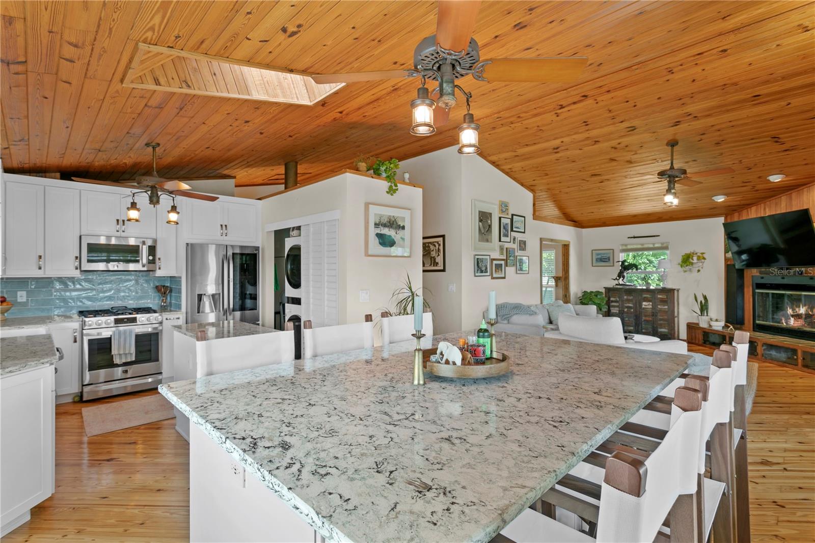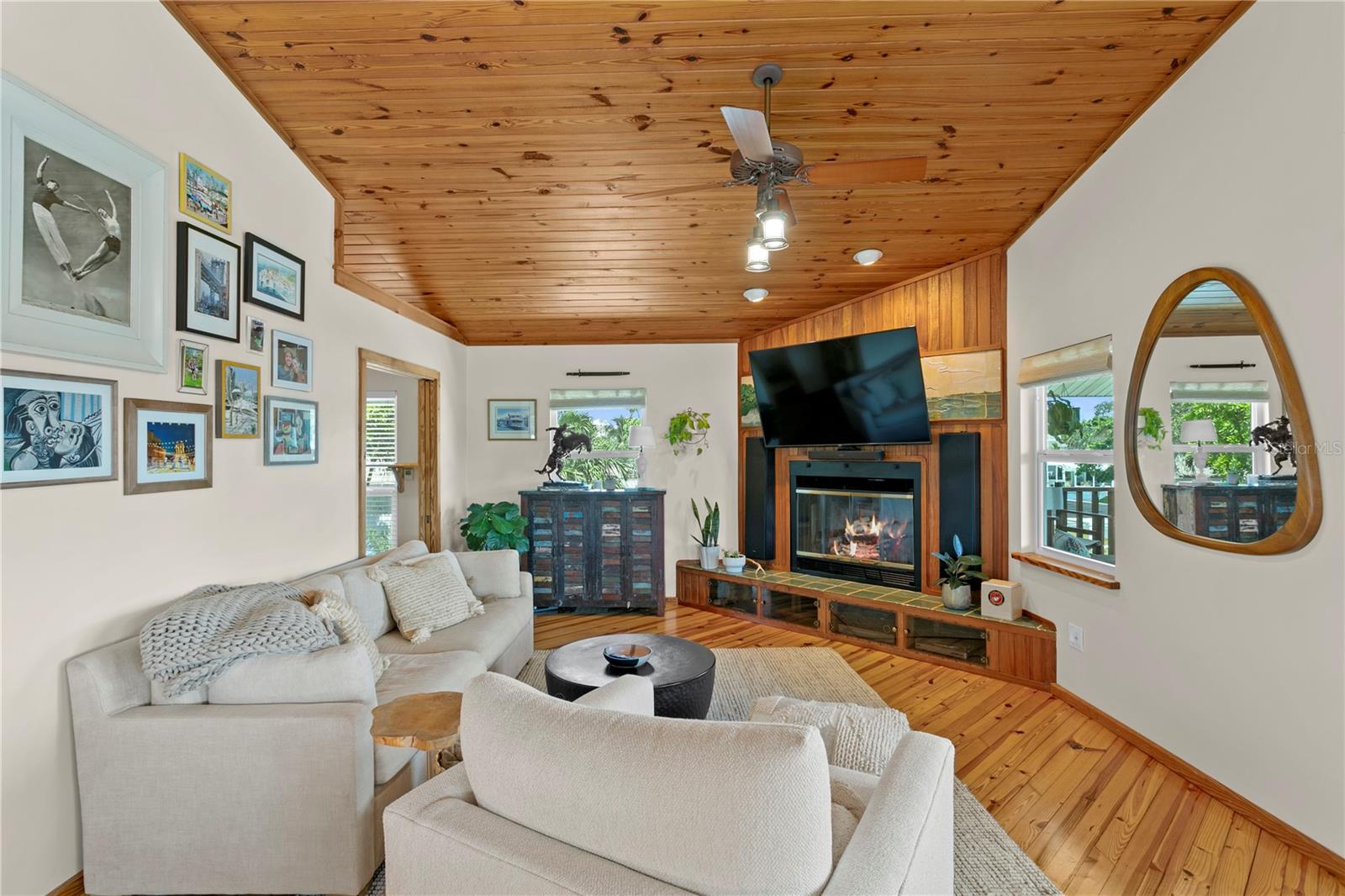 This home withstood both Hurricane Helene and Hurricane Milton with very minimal damage to the storage room on first floor. The main living floor of the home was undamaged in either storm….one more benefit of being built up above most of their neighbors in Shore Acres. What an amazing opportunity to make that dream of waterfront living a reality! This prime Shore Acres location provides a perfect launch for boating enthusiasts with 85 feet of waterfront footage on a wide canal that gives you direct access to Tampa Bay. The uniqueness of this property is what makes it so special. The home is wisely built 12 feet above base flood elevation, giving you endless views and eliminating the worry of flooding. You’ll love waking up to sunrises to the East and sunsets that will drench your home with that magic hour glow. Two bedrooms and two full baths give you everything you may be looking for in a lower maintenance property with all the amenities that come with large waterfront living. The sunny and inviting pool is the ideal backdrop for friends and family to gather on one of Shore Acres best lots. The situation on the canal provides added distance from your neighbors and an increased level of privacy. Open living spaces indoors make the efficient square footage feel even larger than it is. You’ll be charmed by the warmth of the home and the ease of lifestyle that comes with it. Warm knotty hardwood floors throughout, and stunning paneled ceilings contribute to the ambiance within. The newer renovated kitchen features solid wood cabinetry, upgraded stainless appliances, a gorgeous tile backsplash and stunning granite counters. The first level of the home includes a recently remodeled office or utility room with great storage space. Solar panels on the newer roof make monthly bills a breeze. Pull up to your home, put your toes in the water, and get ready to fall in love.