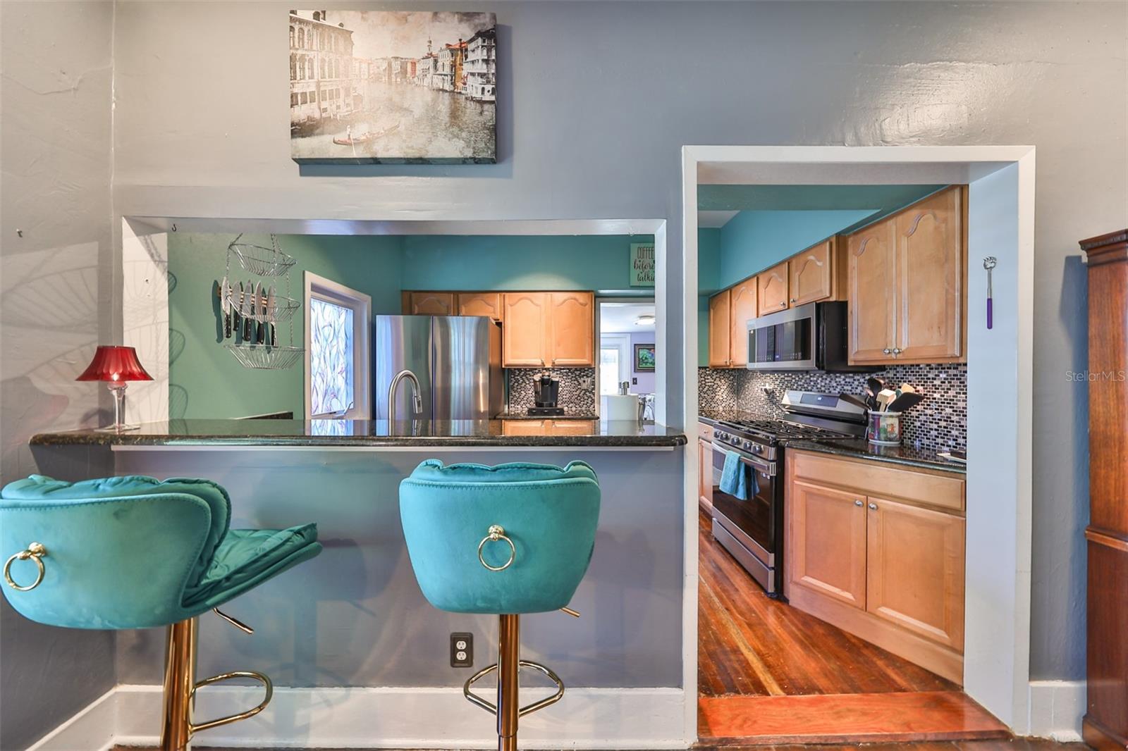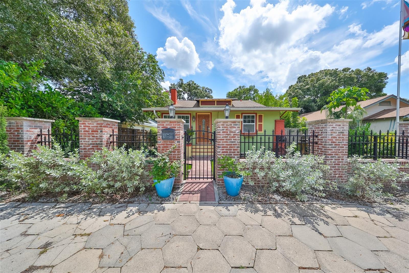 This charming Central Oak Park bungalow offers a perfect blend of classic appeal and modern updates. Featuring two (2) bedrooms plus a den (or convert the den to a small bedroom) and 1.5 bathrooms. The home boasts an updated kitchen with nice cabinets and stainless steel appliances, including a gas stove (range) complemented by beautiful hardwood floors and high 9-foot ceilings. A cozy (gas) fireplace adds warmth to the living space. Natural gas coach lights and a courtyard-like setting as you enter this home add more charm and warmth. Other upgrades include central heating/air, energy-efficient windows, and a tankless gas hot water system. Also, there is a nicely designed inside laundry area provide both comfort and convenience. The half bath is large enough that a shower area could be added. The back porch opens to a lush, fenced backyard (great for pets) with the perfect balance of sun and shade, creating an idyllic Florida garden. A detached one-car garage with a storage area and alley access adds extra functionality. A good-sized stand-up attic with a built-in staircase is also included. Located just west of Kenwood, close to downtown St. Petersburg and the beautiful Gulf beaches, this bungalow offers the best of both suburban charm and urban accessibility, making it a truly sweet and inviting home.