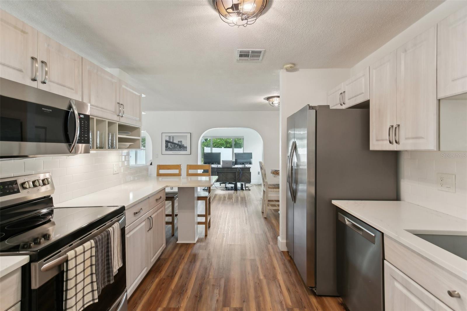 This beautifully rehabbed single-family home located in the highly desirable Northeast area of St. Pete in Shore Acres is a MUST SEE! This block build is solid with great bones to add to the high-end upgrades and features that have been selected and professionally renovated just last year. You will enjoy lots of privacy that the white vinyl fencing encompassing the perimeter provides. The backyard is a true oasis vibe to enjoy your slice of paradise with plenty of room for a pool! Your paver patio includes a pergola and lush palm & pine trees while the irrigation system allows for ease of maintenance to keep the green and pristine conditioned landscape. The lovely luxury vinyl flooring flows seamlessly throughout the home with a large open concept feel past the kitchen overlooking the large windows onto your backyard. Fresh interior paint with larger pine wood baseboards boosts the modern meets classy look and feel to the home. You will love all the natural light that beams through providing a bright and cheerful surrounding. All the windows have plantation shutters to adjust the amount of light shining through. The bathrooms have a spa/serene feel with luxury vanities, fixtures and tile flooring. The gourmet style kitchen has all the bells and whistles including brand new stainless appliances, quartz counter tops, wood cabinetry and under counter lighting. This home gives you many options to configure your dining experience! Counter bar stools under the countertop facing into the kitchen, breakfast nook or formal dining area just past the kitchen or can even utilize one of the sections of back room facing the backyard as a dining area set up! You will love the proximity to white sand beaches only 20 minutes away and a short distance to the upscale neighborhood market. Shore Acres rec center is just around the corner, offering state-of-the-art facilities. If you are a golf enthusiast this home is for you with two golf courses (Vinoy Private Golf Club & Mangrove Bay) conveniently located within a 5-minute drive. Located in the always safe, A+ crime rated Shore Acres neighborhood, this home offers easy access to parks, shops, and downtown St. Pete, providing endless opportunities for entertainment and exploration. Contact today to set up your very own private showing! Don't miss out on all this home and area have to offer! Don't miss out on all this home and area have to offer! Contact today to set up your very own private showing! Showing times: 8 AM to 9 PM- 7 days a week.