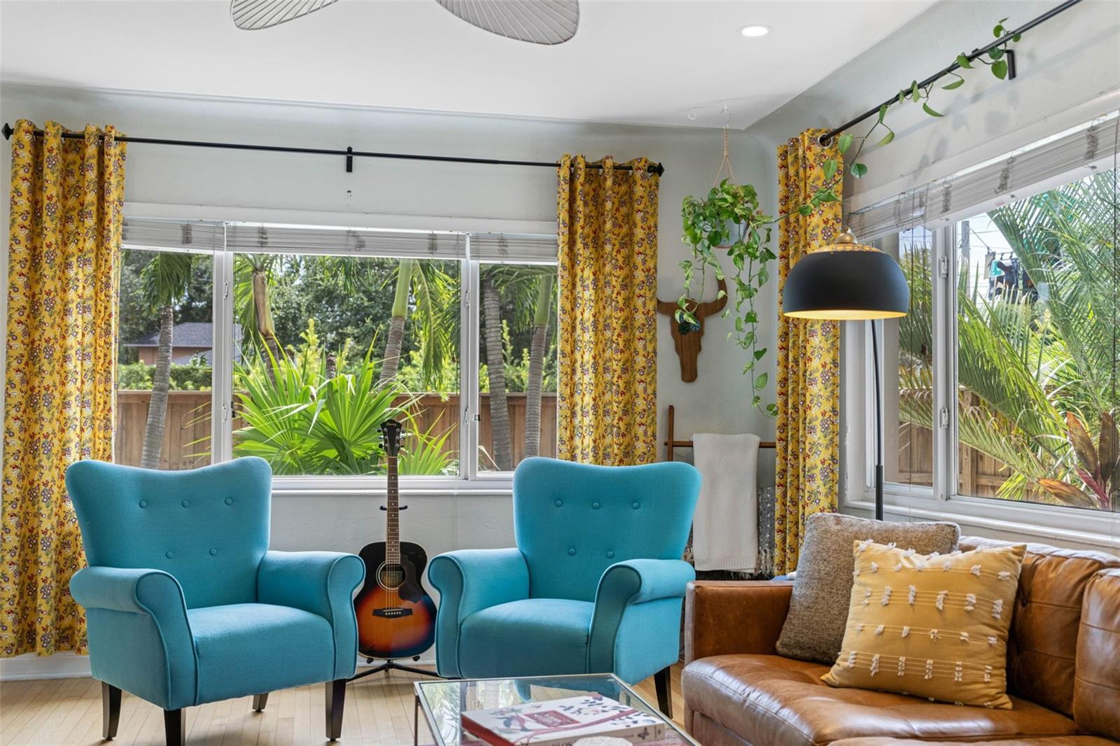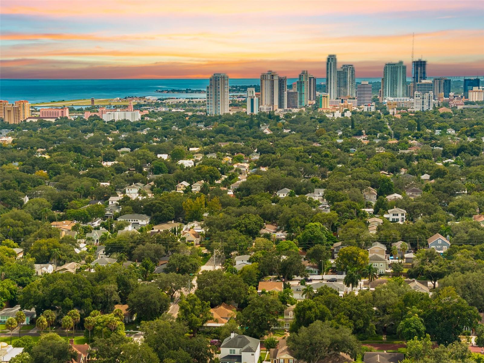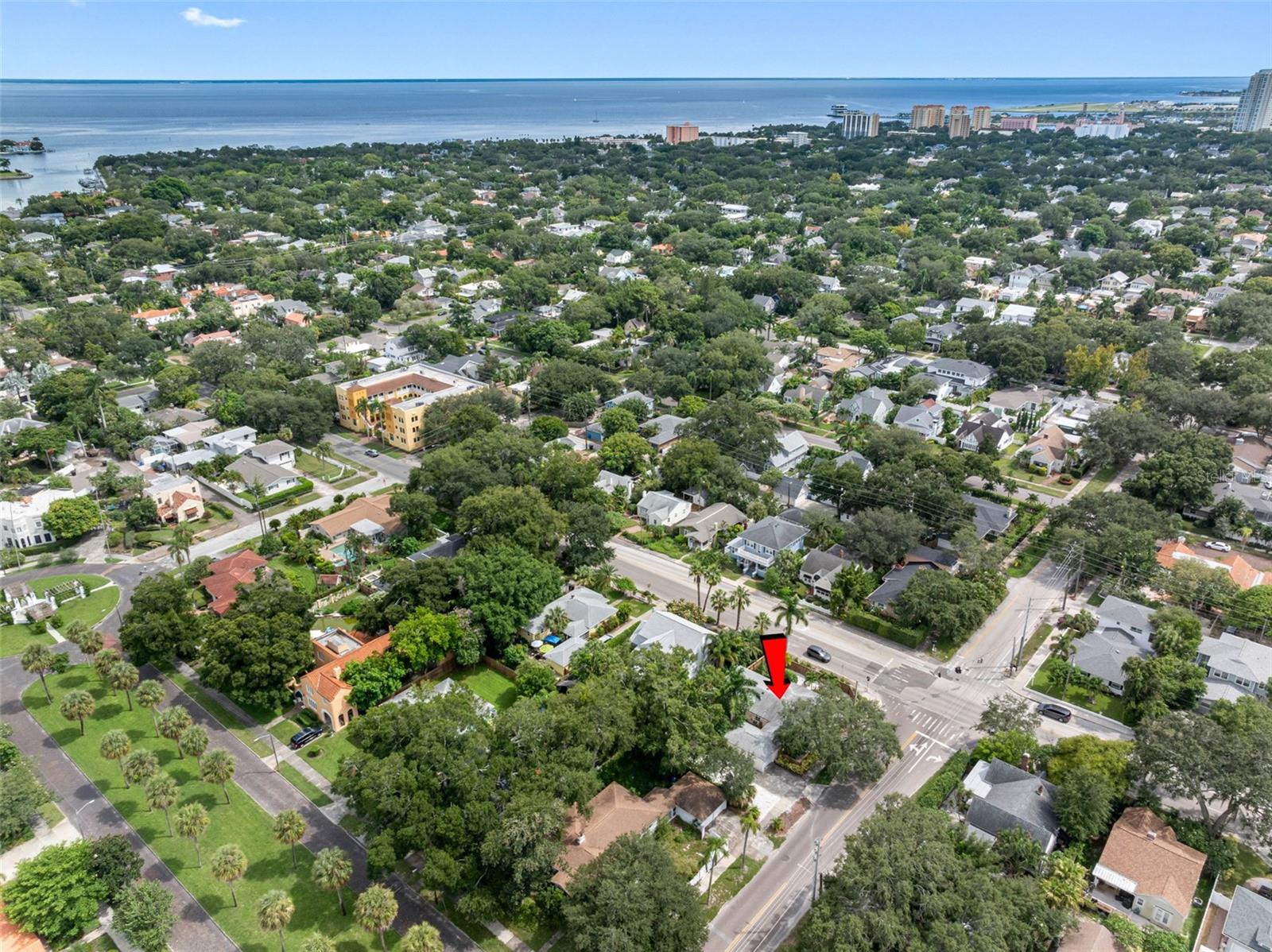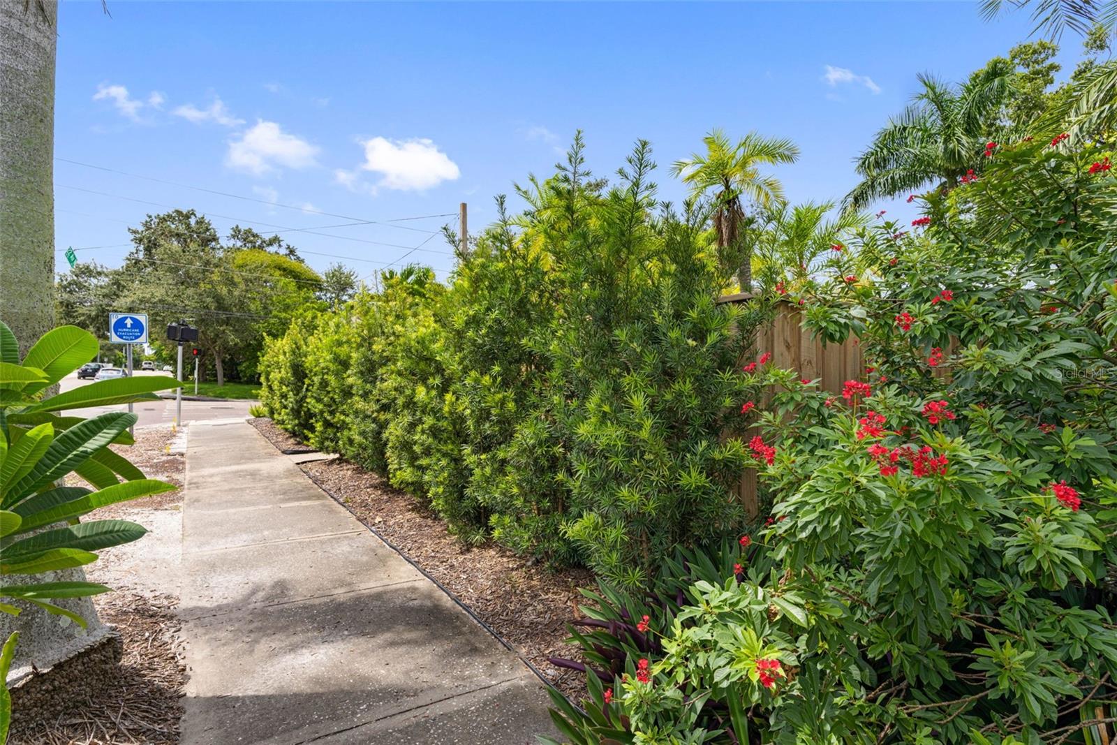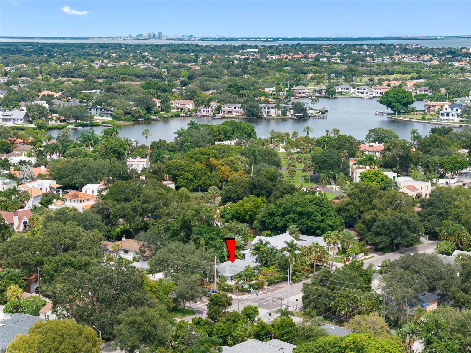 **HOUSE DID NOT FLOOD** Welcome to your mid-century modern home in Historic Old Northeast, St. Petersburg, FL, blending the historic charm of the 1950s with today's modern conveniences. This gorgeous 3-bedroom, 2-bathroom house is situated on a corner lot, enclosed by a wooden privacy fence, creating a private tropical oasis with lush landscaping, mature palm trees, and vibrant shrubbery. The property features terrazzo-tiled porches, a low-maintenance xeriscaped yard, and a versatile backyard with a large deck ideal for gatherings or a future pool. Inside, the home boasts hardwood flooring throughout, an open floor plan, and large windows adorned with custom drapery that illuminate the space with natural light. The updated kitchen is a cook’s dream with new quartz countertops, stylish backsplash, updated cabinets, a stainless steel dishwasher, and a gas four-burner range. The dining nook, featuring a charming blend of modern and vintage elements with an eye-catching new antique light fixture, leads directly into the sunroom, perfect for relaxing and offering access to the expansive deck for your morning coffee. The home’s unique character is highlighted by elegant arched openings that enhance the mid-century vibe, and striking botanical-themed wallpaper that adds sophistication to the hallway. The dinette area extends into a Florida room featuring a striking terrazzo floor and practical sliding doors that open to the backyard, enhancing the indoor-outdoor flow. The primary bedroom offers a walk-in closet, a remodeled ensuite with dual vanities and a walk-in shower, and private access to the patio, perfect for enjoying the outdoors. Recent renovations include all new interior custom shaker doors that enhance the clean, modern aesthetic. Significant upgrades to the home include a fully encapsulated crawl space with a dehumidifier and sump pump to ensure a clean and dry environment beneath the house. The garage boasts epoxy flooring and custom shelving, along with power for an electric car charger. Custom spot lighting has been installed in the front and backyard, beautifully illuminating the palm trees and landscaping at night, creating a stunning visual effect. Situated just blocks from Coffee Pot Bayou, the home is ideally located close to waterfront parks, downtown St. Petersburg, museums, restaurants, and shopping areas. The neighborhood is known for its preserved architecture and access to highly regarded schools, making it a prime location for both leisure and educational opportunities. Additional features include a one-car garage, driveway space for three vehicles, and a side gate to store a boat or RV. This mid-century home is move-in ready and located in a vibrant area perfect for enjoying Florida's lifestyle, with nearby access to kayaking, biking, and the Vinoy Resort Golf Club. Experience spectacular views from the St. Pete Pier and enjoy cultural outings like visiting The Dali Museum or watching a Rays game at Tropicana Field. A few minute's walk to Tampa Bay waterfront and 15 minutes drive to the Gulf of Mexico beaches. Call today to make this exceptional property your home!