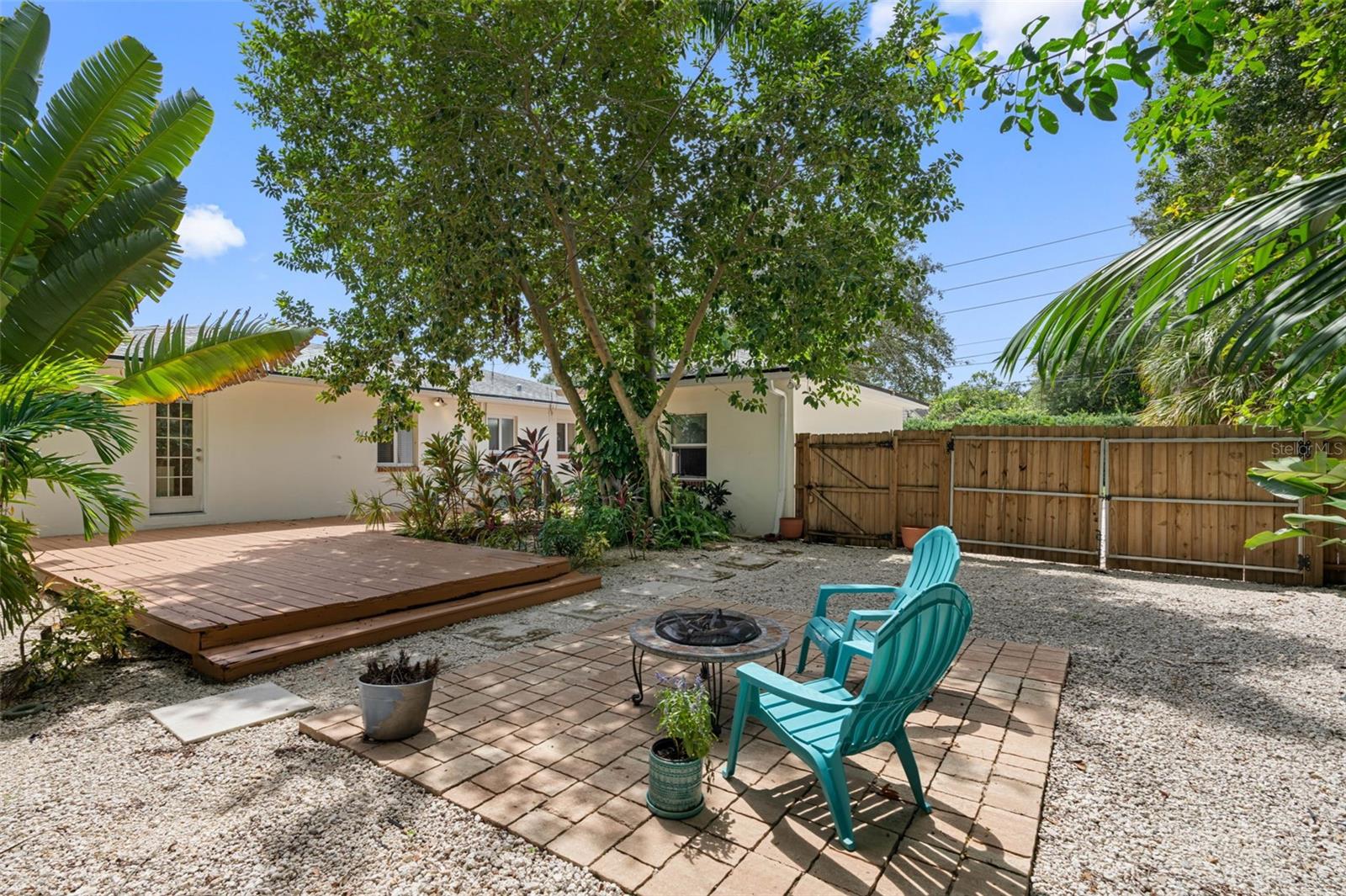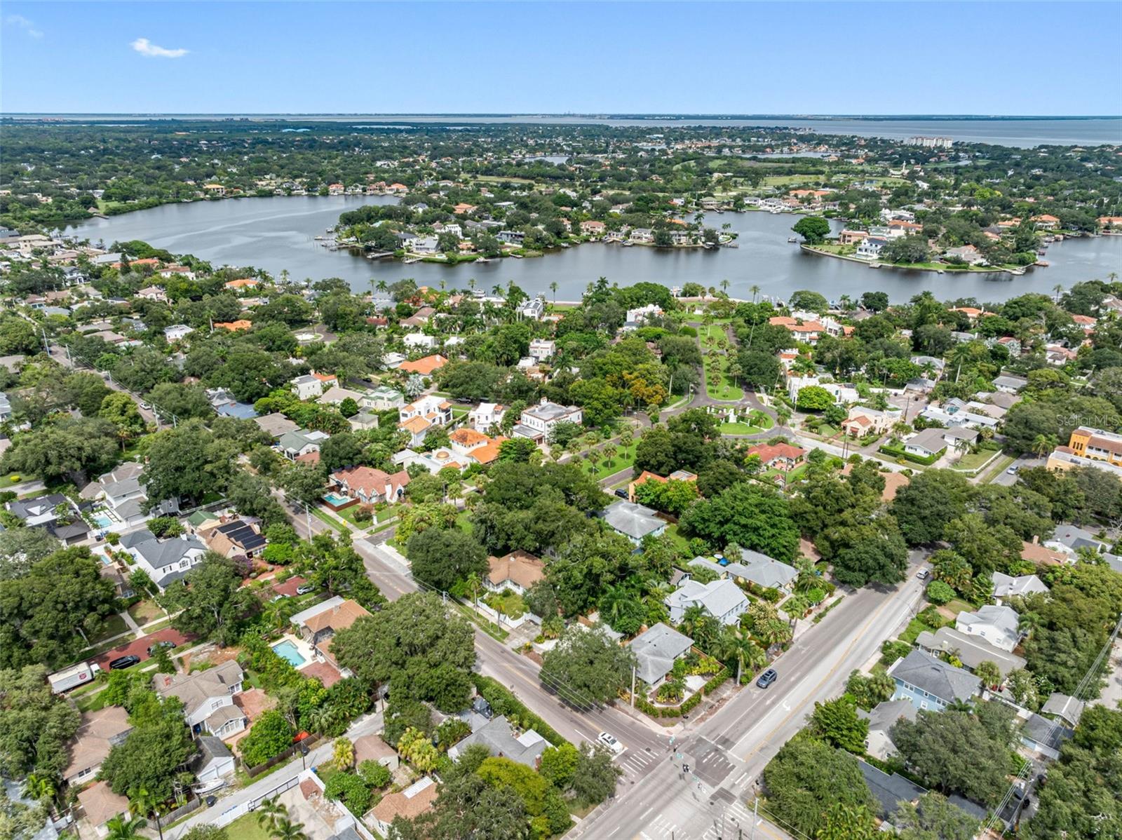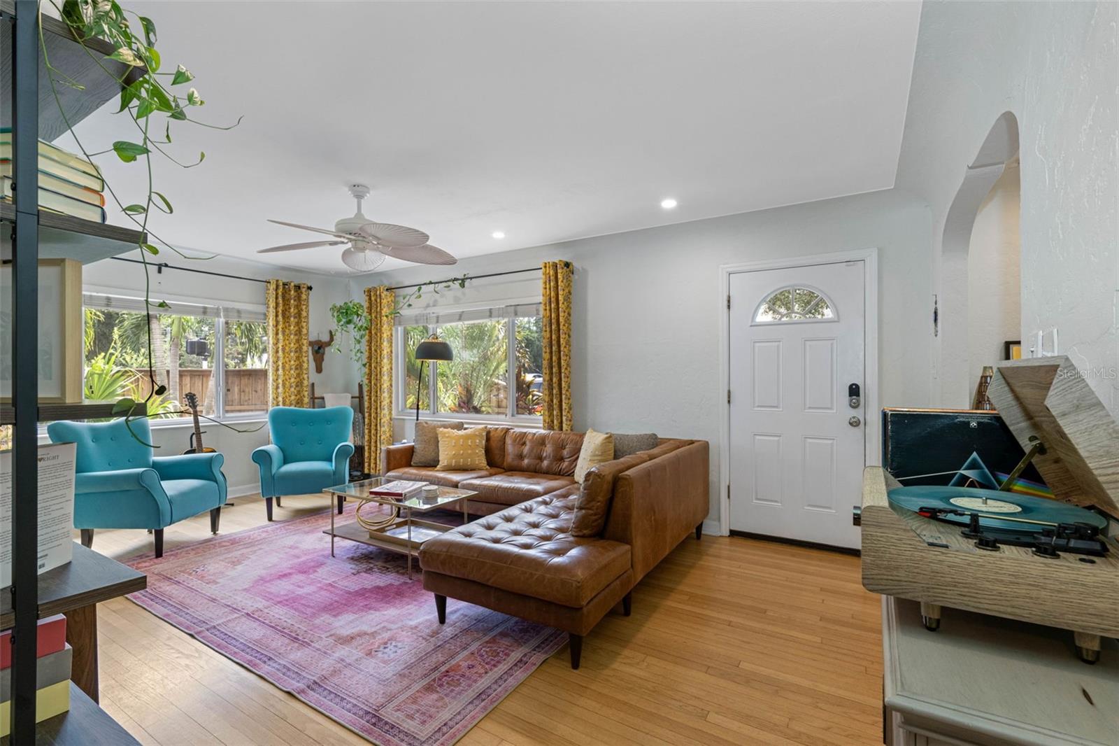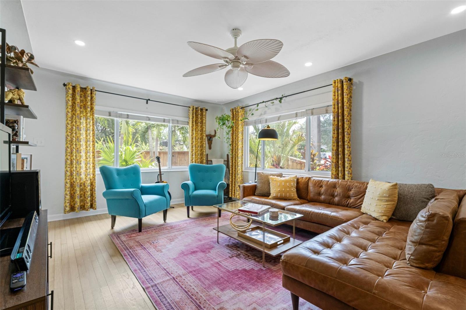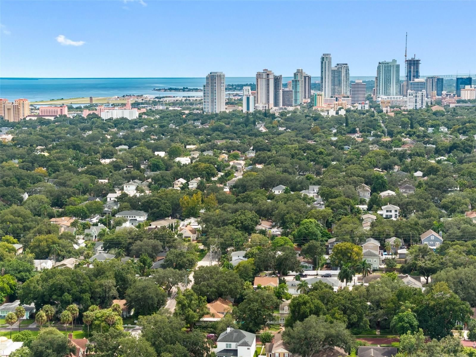 **HOUSE DID NOT FLOOD** Welcome to your mid-century modern home in Historic Old Northeast, St. Petersburg, FL, blending the historic charm of the 1950s with today's modern conveniences. This gorgeous 3-bedroom, 2-bathroom house is situated on a corner lot, enclosed by a wooden privacy fence, creating a private tropical oasis with lush landscaping, mature palm trees, and vibrant shrubbery. The property features terrazzo-tiled porches, a low-maintenance xeriscaped yard, and a versatile backyard with a large deck ideal for gatherings or a future pool. Inside, the home boasts hardwood flooring throughout, an open floor plan, and large windows adorned with custom drapery that illuminate the space with natural light. The updated kitchen is a cook’s dream with new quartz countertops, stylish backsplash, updated cabinets, a stainless steel dishwasher, and a gas four-burner range. The dining nook, featuring a charming blend of modern and vintage elements with an eye-catching new antique light fixture, leads directly into the sunroom, perfect for relaxing and offering access to the expansive deck for your morning coffee. The home’s unique character is highlighted by elegant arched openings that enhance the mid-century vibe, and striking botanical-themed wallpaper that adds sophistication to the hallway. The dinette area extends into a Florida room featuring a striking terrazzo floor and practical sliding doors that open to the backyard, enhancing the indoor-outdoor flow. The primary bedroom offers a walk-in closet, a remodeled ensuite with dual vanities and a walk-in shower, and private access to the patio, perfect for enjoying the outdoors. Recent renovations include all new interior custom shaker doors that enhance the clean, modern aesthetic. Significant upgrades to the home include a fully encapsulated crawl space with a dehumidifier and sump pump to ensure a clean and dry environment beneath the house. The garage boasts epoxy flooring and custom shelving, along with power for an electric car charger. Custom spot lighting has been installed in the front and backyard, beautifully illuminating the palm trees and landscaping at night, creating a stunning visual effect. Situated just blocks from Coffee Pot Bayou, the home is ideally located close to waterfront parks, downtown St. Petersburg, museums, restaurants, and shopping areas. The neighborhood is known for its preserved architecture and access to highly regarded schools, making it a prime location for both leisure and educational opportunities. Additional features include a one-car garage, driveway space for three vehicles, and a side gate to store a boat or RV. This mid-century home is move-in ready and located in a vibrant area perfect for enjoying Florida's lifestyle, with nearby access to kayaking, biking, and the Vinoy Resort Golf Club. Experience spectacular views from the St. Pete Pier and enjoy cultural outings like visiting The Dali Museum or watching a Rays game at Tropicana Field. A few minute's walk to Tampa Bay waterfront and 15 minutes drive to the Gulf of Mexico beaches. Call today to make this exceptional property your home!