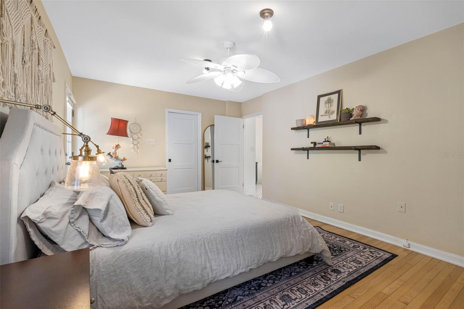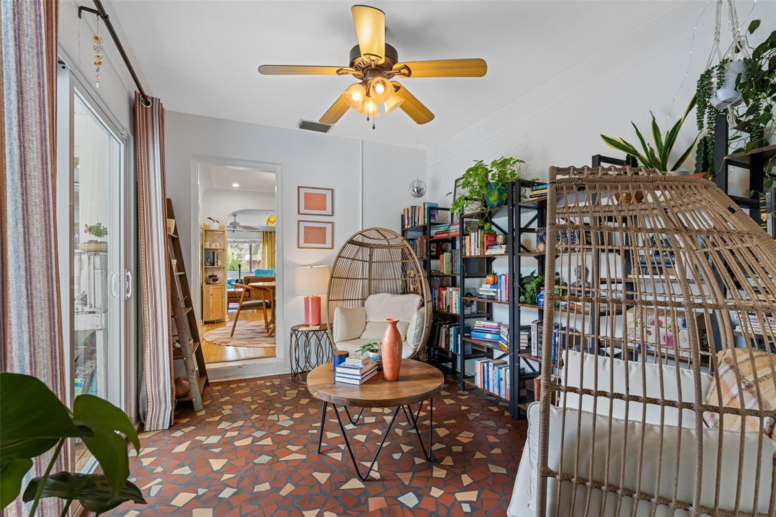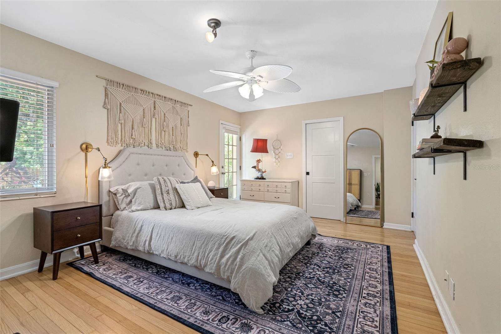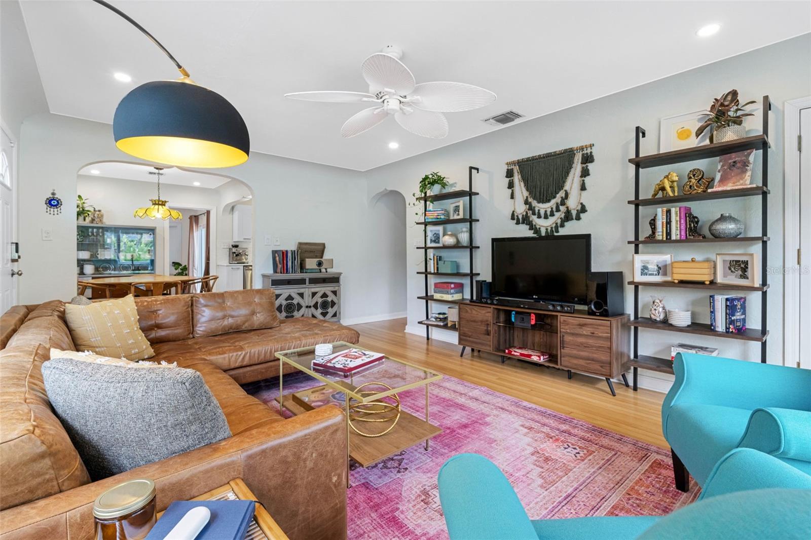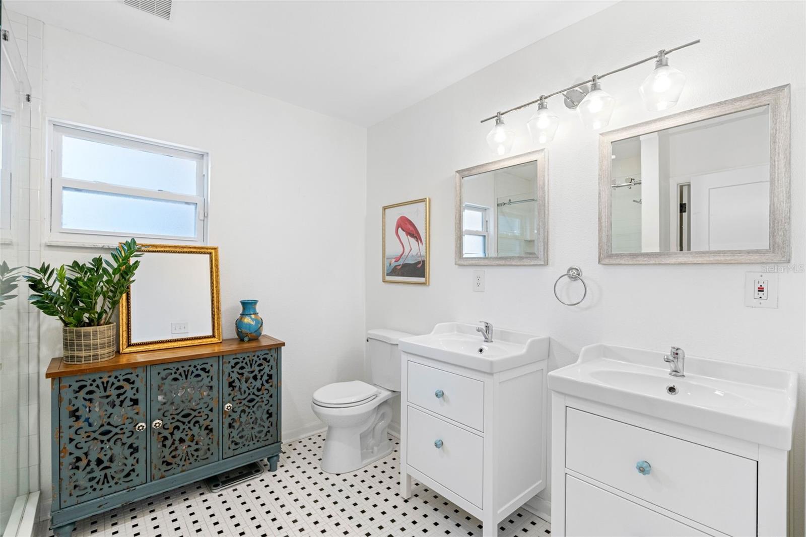 **HOUSE DID NOT FLOOD** Welcome to your mid-century modern home in Historic Old Northeast, St. Petersburg, FL, blending the historic charm of the 1950s with today's modern conveniences. This gorgeous 3-bedroom, 2-bathroom house is situated on a corner lot, enclosed by a wooden privacy fence, creating a private tropical oasis with lush landscaping, mature palm trees, and vibrant shrubbery. The property features terrazzo-tiled porches, a low-maintenance xeriscaped yard, and a versatile backyard with a large deck ideal for gatherings or a future pool. Inside, the home boasts hardwood flooring throughout, an open floor plan, and large windows adorned with custom drapery that illuminate the space with natural light. The updated kitchen is a cook’s dream with new quartz countertops, stylish backsplash, updated cabinets, a stainless steel dishwasher, and a gas four-burner range. The dining nook, featuring a charming blend of modern and vintage elements with an eye-catching new antique light fixture, leads directly into the sunroom, perfect for relaxing and offering access to the expansive deck for your morning coffee. The home’s unique character is highlighted by elegant arched openings that enhance the mid-century vibe, and striking botanical-themed wallpaper that adds sophistication to the hallway. The dinette area extends into a Florida room featuring a striking terrazzo floor and practical sliding doors that open to the backyard, enhancing the indoor-outdoor flow. The primary bedroom offers a walk-in closet, a remodeled ensuite with dual vanities and a walk-in shower, and private access to the patio, perfect for enjoying the outdoors. Recent renovations include all new interior custom shaker doors that enhance the clean, modern aesthetic. Significant upgrades to the home include a fully encapsulated crawl space with a dehumidifier and sump pump to ensure a clean and dry environment beneath the house. The garage boasts epoxy flooring and custom shelving, along with power for an electric car charger. Custom spot lighting has been installed in the front and backyard, beautifully illuminating the palm trees and landscaping at night, creating a stunning visual effect. Situated just blocks from Coffee Pot Bayou, the home is ideally located close to waterfront parks, downtown St. Petersburg, museums, restaurants, and shopping areas. The neighborhood is known for its preserved architecture and access to highly regarded schools, making it a prime location for both leisure and educational opportunities. Additional features include a one-car garage, driveway space for three vehicles, and a side gate to store a boat or RV. This mid-century home is move-in ready and located in a vibrant area perfect for enjoying Florida's lifestyle, with nearby access to kayaking, biking, and the Vinoy Resort Golf Club. Experience spectacular views from the St. Pete Pier and enjoy cultural outings like visiting The Dali Museum or watching a Rays game at Tropicana Field. A few minute's walk to Tampa Bay waterfront and 15 minutes drive to the Gulf of Mexico beaches. Call today to make this exceptional property your home!