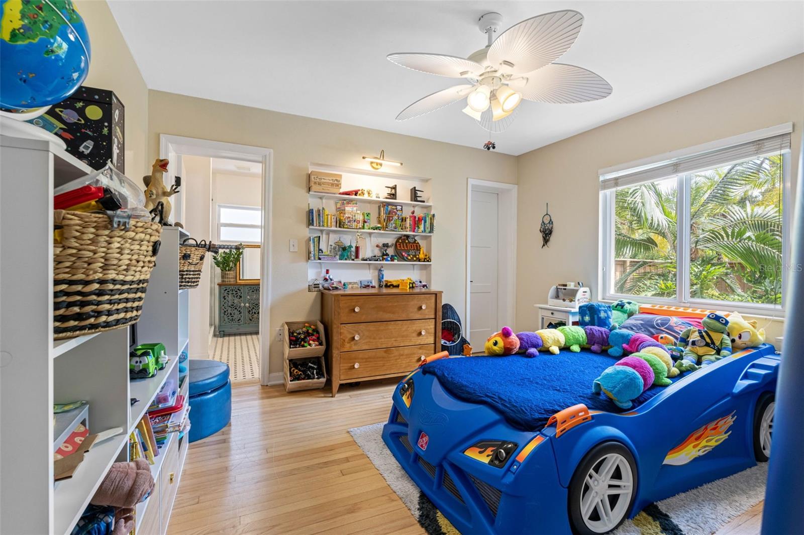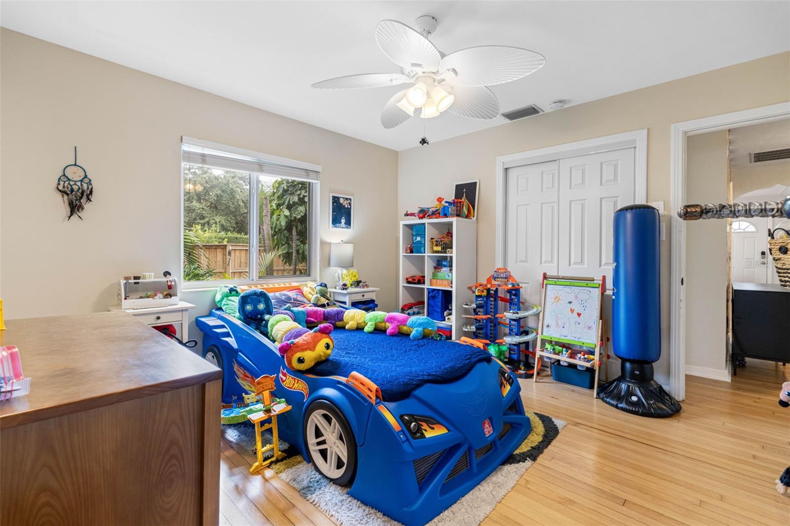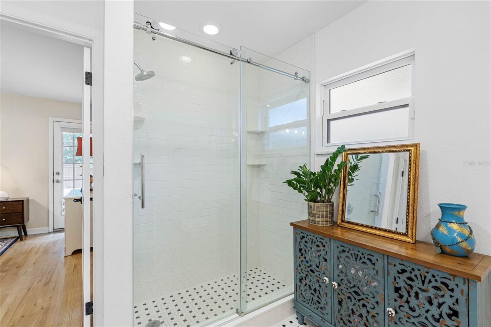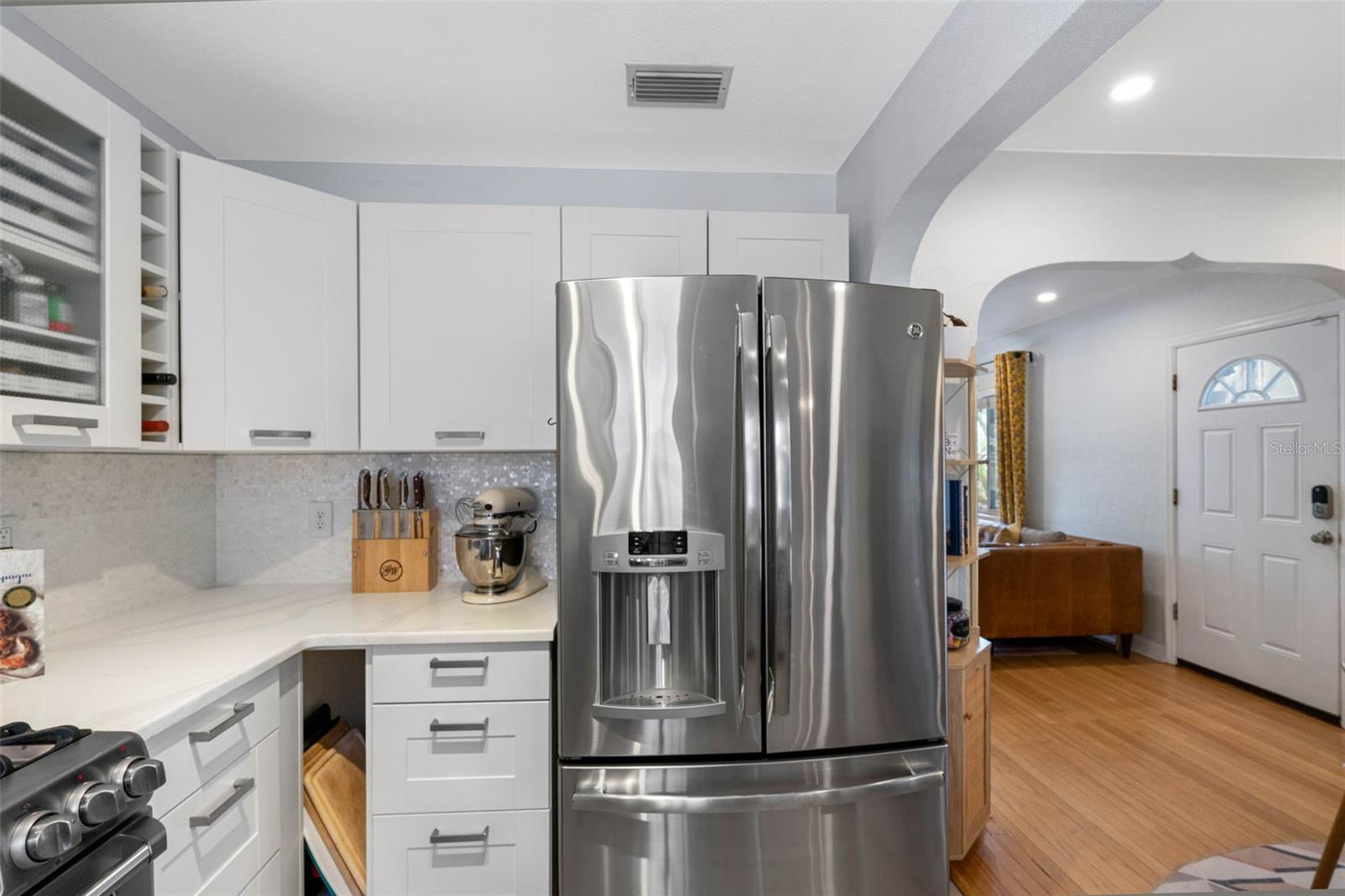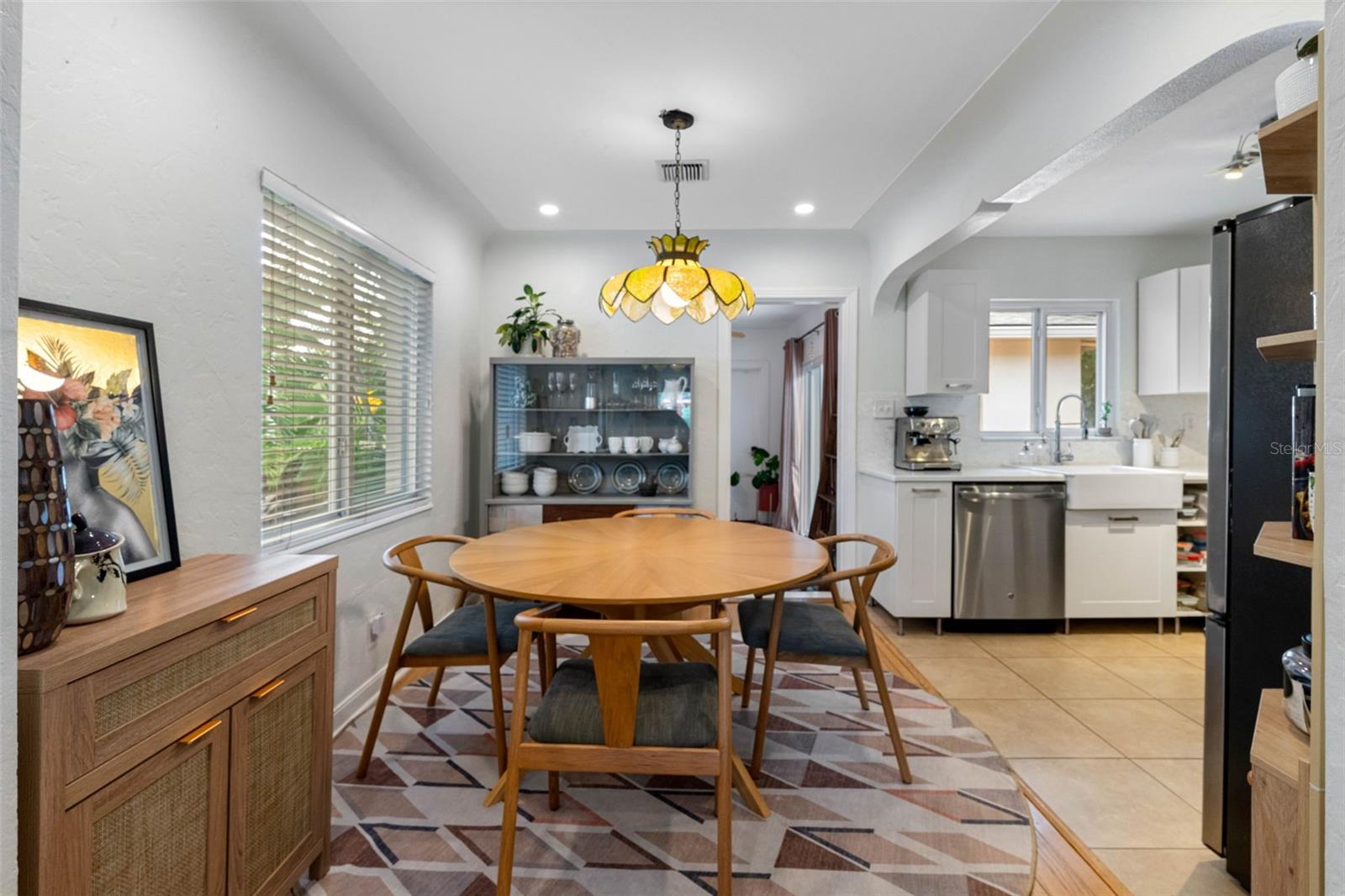 **HOUSE DID NOT FLOOD** Welcome to your mid-century modern home in Historic Old Northeast, St. Petersburg, FL, blending the historic charm of the 1950s with today's modern conveniences. This gorgeous 3-bedroom, 2-bathroom house is situated on a corner lot, enclosed by a wooden privacy fence, creating a private tropical oasis with lush landscaping, mature palm trees, and vibrant shrubbery. The property features terrazzo-tiled porches, a low-maintenance xeriscaped yard, and a versatile backyard with a large deck ideal for gatherings or a future pool. Inside, the home boasts hardwood flooring throughout, an open floor plan, and large windows adorned with custom drapery that illuminate the space with natural light. The updated kitchen is a cook’s dream with new quartz countertops, stylish backsplash, updated cabinets, a stainless steel dishwasher, and a gas four-burner range. The dining nook, featuring a charming blend of modern and vintage elements with an eye-catching new antique light fixture, leads directly into the sunroom, perfect for relaxing and offering access to the expansive deck for your morning coffee. The home’s unique character is highlighted by elegant arched openings that enhance the mid-century vibe, and striking botanical-themed wallpaper that adds sophistication to the hallway. The dinette area extends into a Florida room featuring a striking terrazzo floor and practical sliding doors that open to the backyard, enhancing the indoor-outdoor flow. The primary bedroom offers a walk-in closet, a remodeled ensuite with dual vanities and a walk-in shower, and private access to the patio, perfect for enjoying the outdoors. Recent renovations include all new interior custom shaker doors that enhance the clean, modern aesthetic. Significant upgrades to the home include a fully encapsulated crawl space with a dehumidifier and sump pump to ensure a clean and dry environment beneath the house. The garage boasts epoxy flooring and custom shelving, along with power for an electric car charger. Custom spot lighting has been installed in the front and backyard, beautifully illuminating the palm trees and landscaping at night, creating a stunning visual effect. Situated just blocks from Coffee Pot Bayou, the home is ideally located close to waterfront parks, downtown St. Petersburg, museums, restaurants, and shopping areas. The neighborhood is known for its preserved architecture and access to highly regarded schools, making it a prime location for both leisure and educational opportunities. Additional features include a one-car garage, driveway space for three vehicles, and a side gate to store a boat or RV. This mid-century home is move-in ready and located in a vibrant area perfect for enjoying Florida's lifestyle, with nearby access to kayaking, biking, and the Vinoy Resort Golf Club. Experience spectacular views from the St. Pete Pier and enjoy cultural outings like visiting The Dali Museum or watching a Rays game at Tropicana Field. A few minute's walk to Tampa Bay waterfront and 15 minutes drive to the Gulf of Mexico beaches. Call today to make this exceptional property your home!
