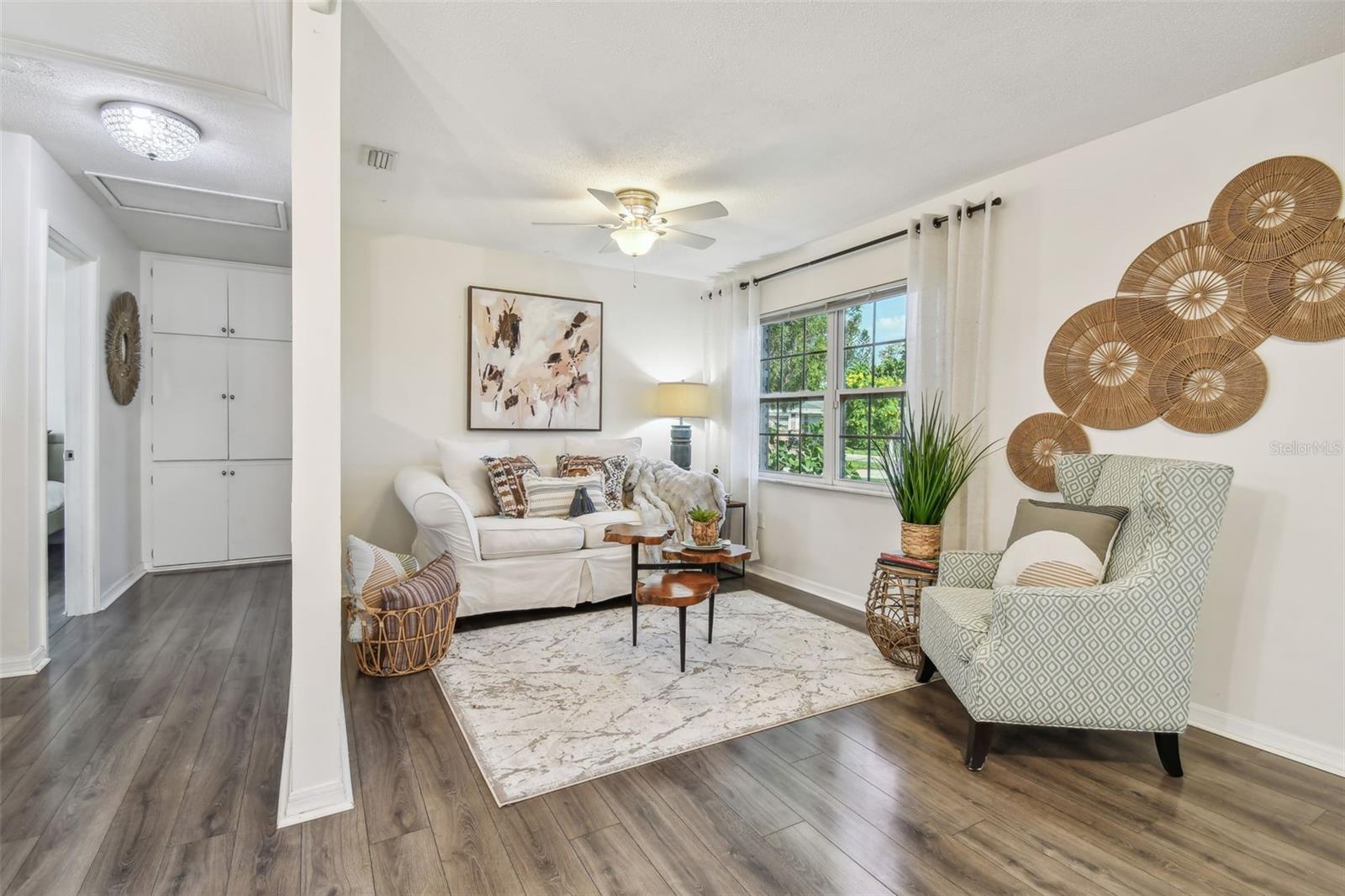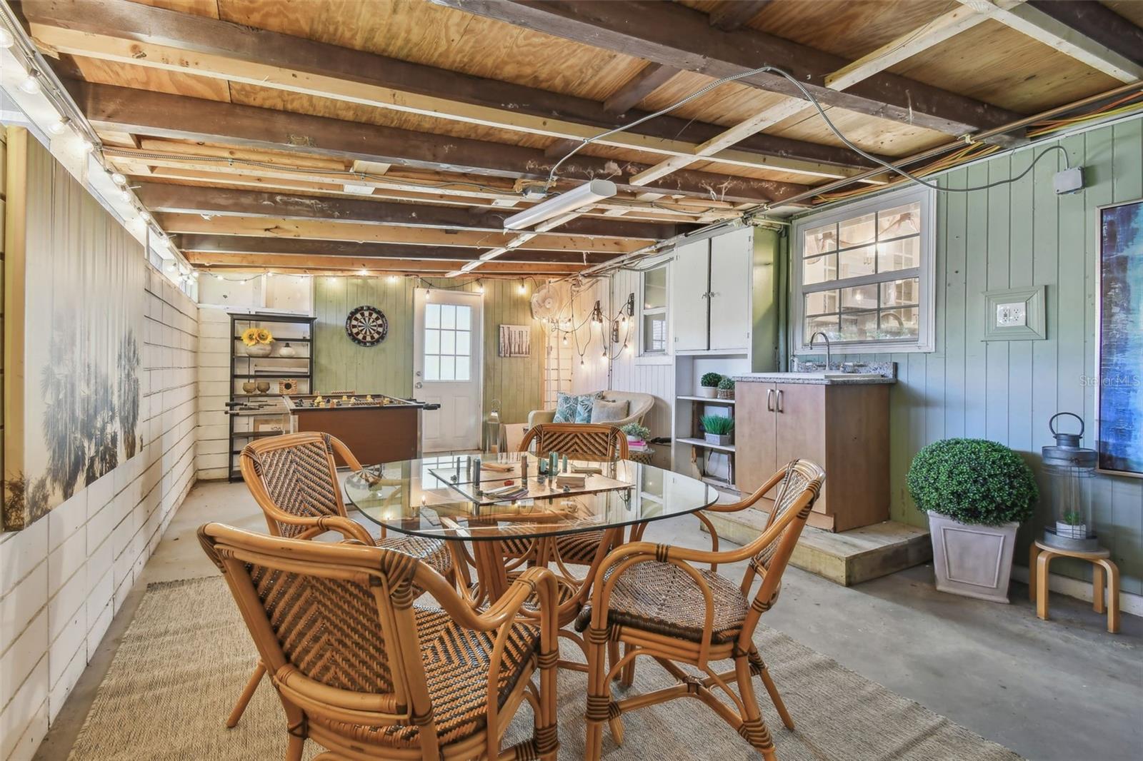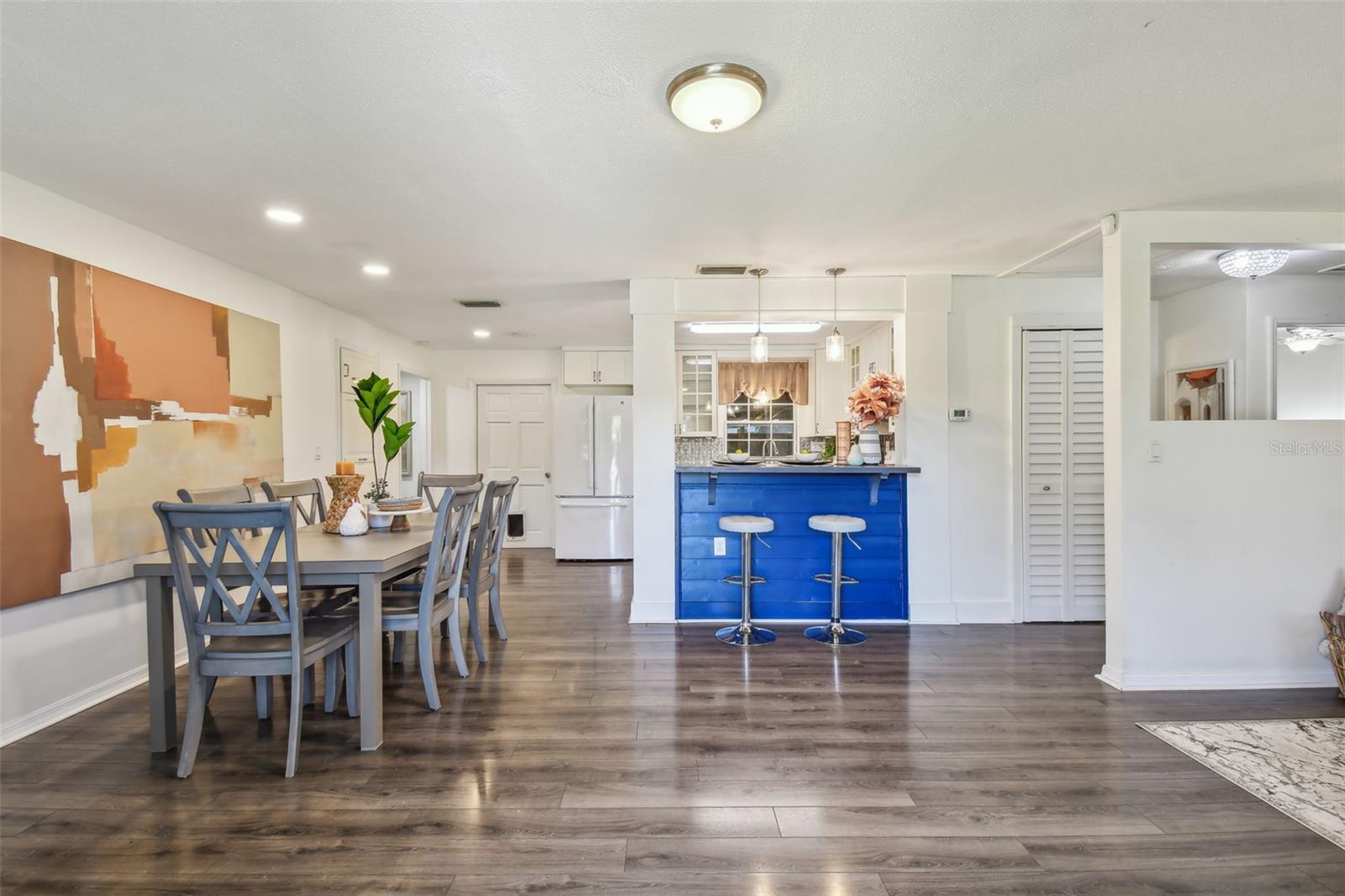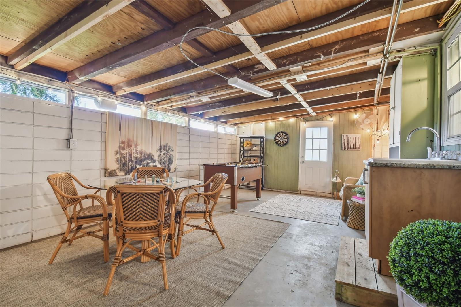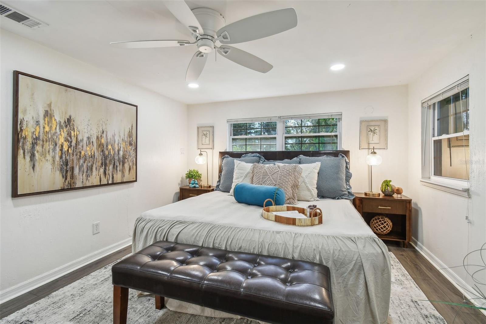 Tucked away on an expansive corner lot (96x100), this delightful home offers a blend of character and modern comfort. The charming brick exterior of this 1953 home invites you inside, where a bright and airy split/open floor plan awaits. The open layout includes a cozy living room perfect for intimate gatherings along with a sprawling, multi-purpose family room that can be used as a second living area, office space, or can be converted into a 4th bedroom/guest space. The kitchen is designed for function and style, with quartz countertops and plenty of counter space and storage space for all your cooking needs. The dining area is conveniently situated between the kitchen and living room. The primary bedroom sits quietly on the left side of the split floorplan offering a peaceful retreat with plenty of closet space along with a private updated bathroom, while the two additional bedrooms and guest bath are positioned on the other side of the home for added privacy. The colonial-style windows bring in even more charm and highlight the natural light in the open living space. The enclosed porch in the back can be used for multiple purposes such as an inside/outside hangout space, home gym, workshop, additional storage, or a combination of all of these. You could even convert this space back into a carport. As you head into the backyard you'll be greeted by your own tropical retreat that offers plenty of shade with thriving palm palm trees and lush landscaping. The backyard also features a brick patio that sits right off the TV nook, perfect for enjoying outdoor entertainment under the shade—only a 15-minute drive to downtown St. Pete and within walking distance to Meadowlawn Park. Additional features include 2018 A/C system, a 2014 water heater, and a 2022 flat roof/2012 main roof. Schedule your showing today!