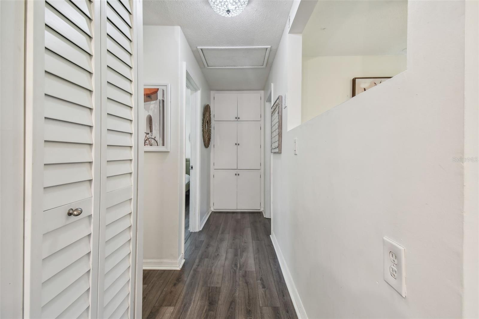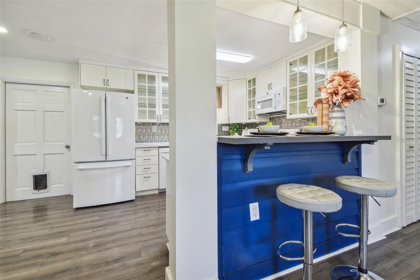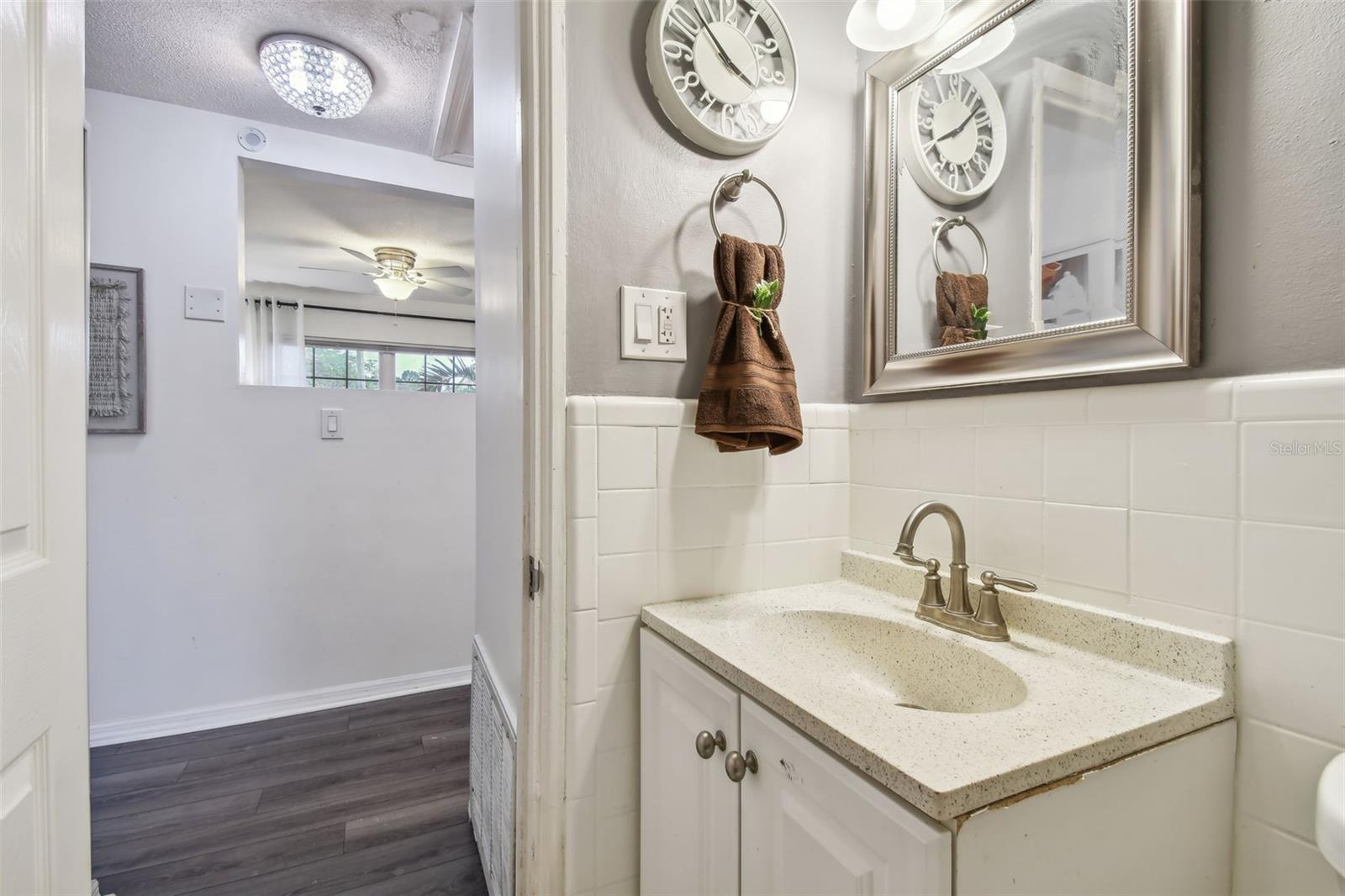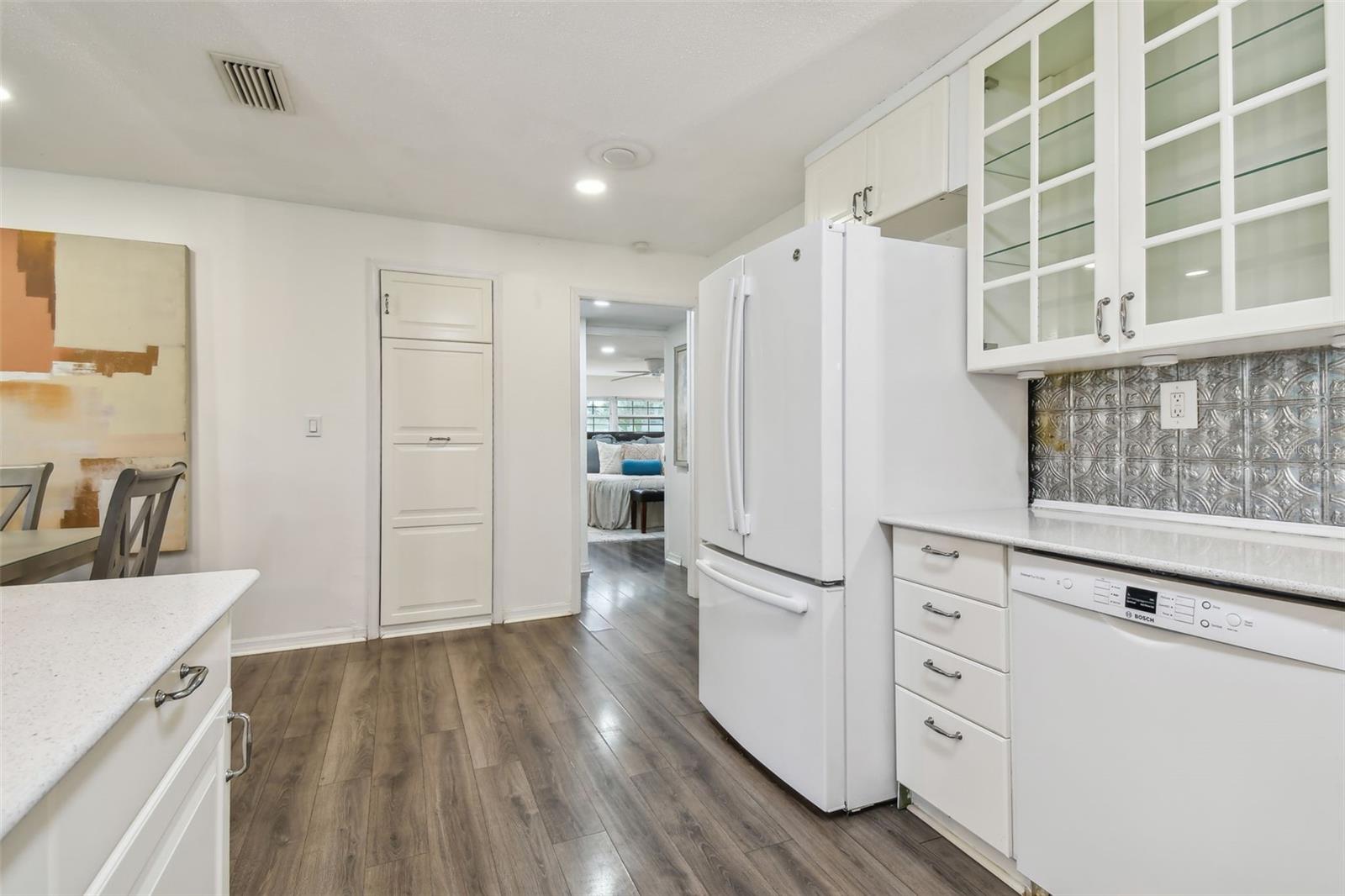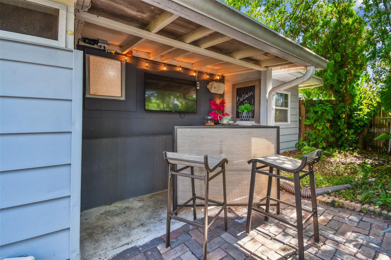 Tucked away on an expansive corner lot (96x100), this delightful home offers a blend of character and modern comfort. The charming brick exterior of this 1953 home invites you inside, where a bright and airy split/open floor plan awaits. The open layout includes a cozy living room perfect for intimate gatherings along with a sprawling, multi-purpose family room that can be used as a second living area, office space, or can be converted into a 4th bedroom/guest space. The kitchen is designed for function and style, with quartz countertops and plenty of counter space and storage space for all your cooking needs. The dining area is conveniently situated between the kitchen and living room. The primary bedroom sits quietly on the left side of the split floorplan offering a peaceful retreat with plenty of closet space along with a private updated bathroom, while the two additional bedrooms and guest bath are positioned on the other side of the home for added privacy. The colonial-style windows bring in even more charm and highlight the natural light in the open living space. The enclosed porch in the back can be used for multiple purposes such as an inside/outside hangout space, home gym, workshop, additional storage, or a combination of all of these. You could even convert this space back into a carport. As you head into the backyard you'll be greeted by your own tropical retreat that offers plenty of shade with thriving palm palm trees and lush landscaping. The backyard also features a brick patio that sits right off the TV nook, perfect for enjoying outdoor entertainment under the shade—only a 15-minute drive to downtown St. Pete and within walking distance to Meadowlawn Park. Additional features include 2018 A/C system, a 2014 water heater, and a 2022 flat roof/2012 main roof. Schedule your showing today!