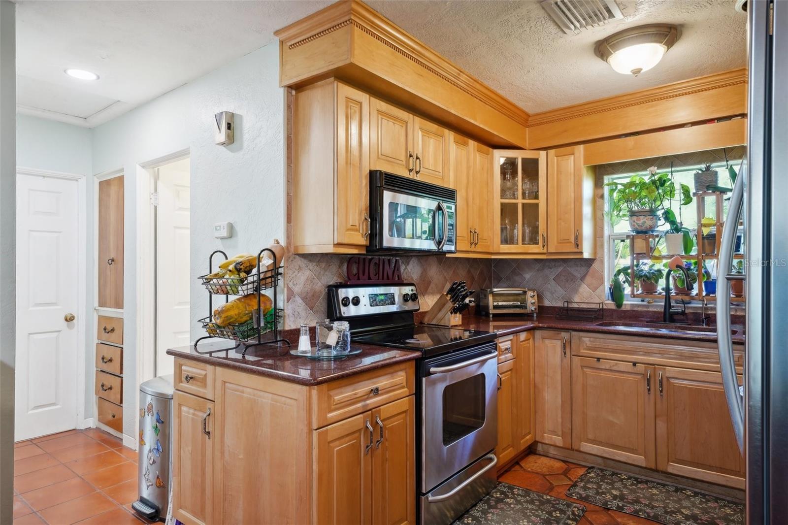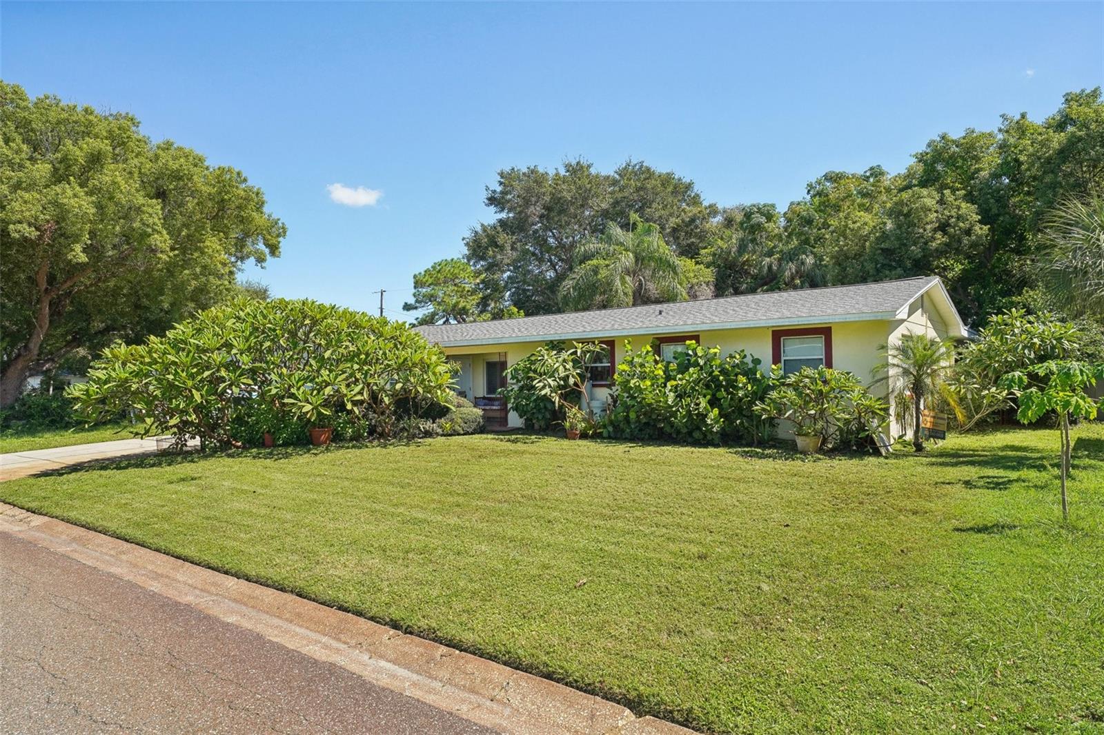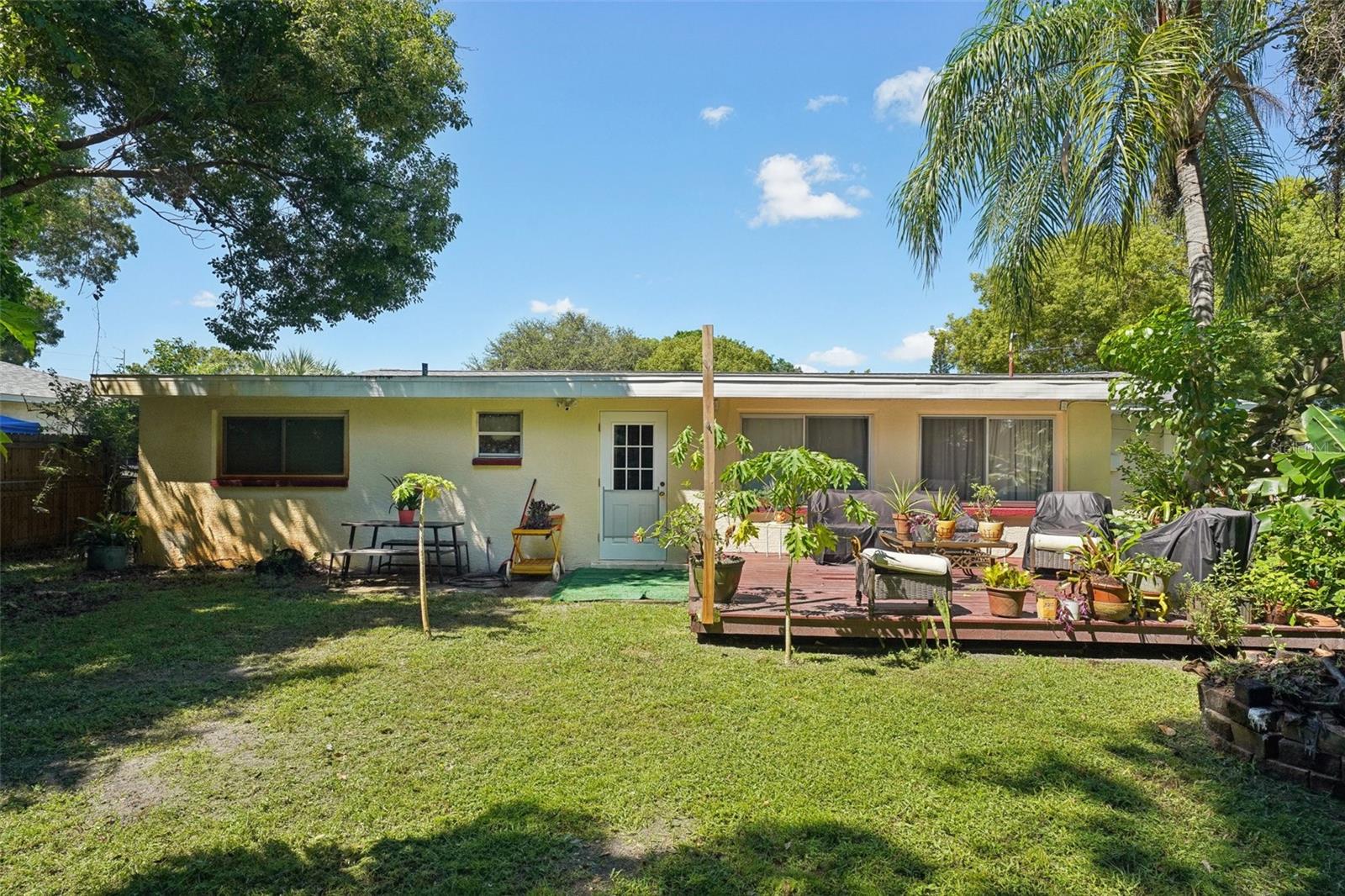 3.5% assumable mortgage available. Centrally located St Petersburg home with 4 bedrooms and 3 full bathrooms. NEW ROOF installed in 2023. This tropical abode is light and bright with freshly painted interior paint and tile flooring throughout most of this great home. The kitchen has all wood cabinets, stainless steel appliances, a granite countertop, and tile backsplash. The primary bedroom has an ensuite master bath that has been completely remodeled. The 2nd and 3rd bedrooms are next to the recently remodeled hall bathroom. The 4th bedroom with an ensuite bath and walk-in closet has a private entry and can serve as a fabulous In-law suite, whether it's your parents or adult child - everyone has their own space. The in-law suite is separate from the home and can be used to generate Airbnb or rental income. The family room is a great indoor gathering place for games and movies. There is access to the backyard from the family room for seamless use of both spaces. The backyard sun deck in ready for your hammock and grilling equipment. Wake up each day surrounded by the lush, tropical landscaping and exotic gardens visible from the sun deck. Outdoor shed included. The home is elevated outside of the flood zone and current owners are NOT required to carry flood insurance. The location is ideal, you're in the center within 10-15 min drive of anywhere you want to be in St Pete. Some of the best beaches in the world are nearby. Enjoy walking or biking? You can access Pinellas Trail just minutes away and enjoy a 40+ mile ride. From golf courses to the mall, you are not far away and have access to it all! If downtown Tampa is the venue you want, you're just 30 minutes from some of the biggest venues in town. Drive 15 min southeast and experience downtown St.Pete with its amazing restaurants and nightlife. Secure this home's 3.5% assumable mortgage, save thousands annually, and close in 45 days when you work with Roam. Inquire with the listing agent for more details. Call today and don't let this one get away! Be sure to click on 3D virtual tour.