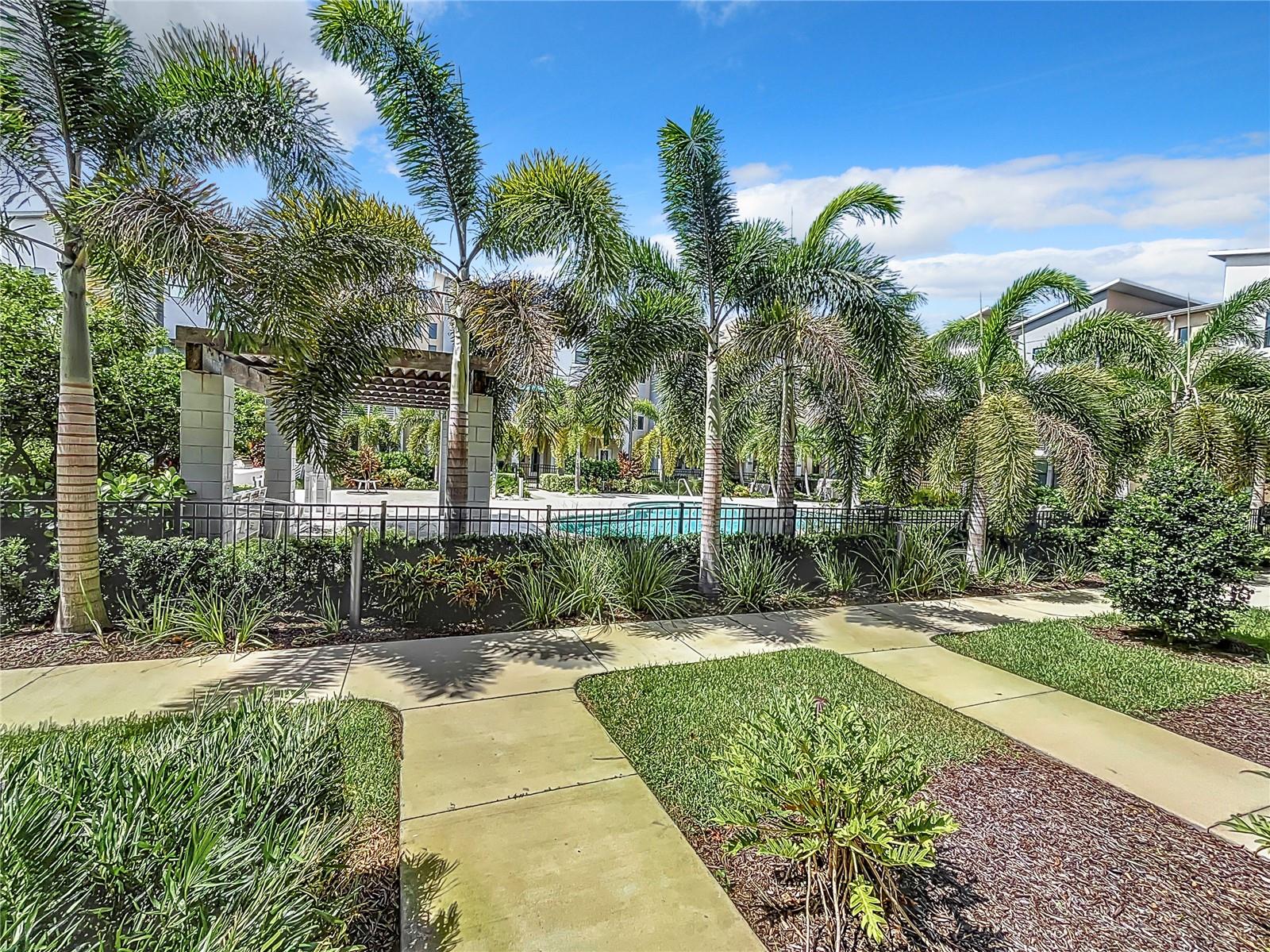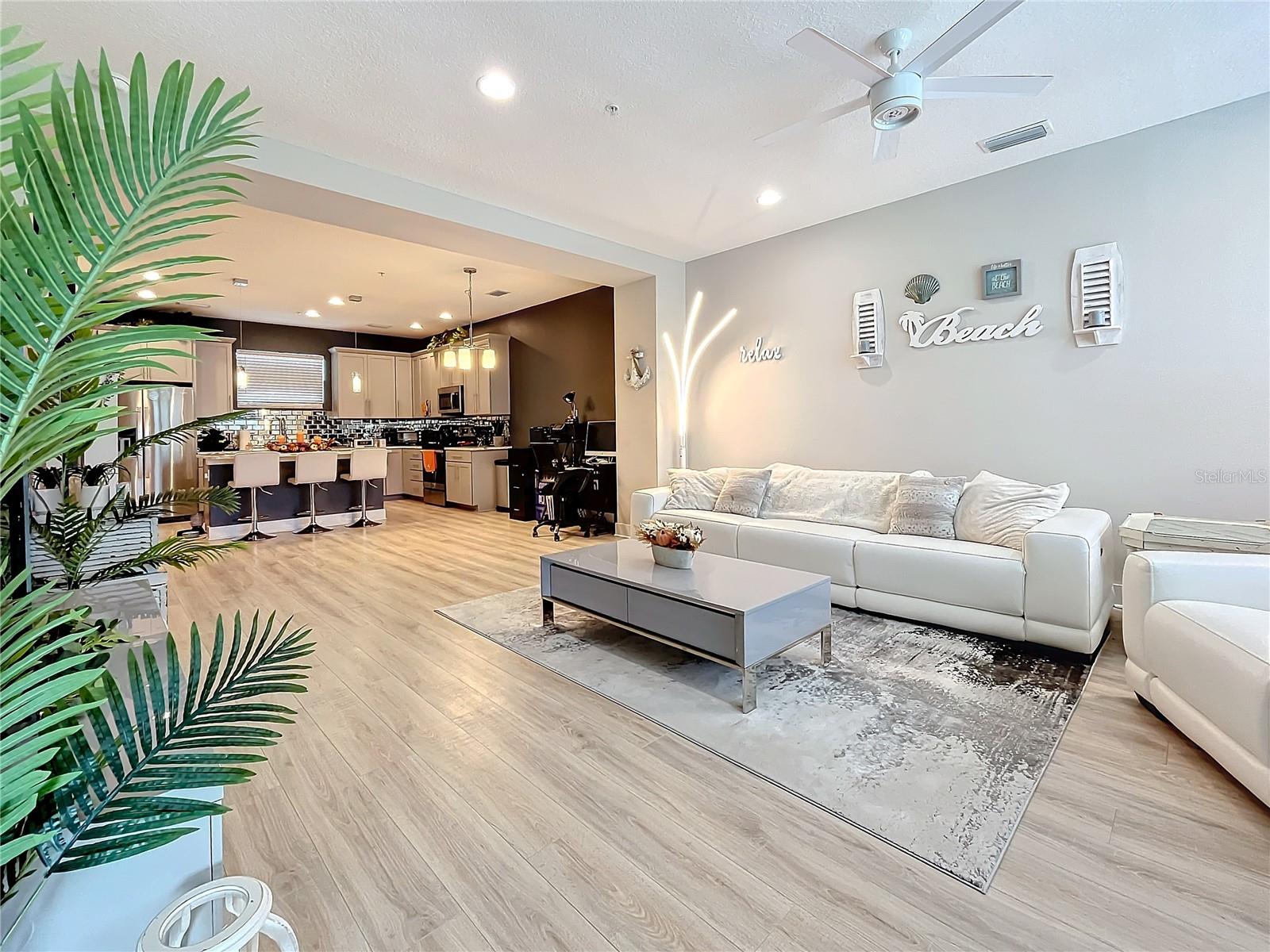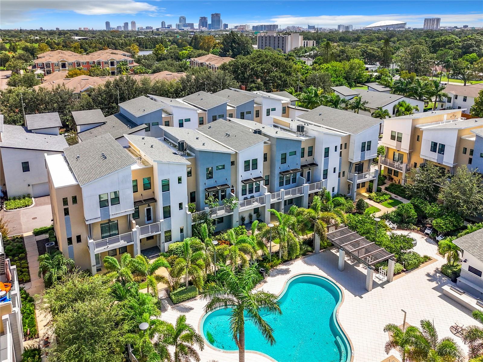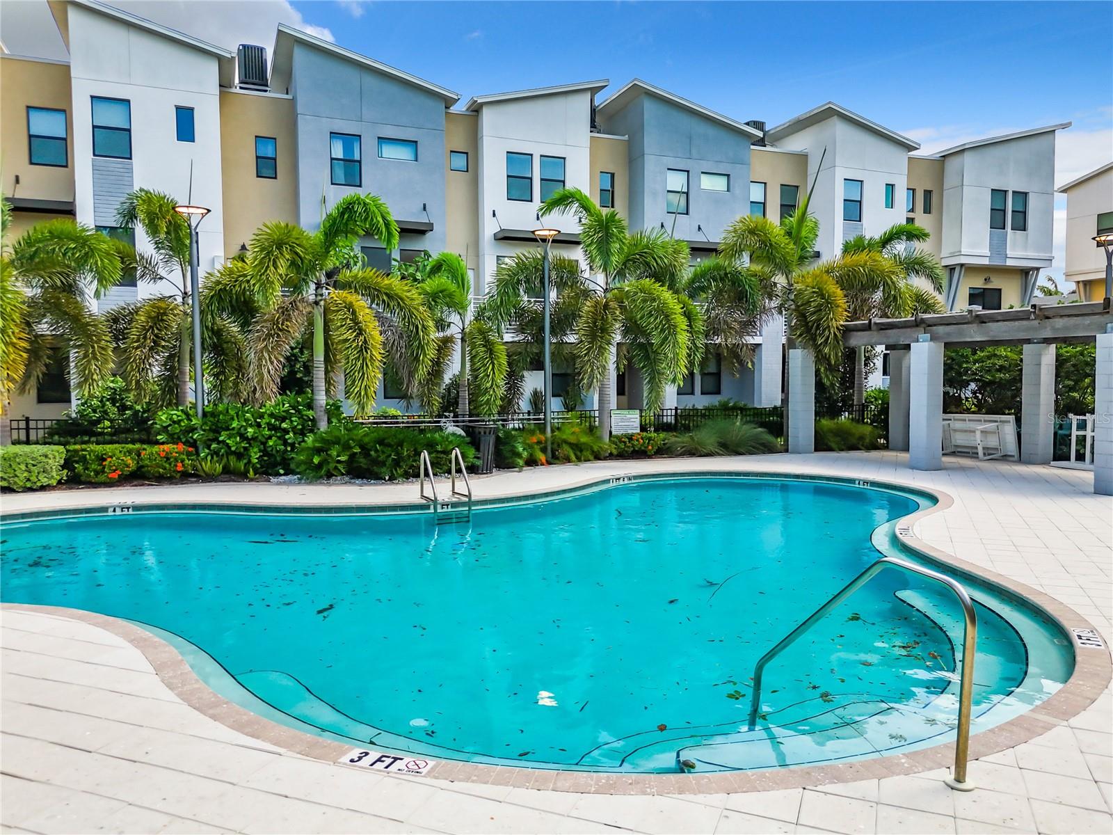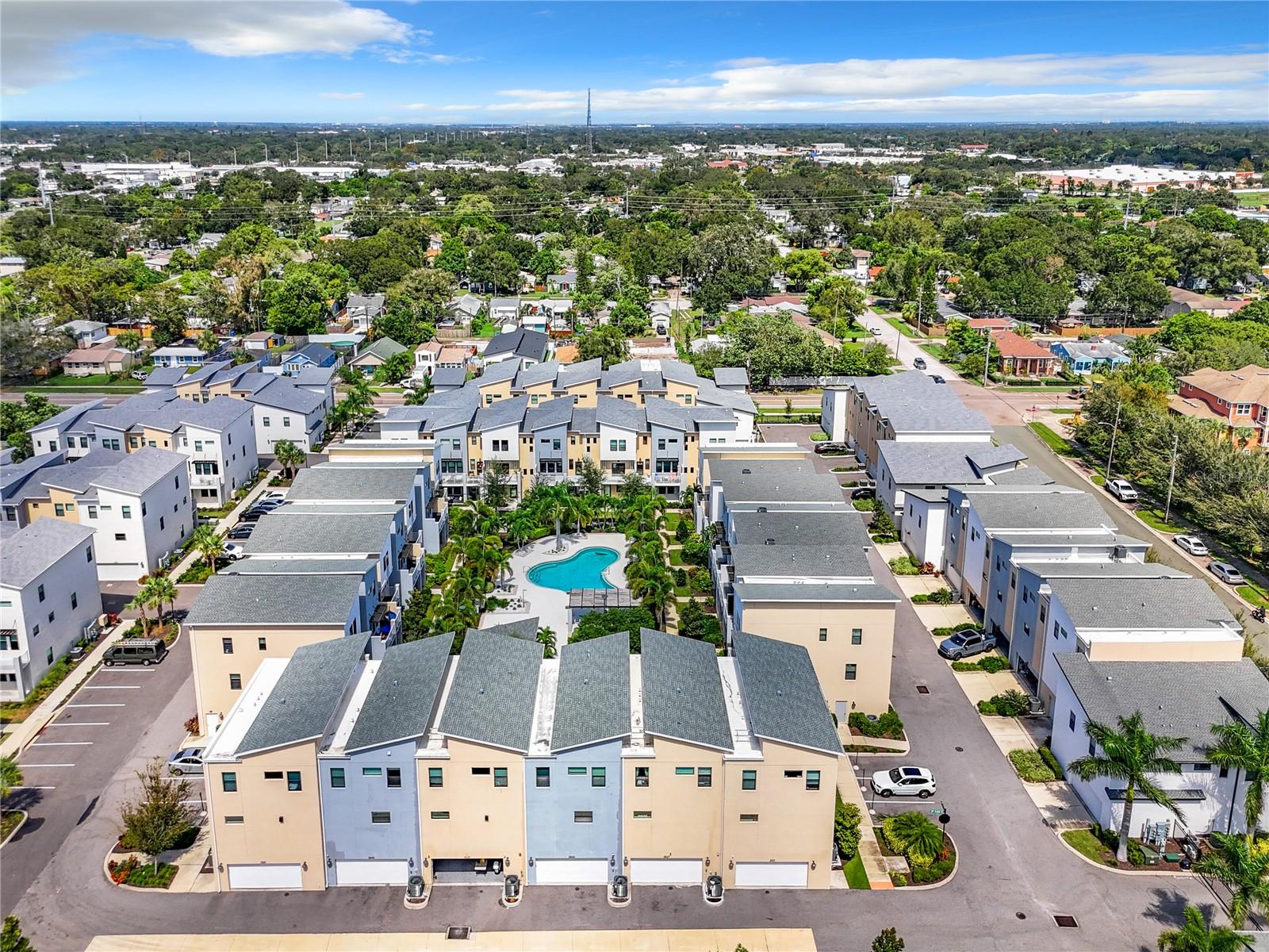 This newer construction Townhome in the N Kenwood area was left high and dry from Hurricanes Helene and Milton. Built in 2018, Uptown Kenwood is a gated community in close proximity to I-275, US 19, Grand Central, Tropicana Field, and downtown St. Petersburg. This very well-maintained unit has three levels of luxurious living that includes a two-car garage, a balcony overlooking the pristine pool area, and the third level has two bedrooms and baths including the primary bedroom with a walk-in closet. There's also a ground floor guest room and full bathroom. Open floorplan on the main living area with a kitchen island, mirrored back-splash, wood cabinets, and light-colored flooring. There are plenty of windows that offer an abundance of natural lighting. Furnishings are negotiable! Don't delay!