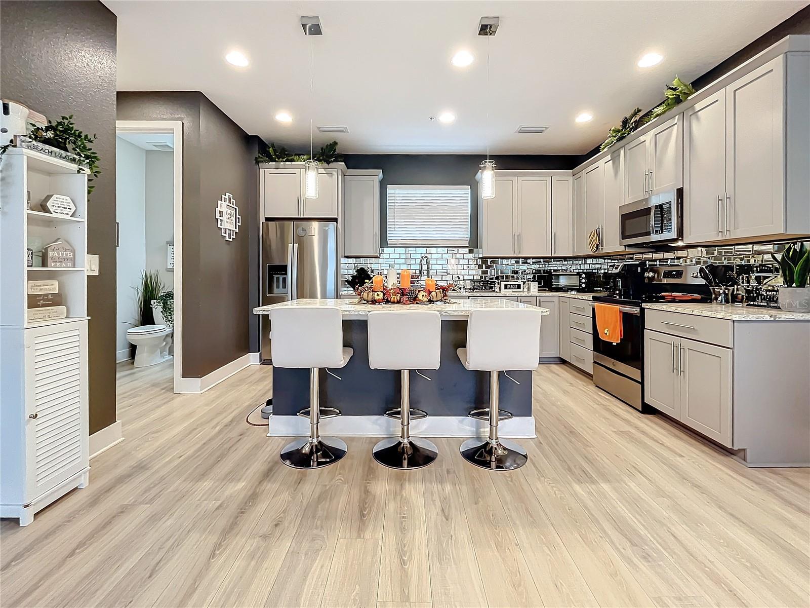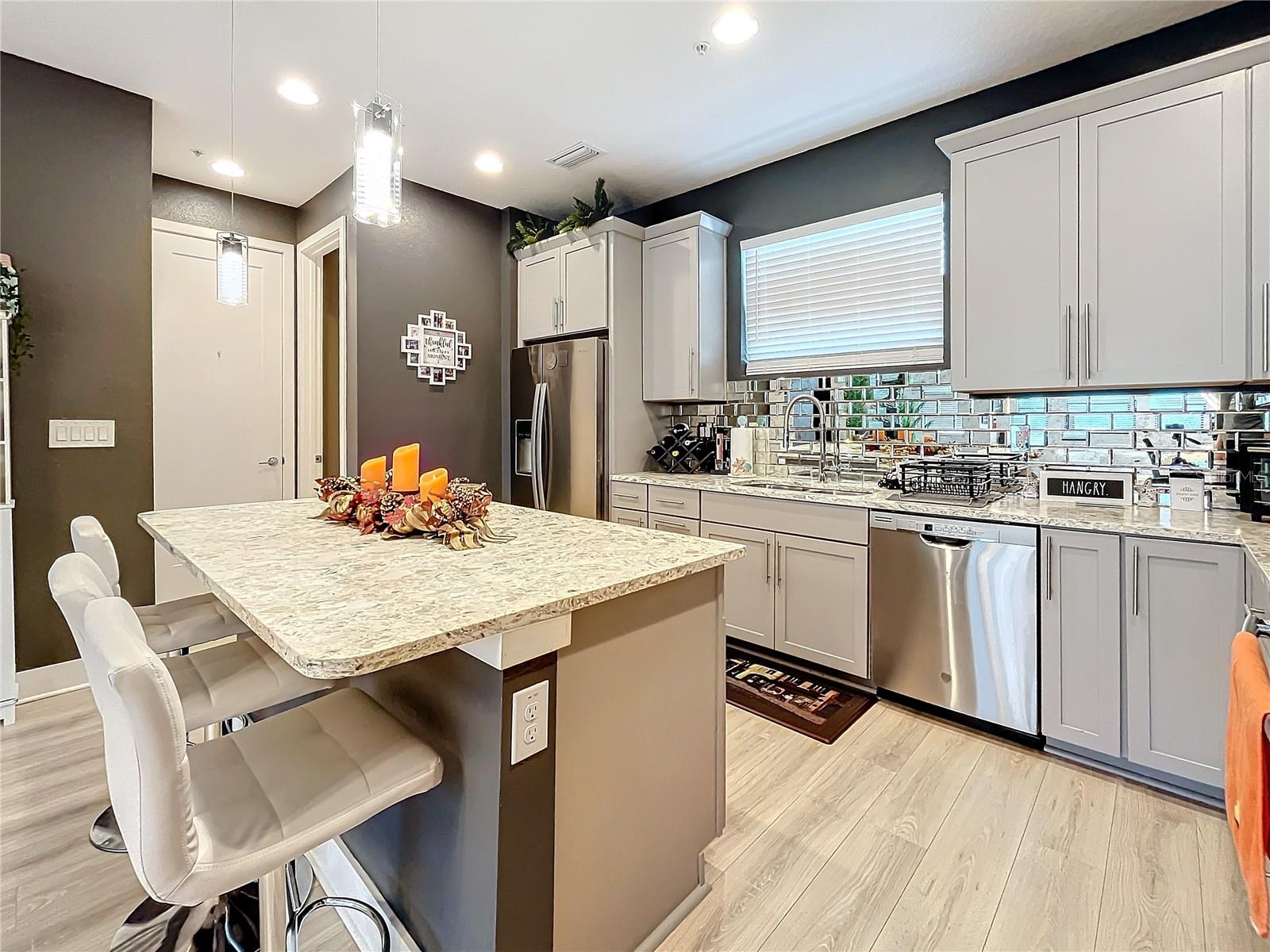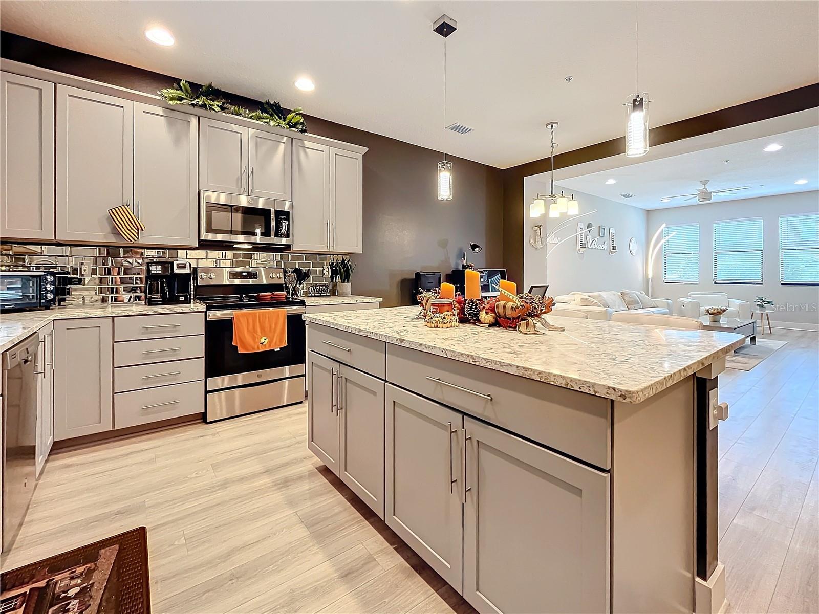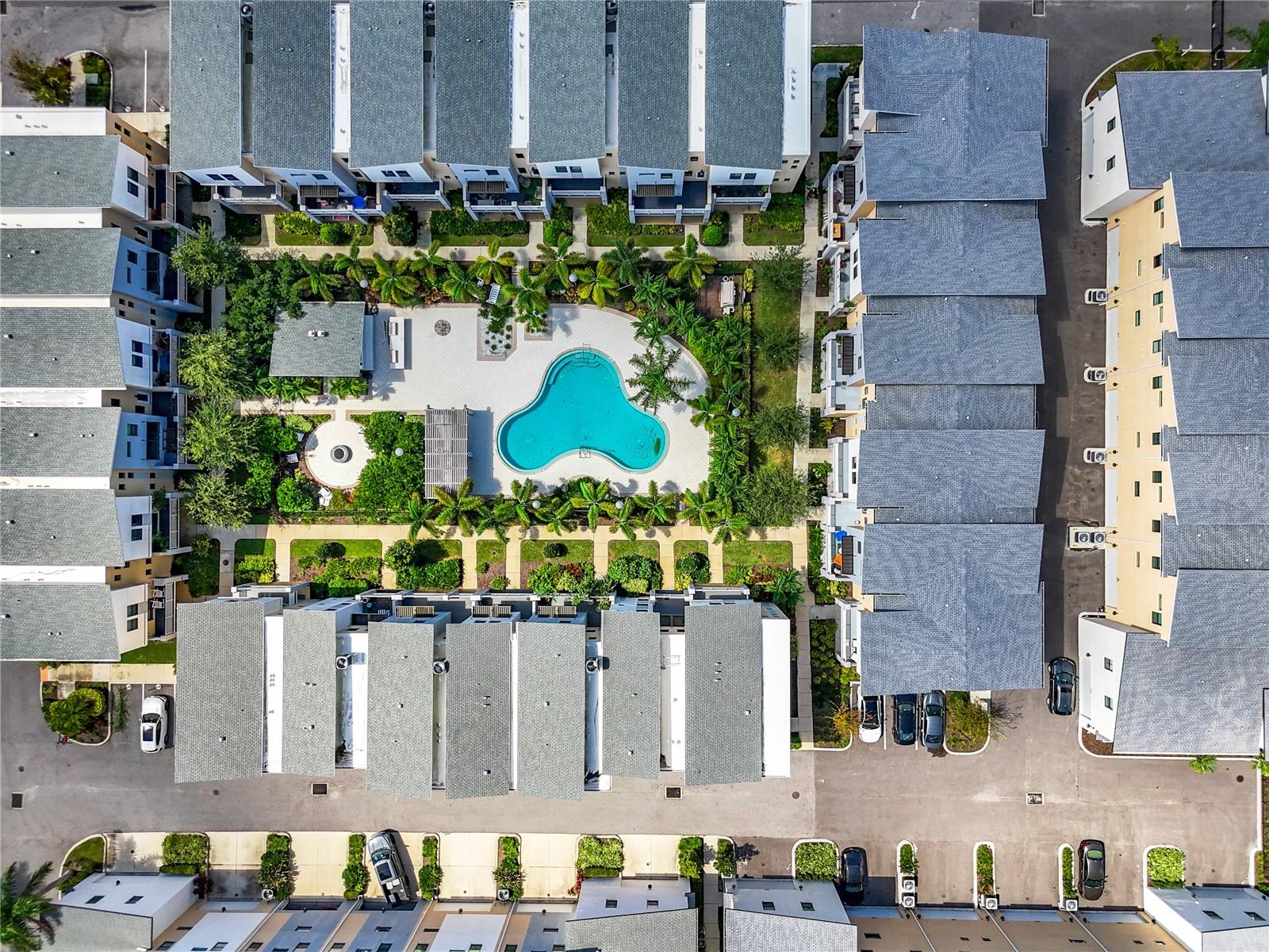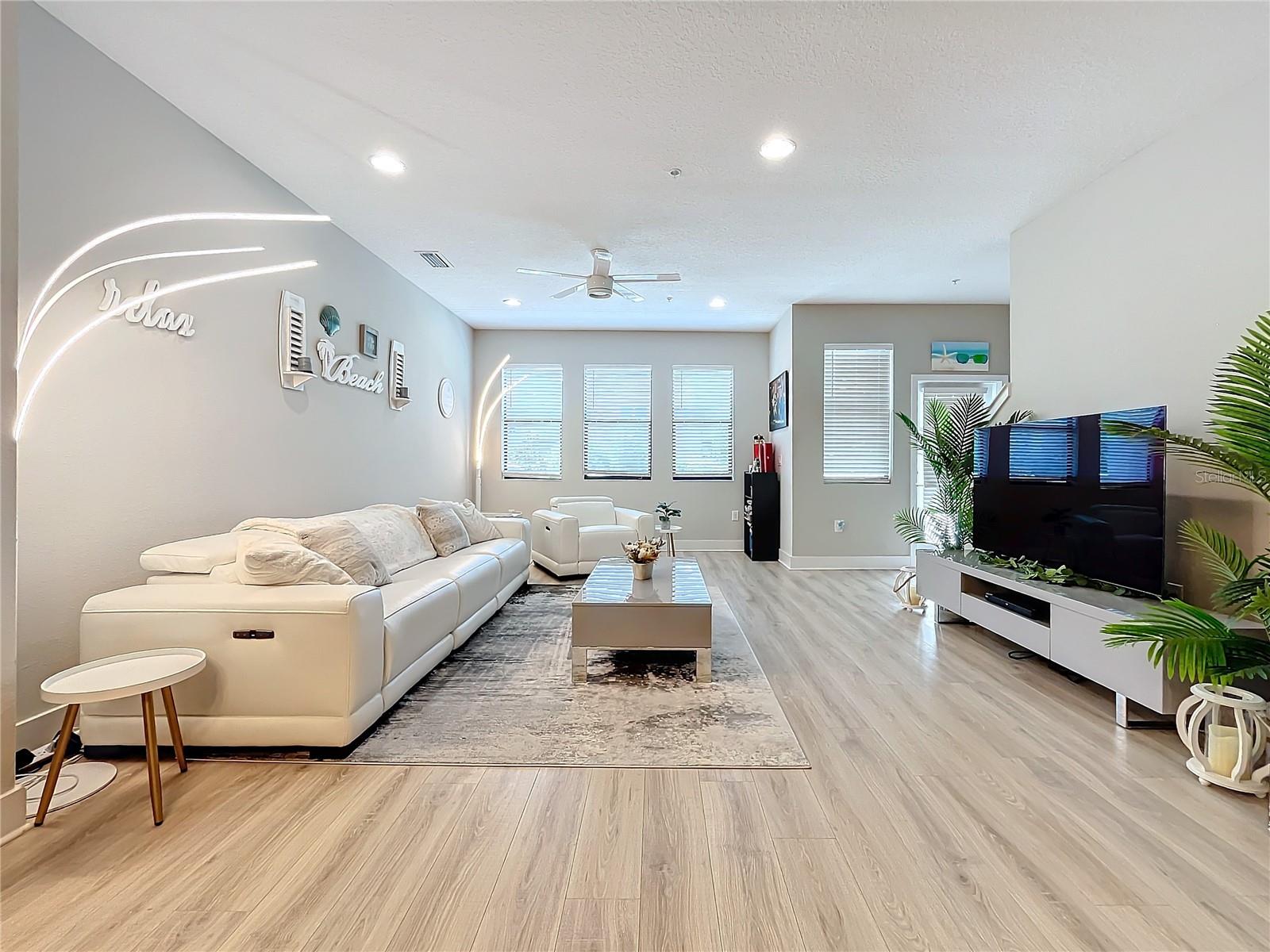 This newer construction Townhome in the N Kenwood area was left high and dry from Hurricanes Helene and Milton. Built in 2018, Uptown Kenwood is a gated community in close proximity to I-275, US 19, Grand Central, Tropicana Field, and downtown St. Petersburg. This very well-maintained unit has three levels of luxurious living that includes a two-car garage, a balcony overlooking the pristine pool area, and the third level has two bedrooms and baths including the primary bedroom with a walk-in closet. There's also a ground floor guest room and full bathroom. Open floorplan on the main living area with a kitchen island, mirrored back-splash, wood cabinets, and light-colored flooring. There are plenty of windows that offer an abundance of natural lighting. Furnishings are negotiable! Don't delay!