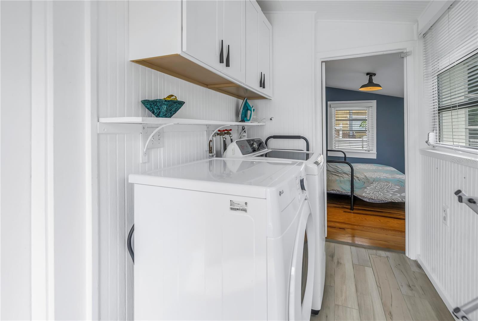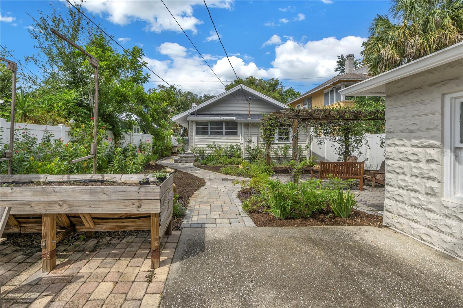 Adorable turnkey bungalow in Old Northeast, just unpack your bags! This high and dry home features three bedrooms, two baths, open living plan and fantastic lot. Enter into a tiled Florida room that makes a great space for an office or reading nook. The living room features original hardwood floors, fireplace and original built-in shelves, and opens to the dining room and kitchen for open concept living. Kitchen was remodeled in 2018 and features a stainless steel appliances including a gas range, and eat at peninsula that maximizes the entertaining space. Master bedroom features hardwood floors, built in closet and remodeled en-suite bathroom with large vanity and walk in shower. Hall bathroom was also remodeled, and guest bedroom also features hardwood floors and great natural light. Laundry room off the back of the kitchen, and third bedroom looks out over the expansive backyard. Native Florida landscaping, pavers, and large pergola make a great space for outdoor entertaining. Property also features a one car garage, with additional parking off alley. Electrical panels were upgraded a few years ago with circuit to plug in generator, or generator could be hooked up to natural gas line as well. Just 4 blocks from downtown St. Petersburg, this property is being sold furnished with all furniture and home wares for seller convenience. This also makes a wonderful investment opportunity in Old NE!