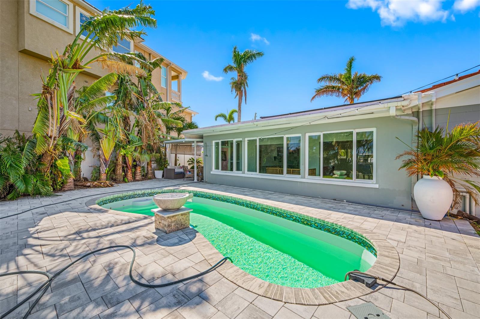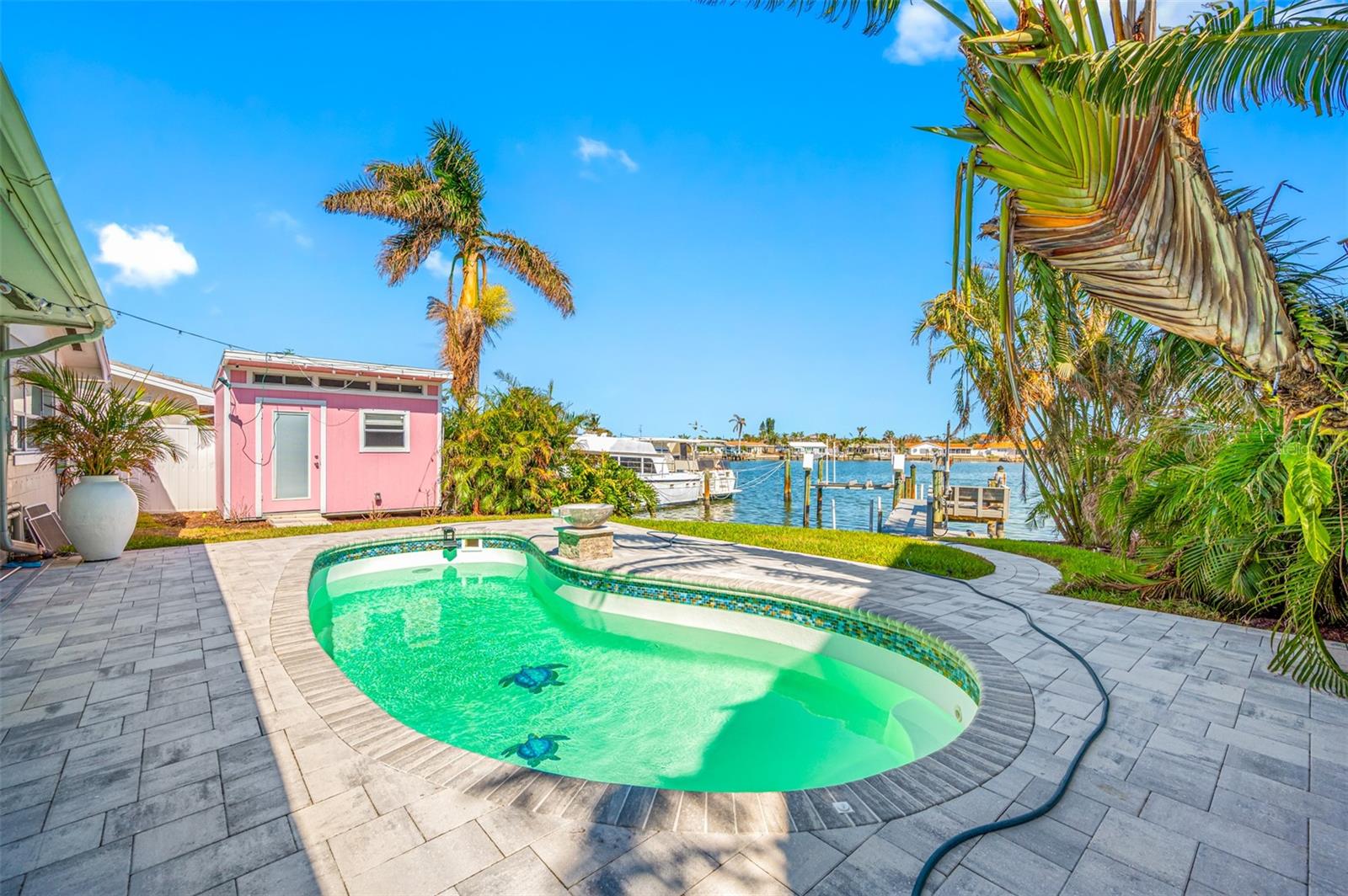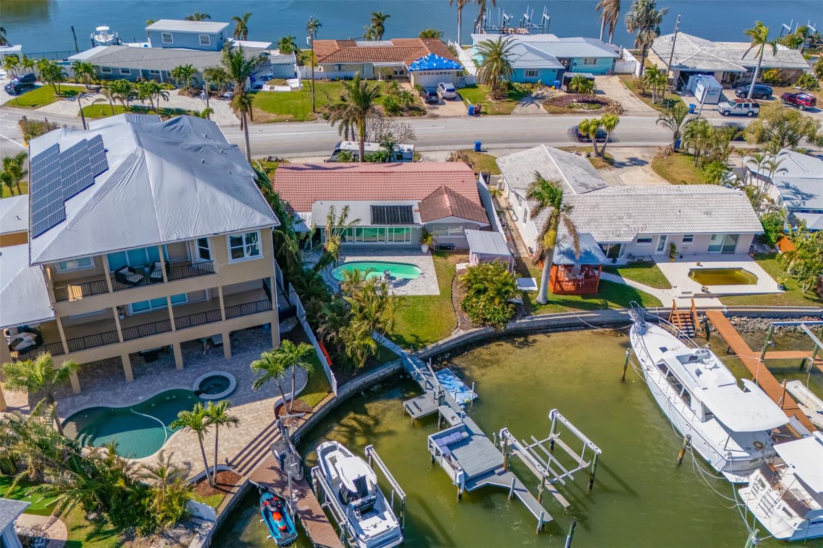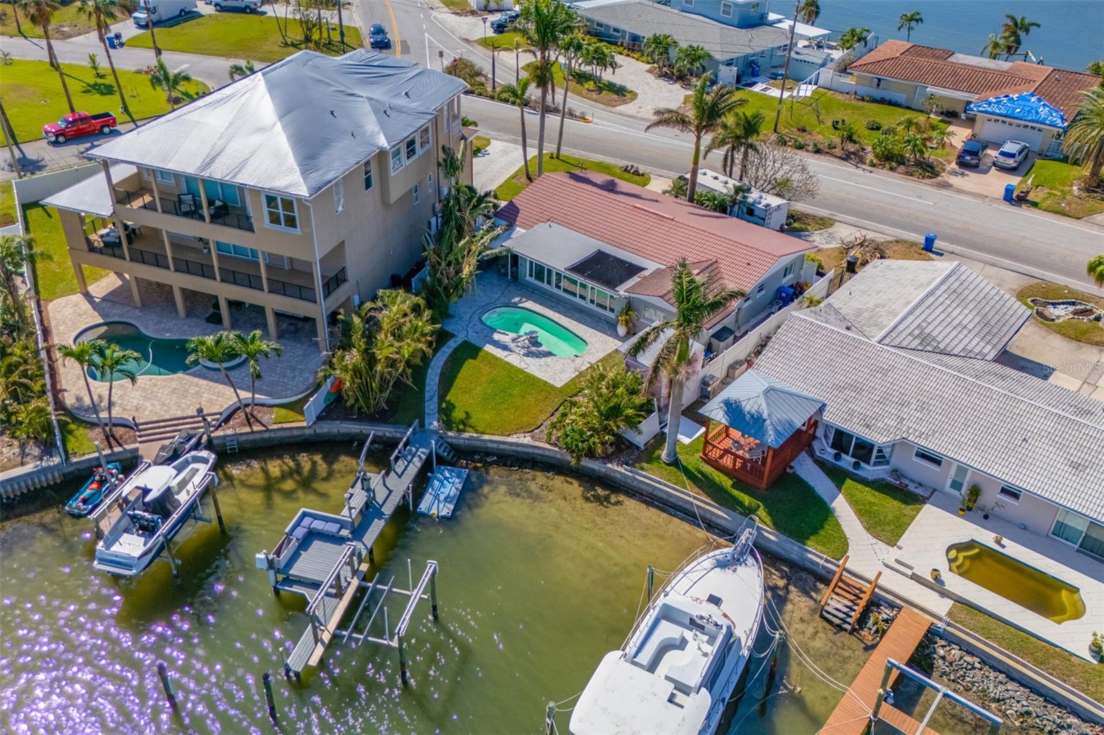 Stunning waterfront Property in Causeway Isle. Welcome to your dream property on coveted South Causeway Isle. This property was flooded during hurricane Helene and is currently not habitable.It was a beautifully designed open floorplan and boasts incredible views of Boca Ciega Bay, offering the perfect backdrop for your Florida Lifestyle. With 2 spacious Bedrooms and 2.5 Baths spread across 1686 sqft this home can be restored and is ideal for both relaxation and entertaining. Step outside to discover your incredible backyard oasis, complete with an inviting pool, elegant paver patio and a well equipped outdoor patio-perfect for hosting gatherings or enjoy quiet evenings by the water. Cozy Separate quest-house. With 55 feet of waterfront you can easily launch your boat, jetski's paddleboards and other toys and explore the nearby John's Pass, making it a paradise for water enthusiasts. The home features a convenient 1 car attached garage , circular driveway and offers a tremendous potential with some TLC. Roof 2021, Windows 2021, , 10,000 lbs boatlift and beautiful dock. While it did have water intrusion from Hurricane Helene and is being sold as-is (wet drywall has been removed the possibilities are endless. Don't miss this rare opportunity to own a piece of Paradise where the Florida Dream awaits. Embrace the vibrant lifestyle this area has to offer, your waterfront sanctuary is just a showing away.