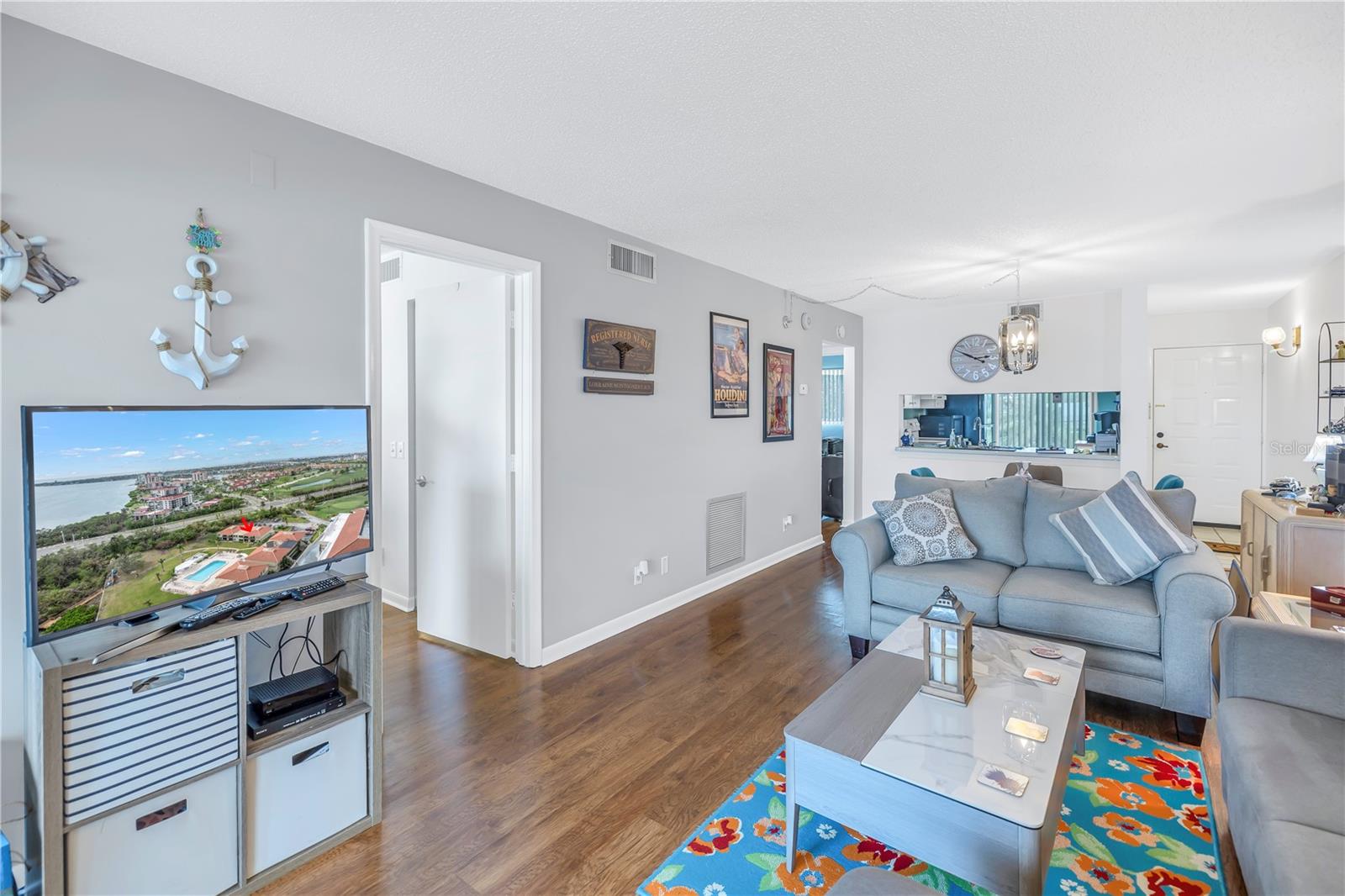 Step into your own slice of paradise at 6382 Palma Del Mar Blvd S #222. This tastefully decorated condo comes fully furnished and features 2-bedrooms, 2 baths, breathtaking water, pool and Sunshine Skyway views all nestled within the highly sought-after Palma Del Mar community. NOTE: This unit did not flood during either hurricane Helene or Milton. The kitchen offers all the modern conveniences and is ready for your own personal touch. Both bathrooms have been thoughtfully updated with stylish finishes. An in-unit washer/dryer combo adds convenience to your daily life. The contemporary furnishings are in practically brand-new condition and offer neutral colors. The master suite is a true retreat, offering direct access to the condo’s private balcony allowing for the perfect spot to embrace Florida’s magnificent coastal lifestyle. Just sit back, relax with your favorite beverage and watch the dolphins play and boats glide by. The open-concept layout of the dining and living areas makes this condo ideal for entertaining, with easy flow between spaces and plenty of room for gatherings. Palma Del Mar offers an array of resort-style amenities that further enhance the luxury lifestyle. Residents enjoy access to a heated pool and spa, a fishing pier, kayak and paddleboard storage, bike storage, and a community recreation room—just steps from your front door. A dedicated parking space, along with ample guest parking, ensures convenience for both you and your visitors. Perfectly positioned just 10 minutes from downtown St. Petersburg, 5 minutes to St. Pete Beach, and the serene beauty of Fort De Soto on Tierra Verde, this condo places you in the heart of Florida’s most coveted coastal destinations. Whether you’re seeking world-class beaches, vibrant nightlife, or cultural attractions, everything is within easy reach. Less than ¼ mile away, The Isla Del Sol Yacht & Country Club offers access to exclusive golf, tennis, social events, and marina facilities, taking your lifestyle to the next level. This condo offers the ideal blend of luxury, comfort, and convenience in one of the most desirable locations on Florida’s Gulf Coast—don’t miss your chance to experience all that Palma Del Mar has to offer.
