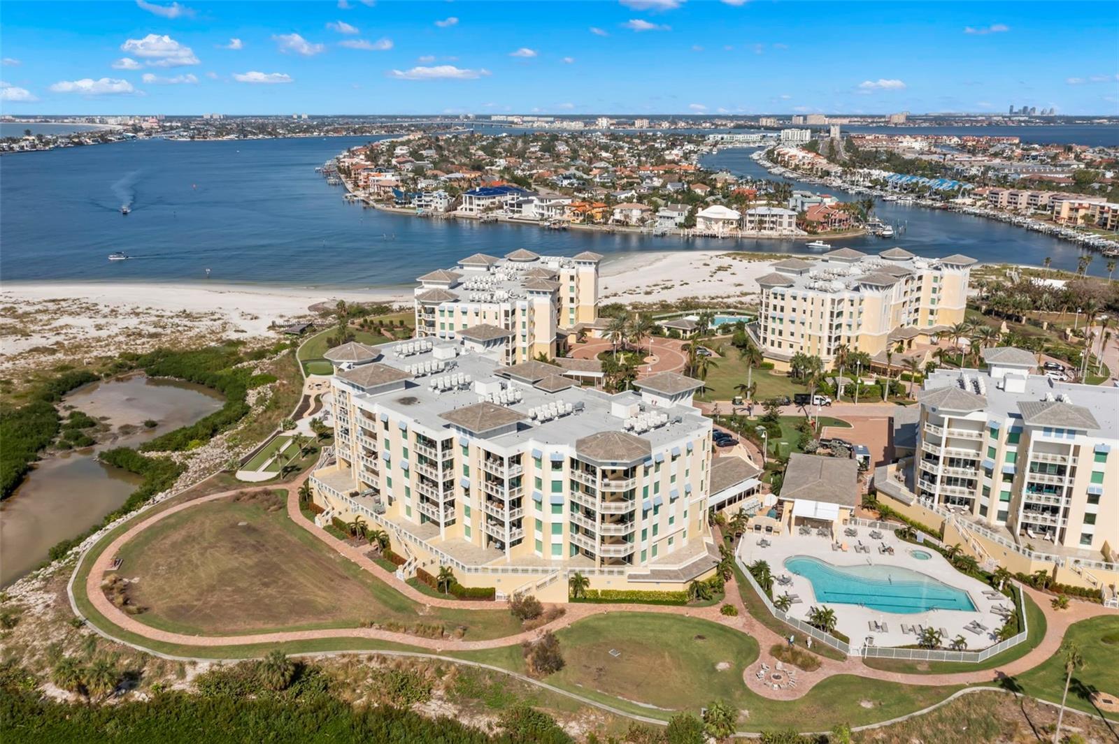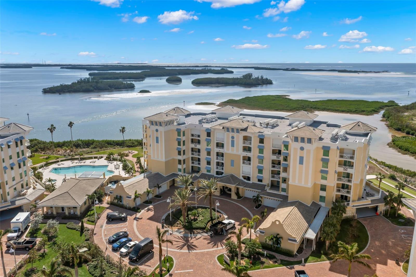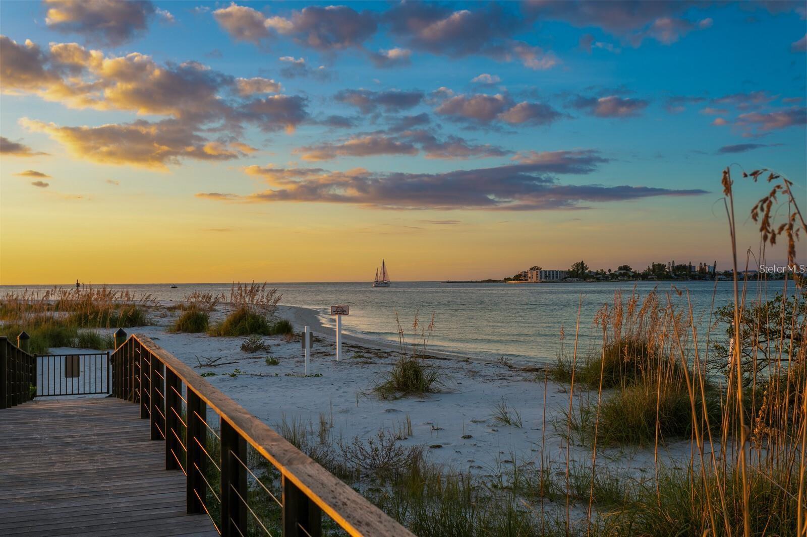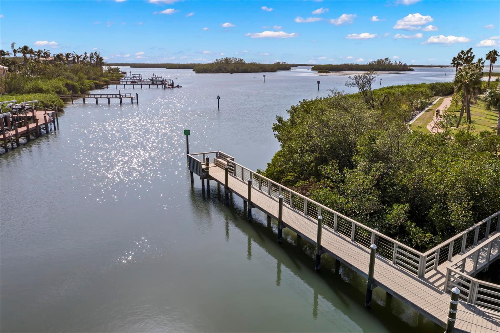 Welcome to Sunset Pointe, where each day is painted with stunning sunsets, dolphin sightings, gentle breezes, and sparkling blue water. Located on the deed-restricted island of Tierra Verde, this exceptional home offers an unparalleled luxurious lifestyle that combines natural beauty with the comfort of modern living. From the moment you step inside, you'll notice the commitment to quality, premium finishes and luxurious furnishings. This home is a coastal retreat, offering a timeless blend of sophistication and relaxation. The attention to detail in design and mix of high-quality furnishings make it a standout property for those seeking a stylish and comfortable living space. The kitchen boasts state-of-the-art appliances, quartz countertops, trey ceilings, and custom cabinetry w/under cabinet lighting, making it a culinary haven for any chef. The open floor plan creates a seamless flow, perfect for entertaining guests who will never want to leave. The owner's retreat overlooks the clear blue water, has his & her custom walk-in closets, and features an en suite luxurious bath with dual sinks and a glass shower enclosure with bench and rain shower. Florida is all about outdoor living space however, and this home's balcony provides a front-row seat to the captivating maritime activity on the water. Sunsets and happy hour will become an afternoon ritual, and the owners spared no expense in crafting a custom bar to create your drink of choice. Not only is this the largest unit available on the inside, but the outside as well. The 2 level units offer the largest balconies and are the only units with stairs leading down to your private beach, dog park, dock, boardwalk, firepit, pool/spa, bocce courts, putting green, and outdoor kitchen. Tierra Verde is ideally situated just minutes away from I-275, Pass a Grille, the Skyway Bridge, renowned Ft DeSoto Park, and the sugary sands of Tripadvisor's #1 beach in the country, St. Pete Beach. Downtown St. Petersburg is just a 15-minute drive and offers museums, popular restaurants, luxury shopping, an Indy Car Race, the Tampa Bay Rays, and Rowdies. Million-dollar views, remote-control Hunter Douglas blinds, a garage with a charging station, and a semi-private elevator..... all make this home a must see!