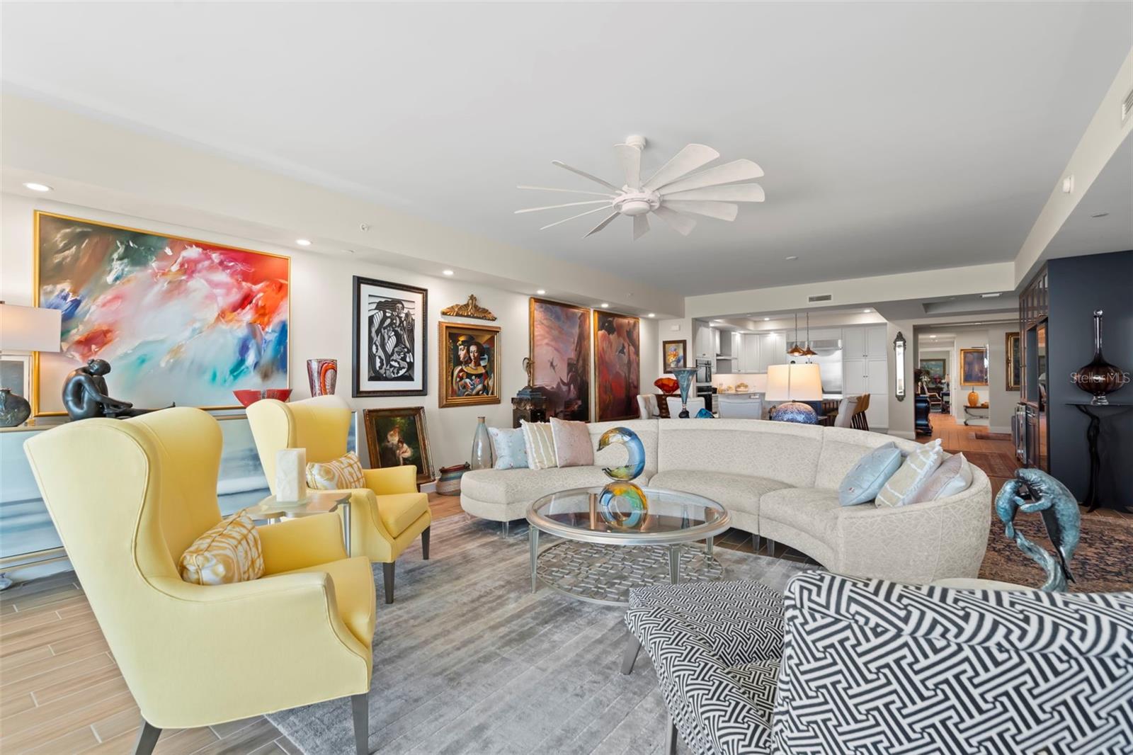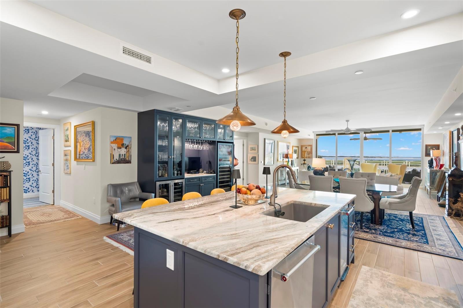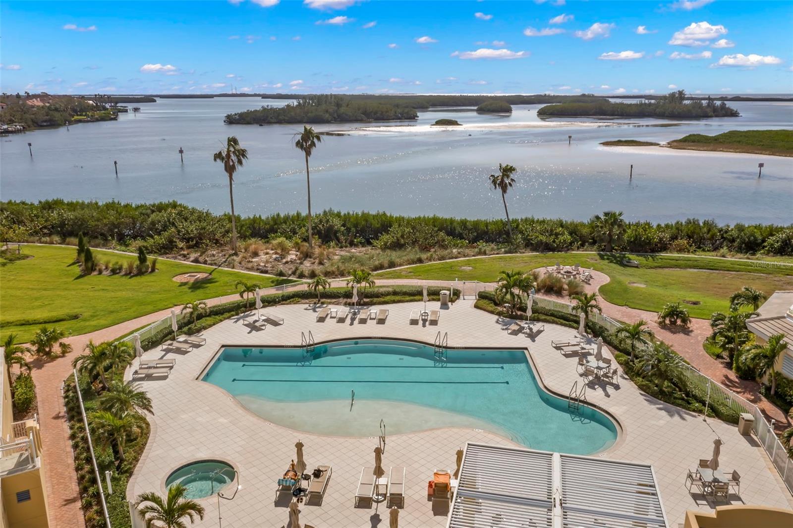 Welcome to Sunset Pointe, where each day is painted with stunning sunsets, dolphin sightings, gentle breezes, and sparkling blue water. Located on the deed-restricted island of Tierra Verde, this exceptional home offers an unparalleled luxurious lifestyle that combines natural beauty with the comfort of modern living. From the moment you step inside, you'll notice the commitment to quality, premium finishes and luxurious furnishings. This home is a coastal retreat, offering a timeless blend of sophistication and relaxation. The attention to detail in design and mix of high-quality furnishings make it a standout property for those seeking a stylish and comfortable living space. The kitchen boasts state-of-the-art appliances, quartz countertops, trey ceilings, and custom cabinetry w/under cabinet lighting, making it a culinary haven for any chef. The open floor plan creates a seamless flow, perfect for entertaining guests who will never want to leave. The owner's retreat overlooks the clear blue water, has his & her custom walk-in closets, and features an en suite luxurious bath with dual sinks and a glass shower enclosure with bench and rain shower. Florida is all about outdoor living space however, and this home's balcony provides a front-row seat to the captivating maritime activity on the water. Sunsets and happy hour will become an afternoon ritual, and the owners spared no expense in crafting a custom bar to create your drink of choice. Not only is this the largest unit available on the inside, but the outside as well. The 2 level units offer the largest balconies and are the only units with stairs leading down to your private beach, dog park, dock, boardwalk, firepit, pool/spa, bocce courts, putting green, and outdoor kitchen. Tierra Verde is ideally situated just minutes away from I-275, Pass a Grille, the Skyway Bridge, renowned Ft DeSoto Park, and the sugary sands of Tripadvisor's #1 beach in the country, St. Pete Beach. Downtown St. Petersburg is just a 15-minute drive and offers museums, popular restaurants, luxury shopping, an Indy Car Race, the Tampa Bay Rays, and Rowdies. Million-dollar views, remote-control Hunter Douglas blinds, a garage with a charging station, and a semi-private elevator..... all make this home a must see!