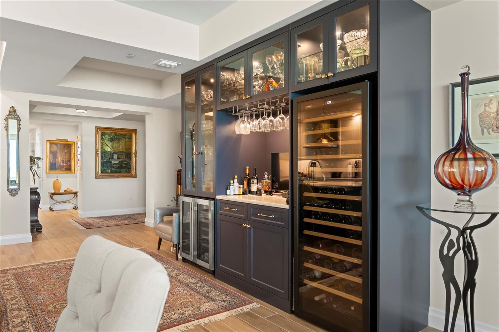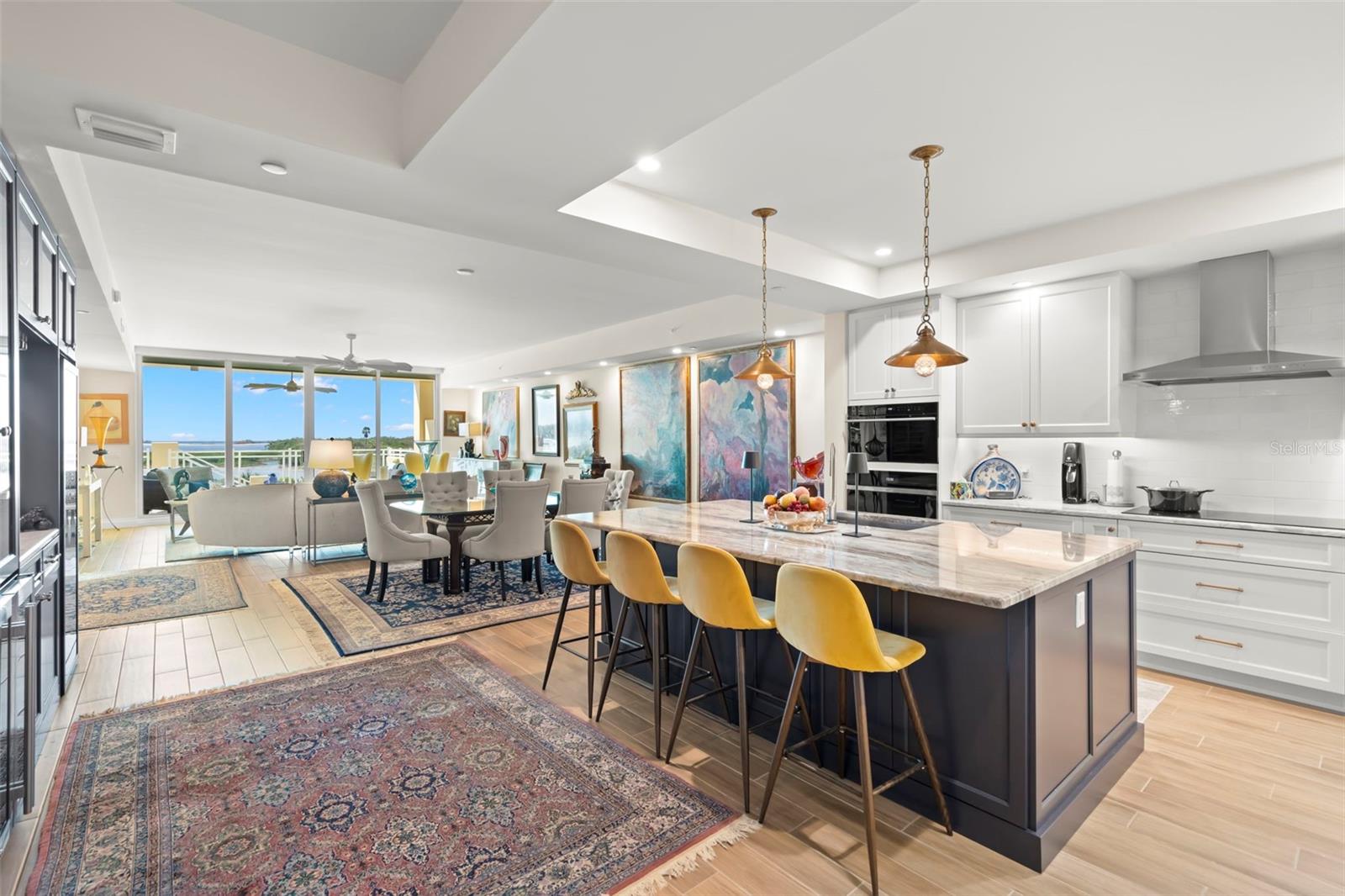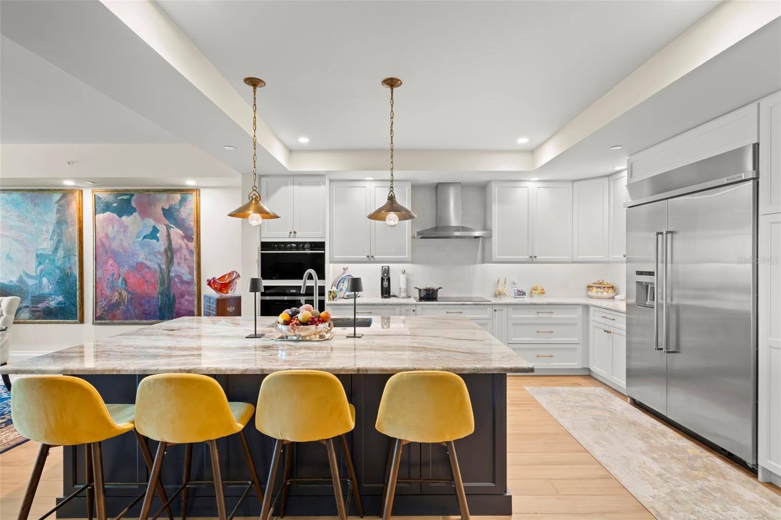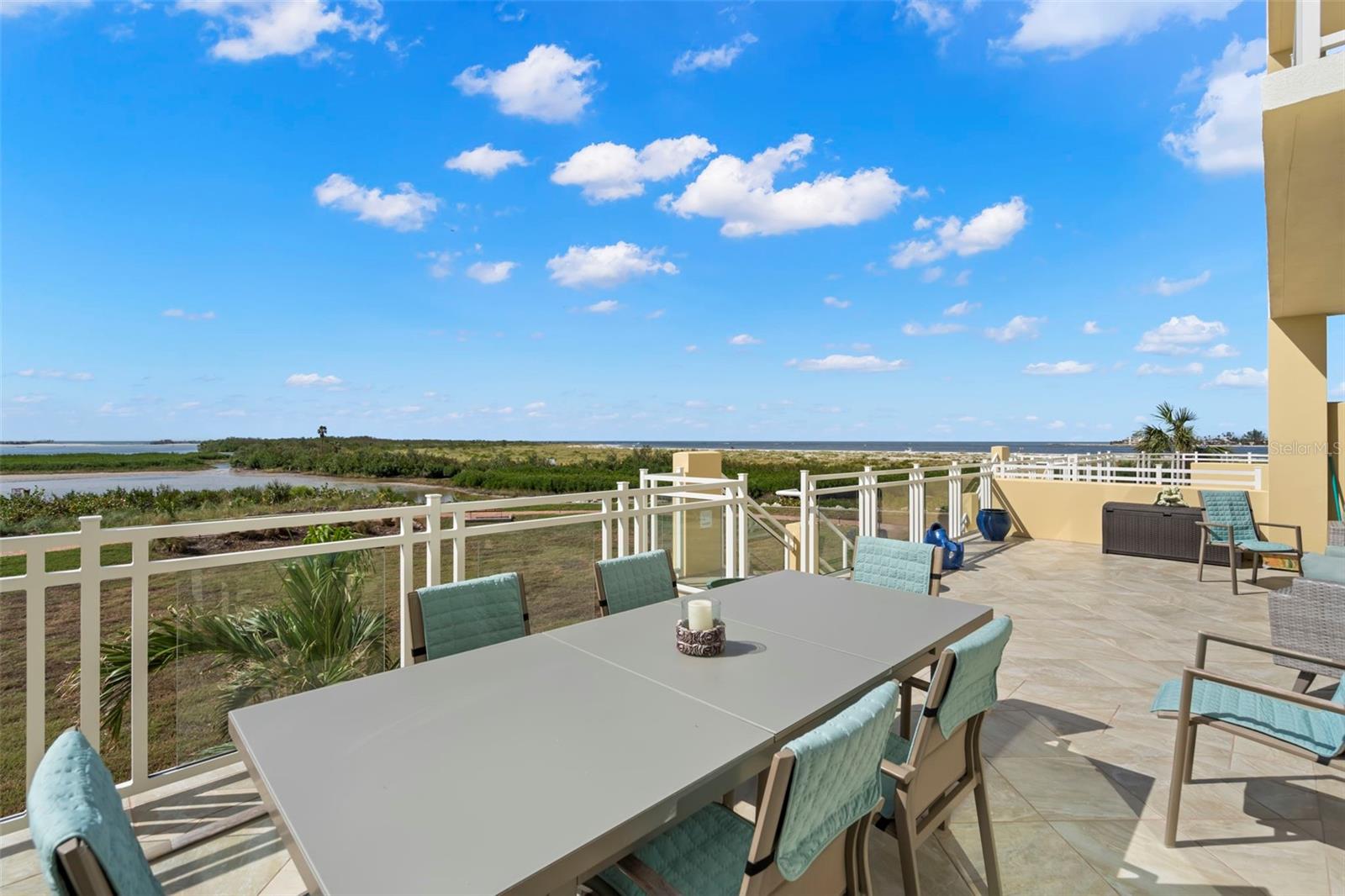 Welcome to Sunset Pointe, where each day is painted with stunning sunsets, dolphin sightings, gentle breezes, and sparkling blue water. Located on the deed-restricted island of Tierra Verde, this exceptional home offers an unparalleled luxurious lifestyle that combines natural beauty with the comfort of modern living. From the moment you step inside, you'll notice the commitment to quality, premium finishes and luxurious furnishings. This home is a coastal retreat, offering a timeless blend of sophistication and relaxation. The attention to detail in design and mix of high-quality furnishings make it a standout property for those seeking a stylish and comfortable living space. The kitchen boasts state-of-the-art appliances, quartz countertops, trey ceilings, and custom cabinetry w/under cabinet lighting, making it a culinary haven for any chef. The open floor plan creates a seamless flow, perfect for entertaining guests who will never want to leave. The owner's retreat overlooks the clear blue water, has his & her custom walk-in closets, and features an en suite luxurious bath with dual sinks and a glass shower enclosure with bench and rain shower. Florida is all about outdoor living space however, and this home's balcony provides a front-row seat to the captivating maritime activity on the water. Sunsets and happy hour will become an afternoon ritual, and the owners spared no expense in crafting a custom bar to create your drink of choice. Not only is this the largest unit available on the inside, but the outside as well. The 2 level units offer the largest balconies and are the only units with stairs leading down to your private beach, dog park, dock, boardwalk, firepit, pool/spa, bocce courts, putting green, and outdoor kitchen. Tierra Verde is ideally situated just minutes away from I-275, Pass a Grille, the Skyway Bridge, renowned Ft DeSoto Park, and the sugary sands of Tripadvisor's #1 beach in the country, St. Pete Beach. Downtown St. Petersburg is just a 15-minute drive and offers museums, popular restaurants, luxury shopping, an Indy Car Race, the Tampa Bay Rays, and Rowdies. Million-dollar views, remote-control Hunter Douglas blinds, a garage with a charging station, and a semi-private elevator..... all make this home a must see!