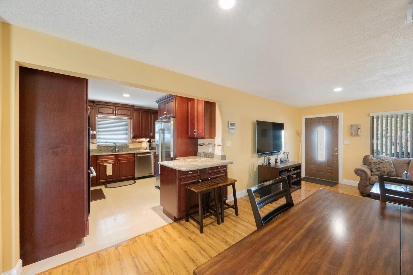 Stunning, convenient with a true sense of home and pride of ownership! This spectacular 3-bedroom, 2-bath, 1-car garage home is nestled in the established community of Orange Estates. As you approach this property you will be enticed by the manicured landscaping, large paver circular drive and a cozy front porch with an elevated wood accent on the ceiling that is sure to impress. Once you step foot inside, you will be captivated by the Australian Cypress Flooring that flows throughout the open concept, recessed lighting and a highly desired split floor plan. Prepare for the ultimate dinner party while admiring the thoughtfully renovated Kitchen with Granite Countertops, Cherry Armstrong Soft-Close Cabinetry, Marble and Glass Backsplash, Stainless Steel Jenn-Air Appliances (Including a Cooktop and Double Oven) and a Breakfast Bar with Seating for Two. Before settling down for dinner, grab a cocktail and mingle in the living room/dining room combo or head out to the expansive backyard to enjoy the fresh air, with ample space for a pool. Finally, it’s time to relax and rejuvenate in the luxurious Primary Suite with Wood-Look Tile Flooring, High Ceilings, Crown Molding, a Walk-In Closet and Large Primary Ensuite Featuring; Dual Sinks, Granite Countertops, a Jetted Tub, Separate Walk-In Shower with Marble/Granite Surround and Multiple Shower Heads. This space will truly melt all of your stress away! Additional features include; Updated Second Bath with Single Vanity, Granite Countertops and a Walk-In Shower with Travertine Tile Surround. Indoor Laundry Room located in the Primary Suite, NEW Interior Paint, Recessed Lighting Throughout, Low E Windows, Custom Window Treatments, 19 Seer HVAC (2021), NEW Metal Roof with a Transferrable Labor and Material Warranty (2024), Water Heater (2011). Located within minutes of local beaches, shops, your new favorite restaurants, Bay Pines and so much more! Schedule your private tour today and CHECK OUT THE 3D MATTERPORT TOUR!
