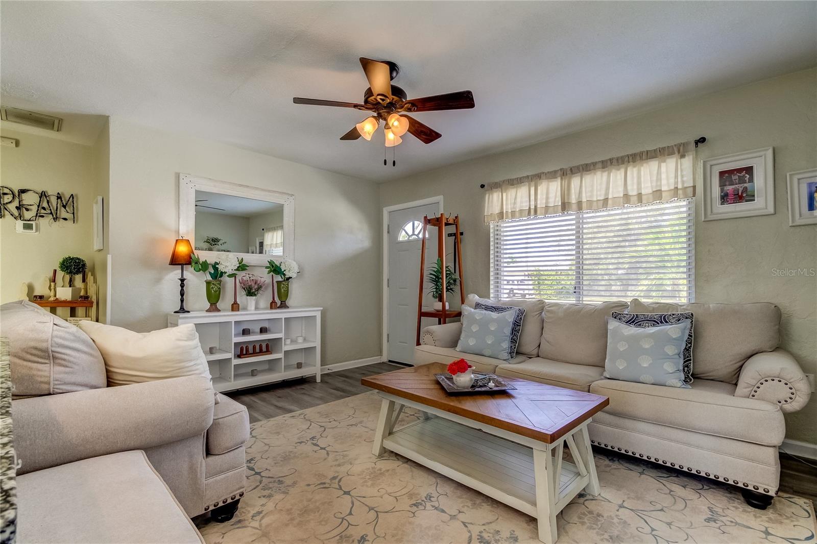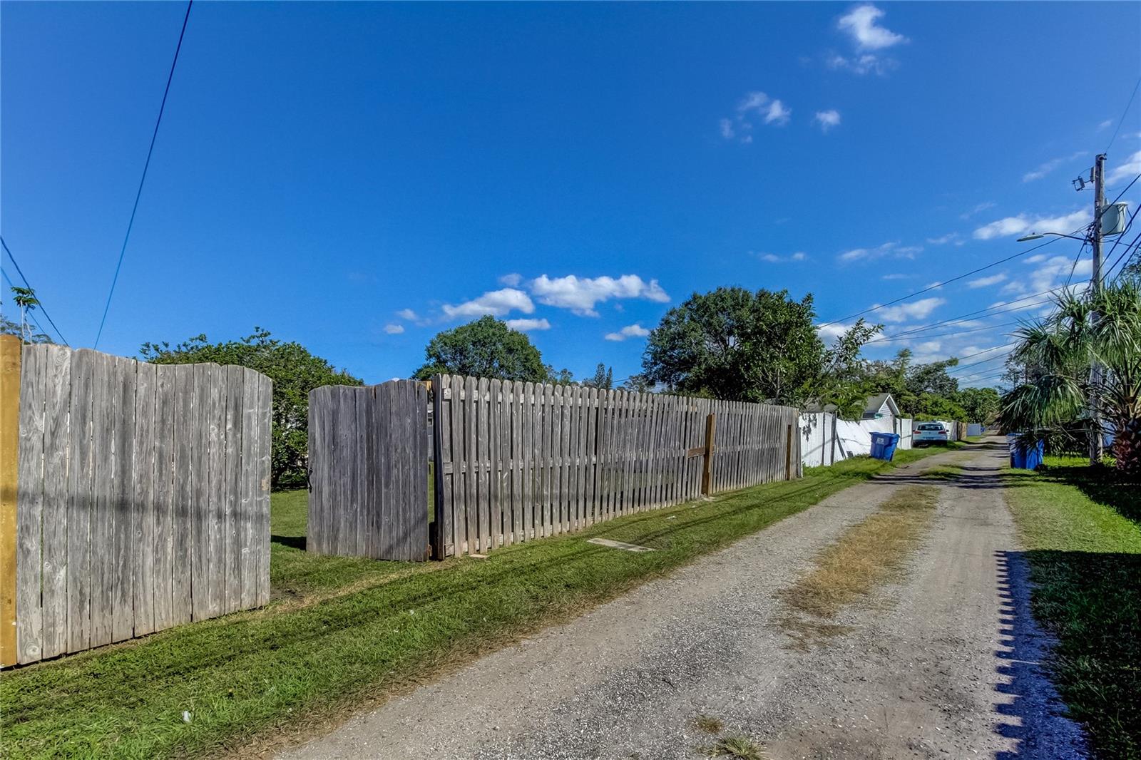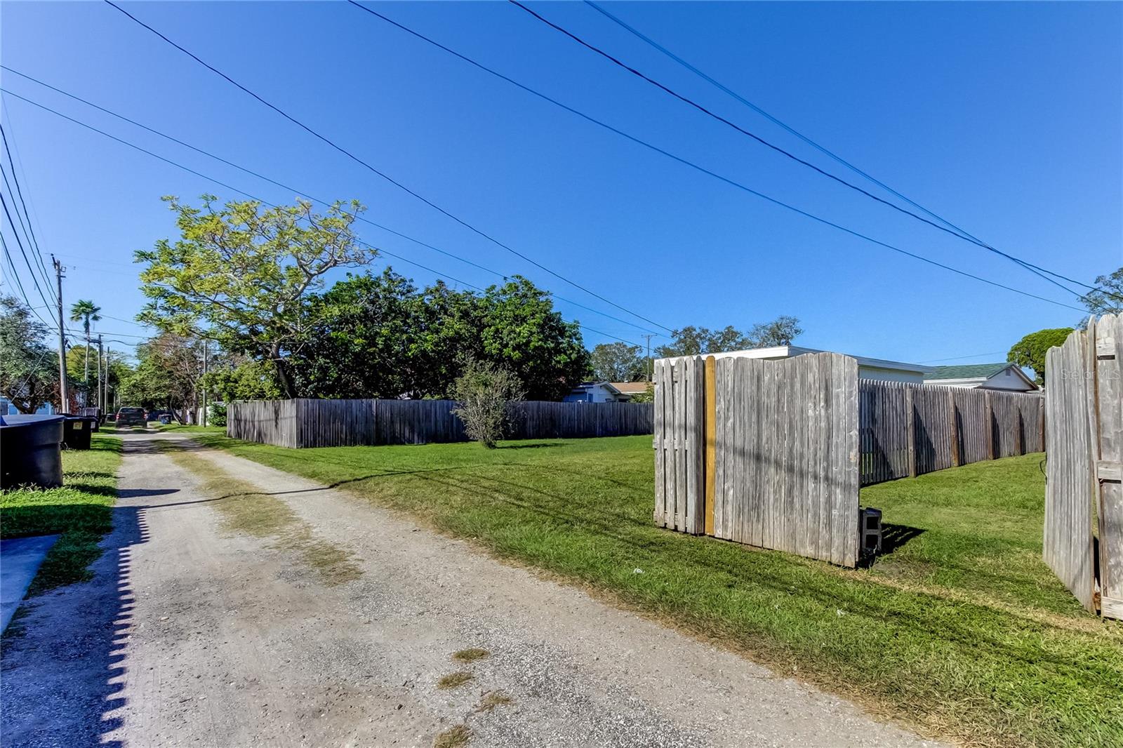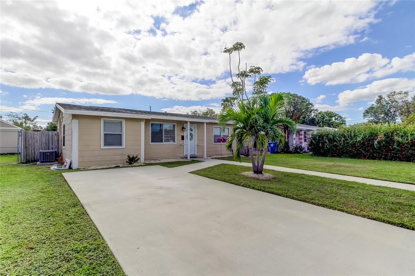 Charming single family home in NO-FLOOD ZONE X !!! The Curb Appeal will draw you in with the well maintained landscape & cute palm trees. Walk in to a welcoming living room and remodeled kitchen in an open floorplan with wood laminate flooring. The kitchen boasts newer cabinets, rich granite counters, stainless steel appliances, backsplash, pendant lights and looks onto the large back yard. On the right is a HUGE master bedroom (was 2 small bedrooms) with plenty of space to add an en-suite master bathroom. The adjacent laundry closet provides access to plumbing. The bathroom features a tub/shower, updated vanity, mirror, lighting, toilet and hardware. Split floor plan. Also, a light & bright 2nd bedroom, plus bonus/Florida room that leads to an open patio and oversized fenced back yard. The yard has SO much potential!! There is alley access and a gate in the rear allowing for RV or boat parking and space for a pool, garage, storage unit, etc. Parking pad was added to accommodate 2 cars with a walk way to the front door. The location is highly desirable, in close proximity to I-275, 4th Street with so many dining options, world-class beaches, airports, medical, major league sports, nightlife, downtown St. Petersburg and so much more! Updates also include electrical service upgrade, internal water supply plumbing, exterior doors, interior and exterior paint, and fencing for your enclosed backyard.. Brand new AC in July of 2023. Roof was replaced in 2015. Being sold furnished - if you are looking for a Coastal Oasis while you recover from the hurricanes, consider this for your full-time residence and then a rental when you are ready to move on. High & dry - there was no flooding in this area & internet never went out for either hurricane. Call today for a private showing - you won't be disappointed!