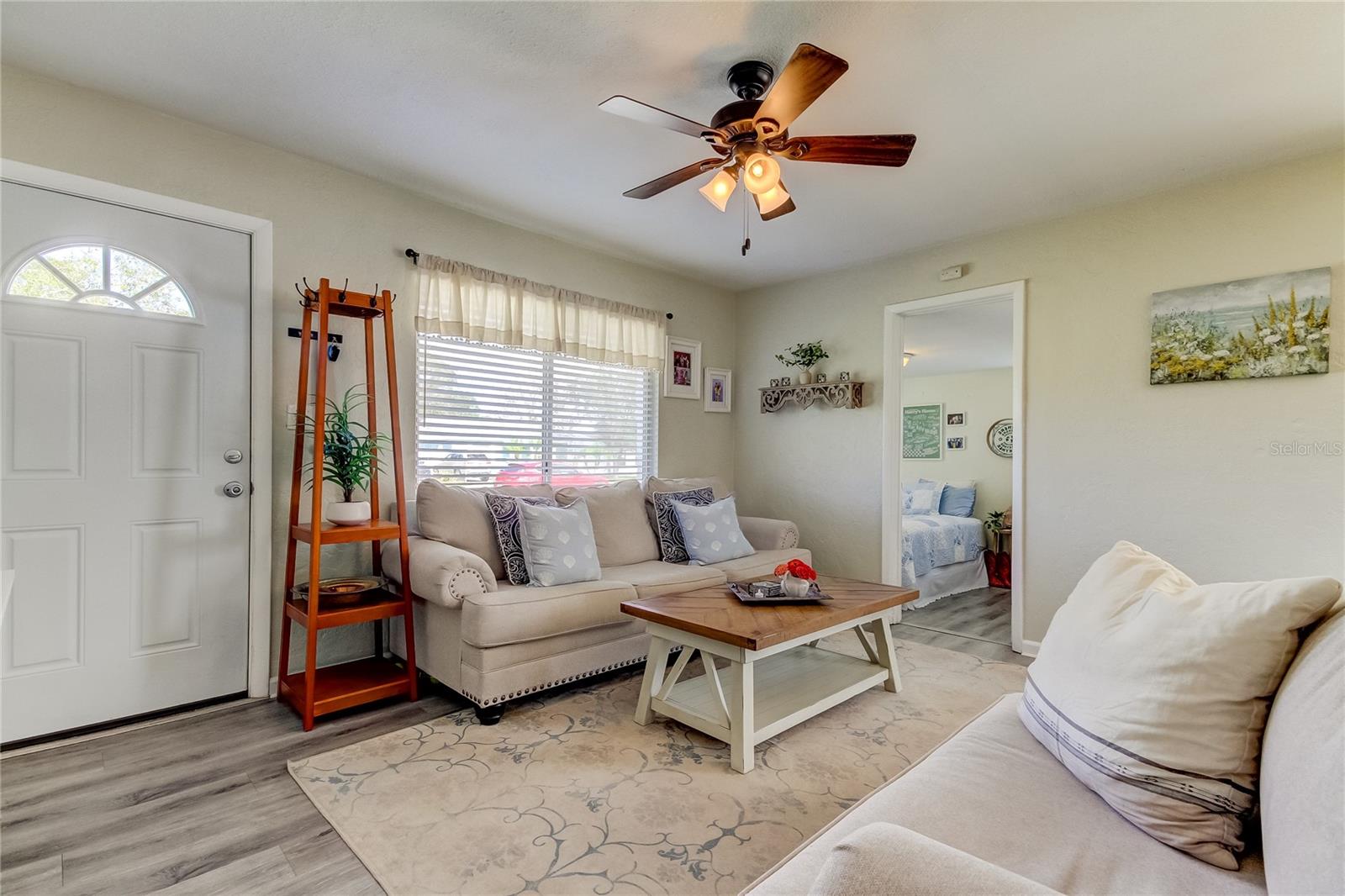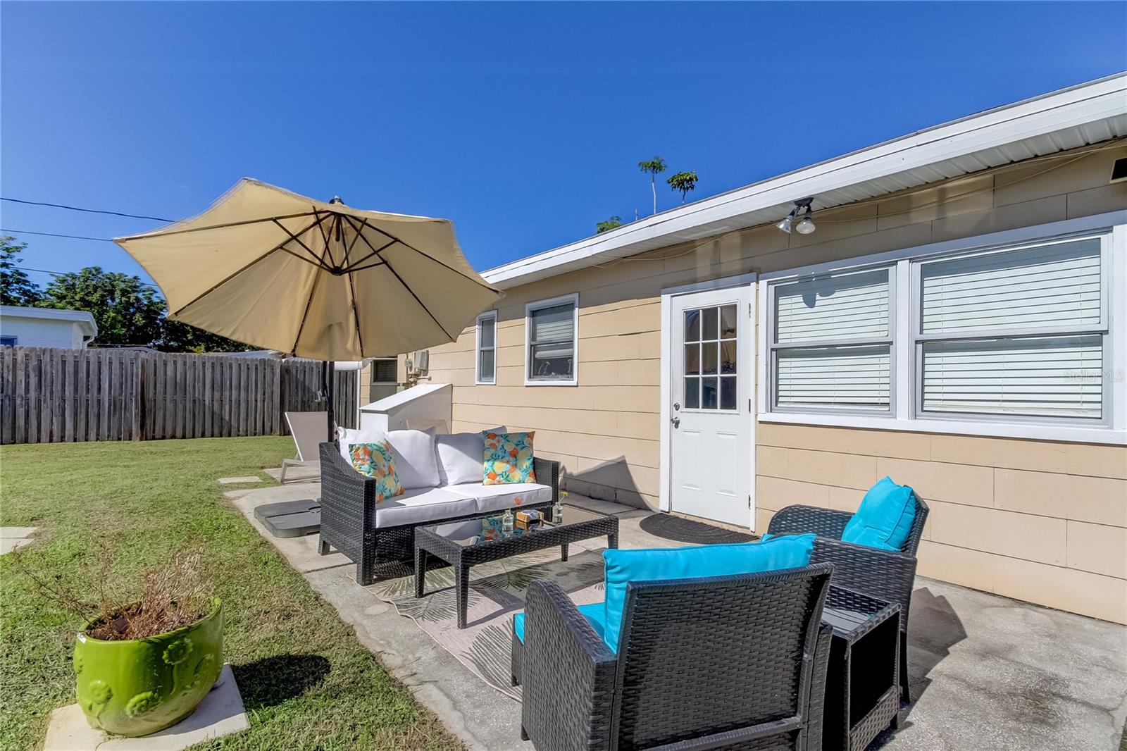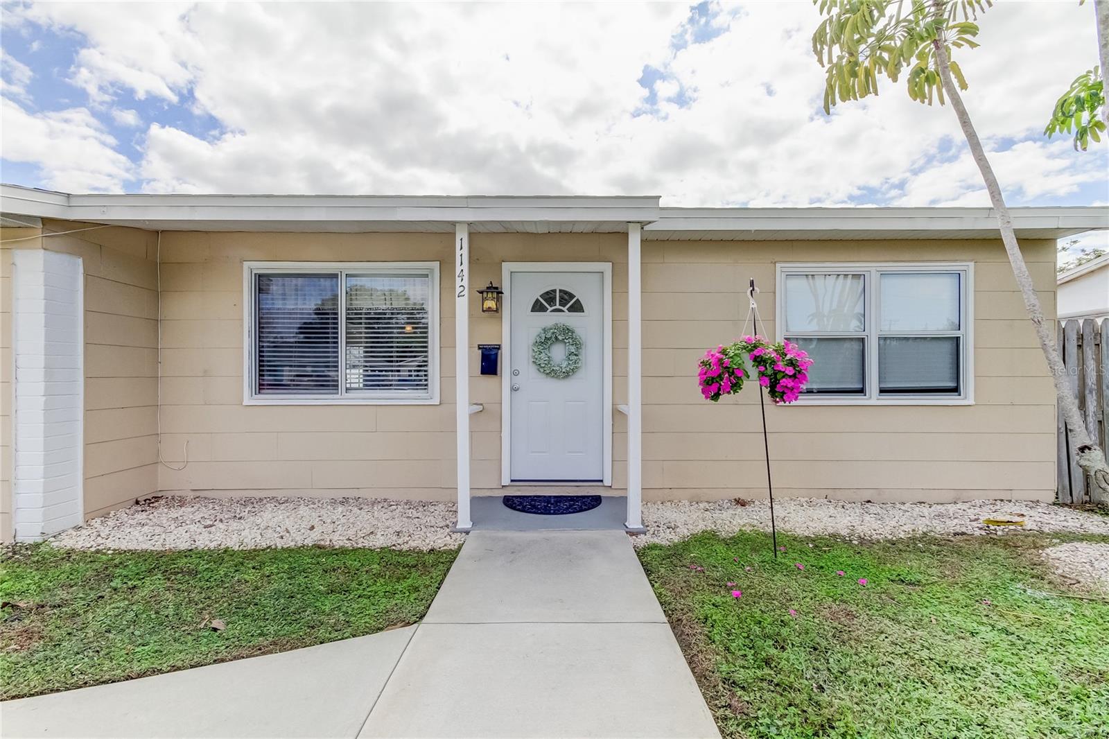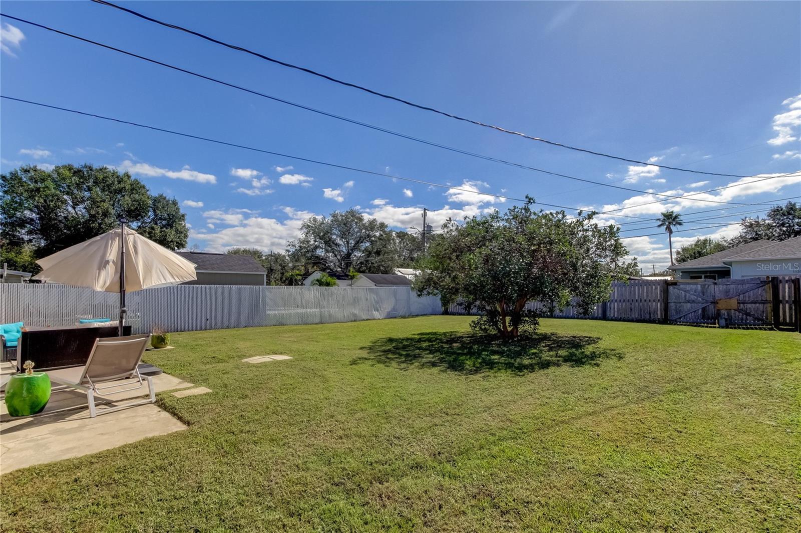 Charming single family home in NO-FLOOD ZONE X !!! The Curb Appeal will draw you in with the well maintained landscape & cute palm trees. Walk in to a welcoming living room and remodeled kitchen in an open floorplan with wood laminate flooring. The kitchen boasts newer cabinets, rich granite counters, stainless steel appliances, backsplash, pendant lights and looks onto the large back yard. On the right is a HUGE master bedroom (was 2 small bedrooms) with plenty of space to add an en-suite master bathroom. The adjacent laundry closet provides access to plumbing. The bathroom features a tub/shower, updated vanity, mirror, lighting, toilet and hardware. Split floor plan. Also, a light & bright 2nd bedroom, plus bonus/Florida room that leads to an open patio and oversized fenced back yard. The yard has SO much potential!! There is alley access and a gate in the rear allowing for RV or boat parking and space for a pool, garage, storage unit, etc. Parking pad was added to accommodate 2 cars with a walk way to the front door. The location is highly desirable, in close proximity to I-275, 4th Street with so many dining options, world-class beaches, airports, medical, major league sports, nightlife, downtown St. Petersburg and so much more! Updates also include electrical service upgrade, internal water supply plumbing, exterior doors, interior and exterior paint, and fencing for your enclosed backyard.. Brand new AC in July of 2023. Roof was replaced in 2015. Being sold furnished - if you are looking for a Coastal Oasis while you recover from the hurricanes, consider this for your full-time residence and then a rental when you are ready to move on. High & dry - there was no flooding in this area & internet never went out for either hurricane. Call today for a private showing - you won't be disappointed!