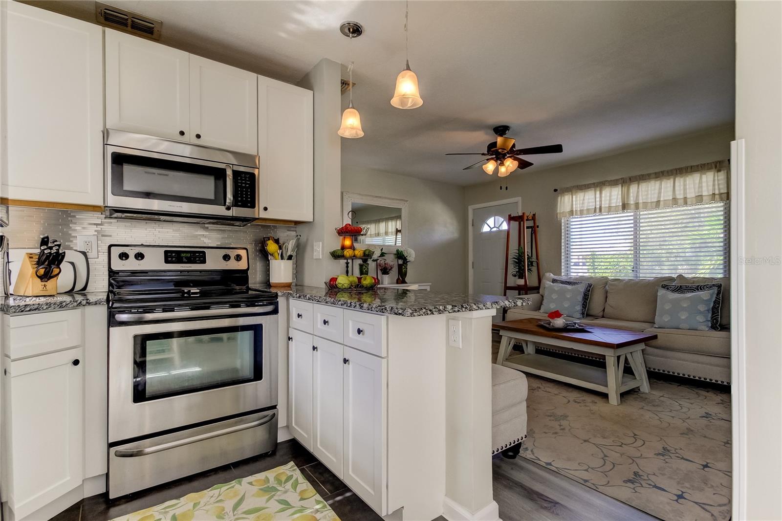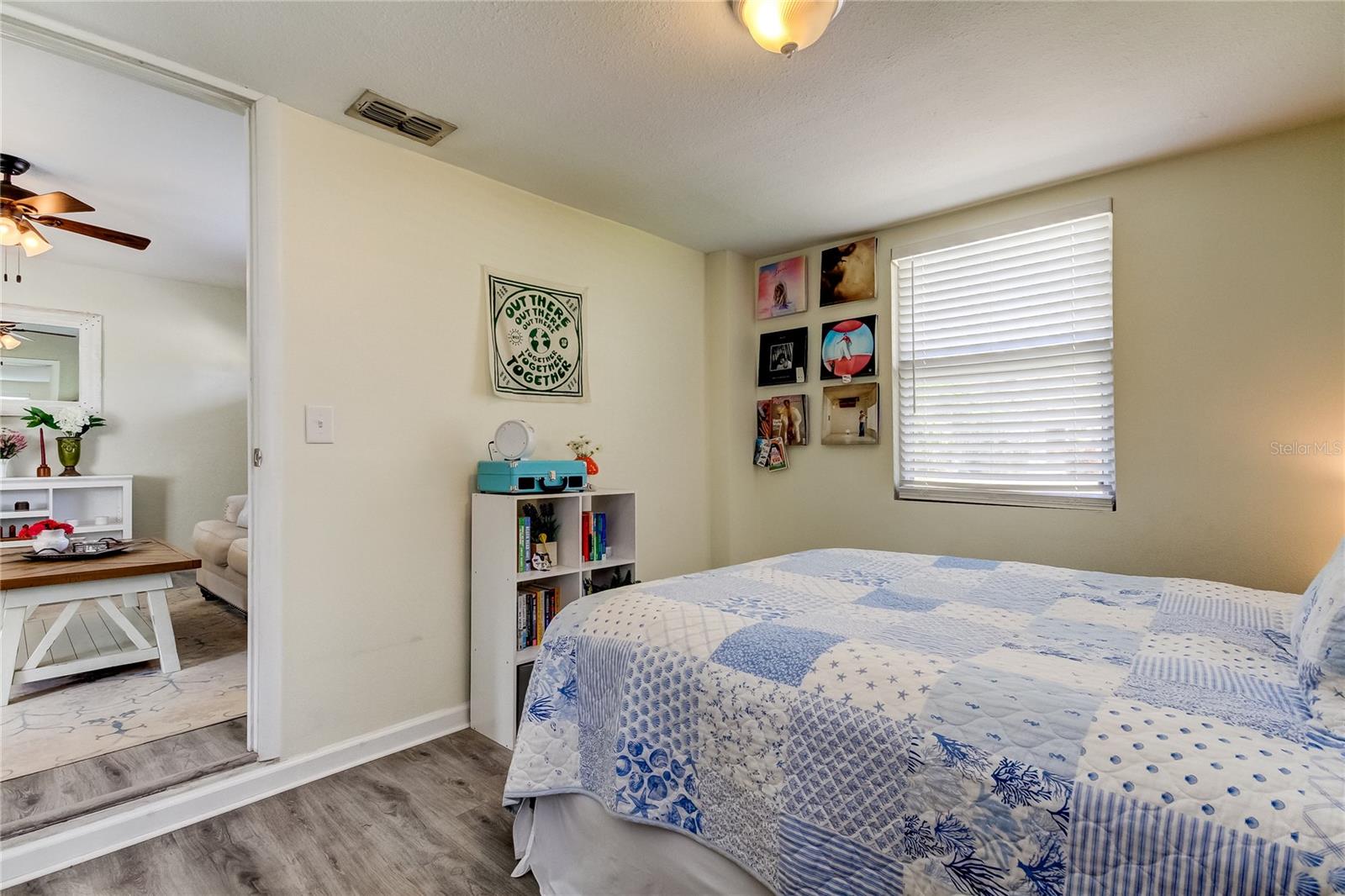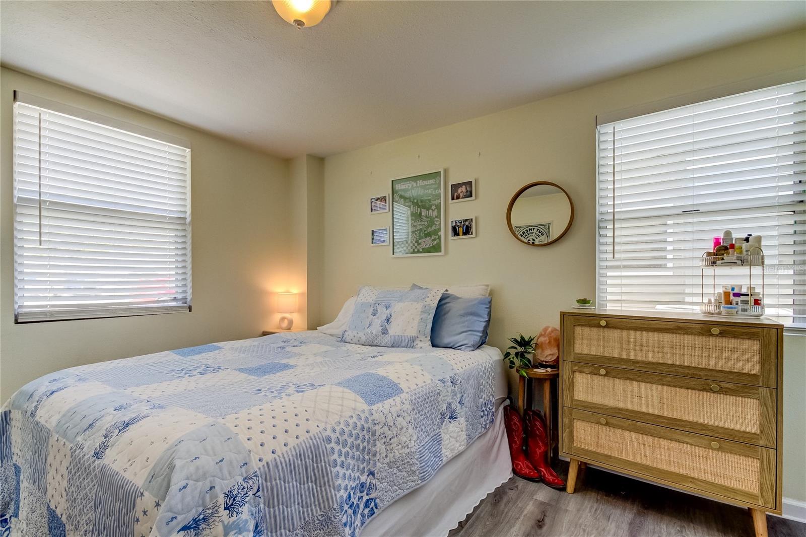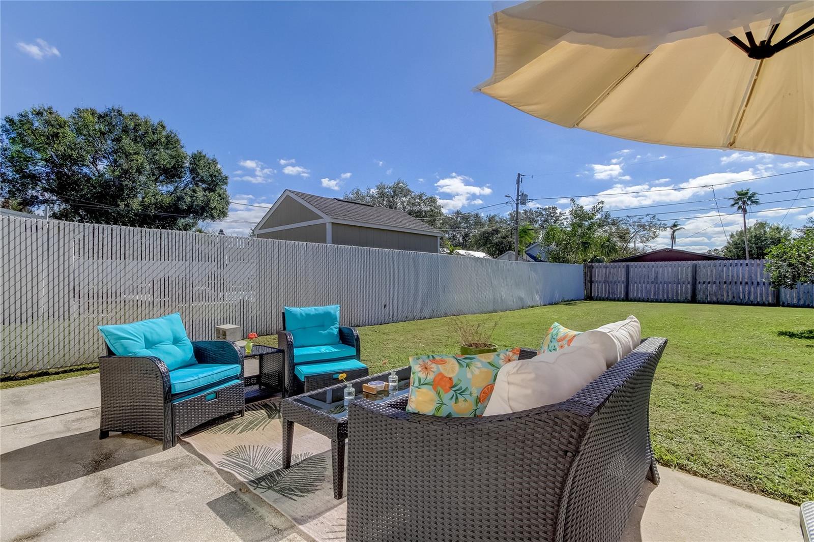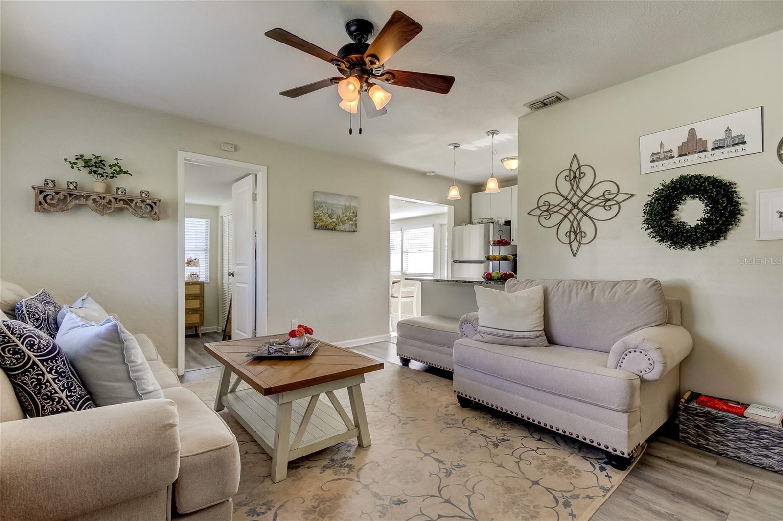 Charming single family home in NO-FLOOD ZONE X !!! The Curb Appeal will draw you in with the well maintained landscape & cute palm trees. Walk in to a welcoming living room and remodeled kitchen in an open floorplan with wood laminate flooring. The kitchen boasts newer cabinets, rich granite counters, stainless steel appliances, backsplash, pendant lights and looks onto the large back yard. On the right is a HUGE master bedroom (was 2 small bedrooms) with plenty of space to add an en-suite master bathroom. The adjacent laundry closet provides access to plumbing. The bathroom features a tub/shower, updated vanity, mirror, lighting, toilet and hardware. Split floor plan. Also, a light & bright 2nd bedroom, plus bonus/Florida room that leads to an open patio and oversized fenced back yard. The yard has SO much potential!! There is alley access and a gate in the rear allowing for RV or boat parking and space for a pool, garage, storage unit, etc. Parking pad was added to accommodate 2 cars with a walk way to the front door. The location is highly desirable, in close proximity to I-275, 4th Street with so many dining options, world-class beaches, airports, medical, major league sports, nightlife, downtown St. Petersburg and so much more! Updates also include electrical service upgrade, internal water supply plumbing, exterior doors, interior and exterior paint, and fencing for your enclosed backyard.. Brand new AC in July of 2023. Roof was replaced in 2015. Being sold furnished - if you are looking for a Coastal Oasis while you recover from the hurricanes, consider this for your full-time residence and then a rental when you are ready to move on. High & dry - there was no flooding in this area & internet never went out for either hurricane. Call today for a private showing - you won't be disappointed!