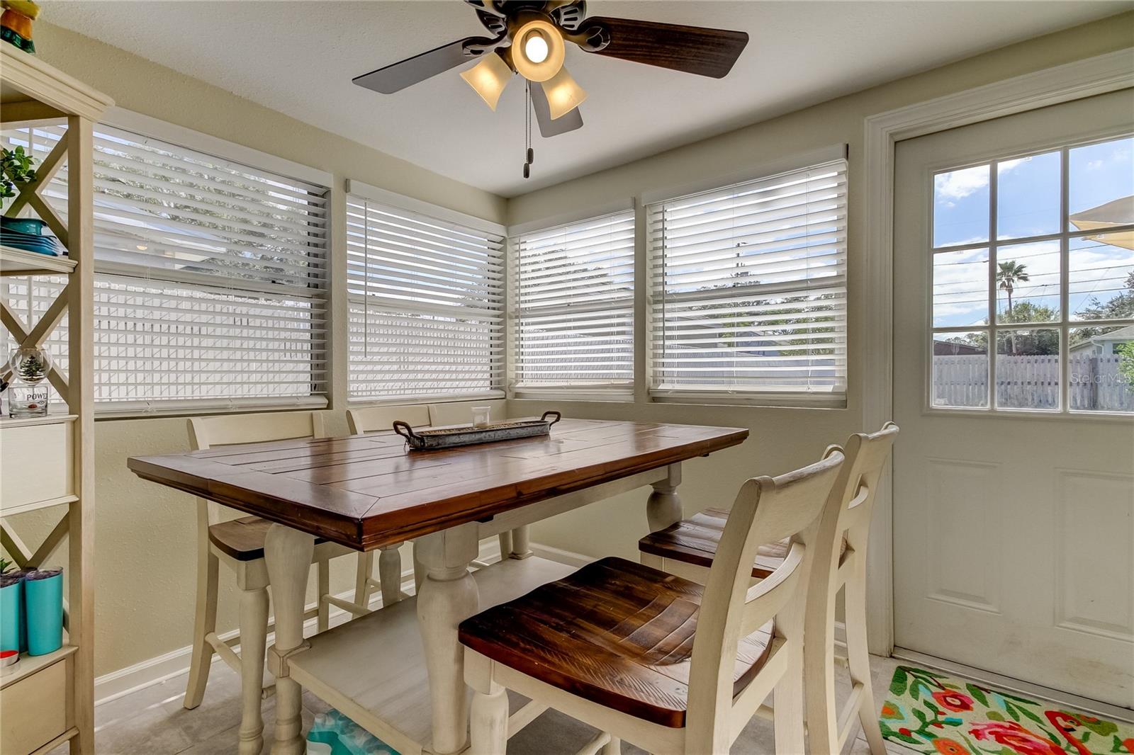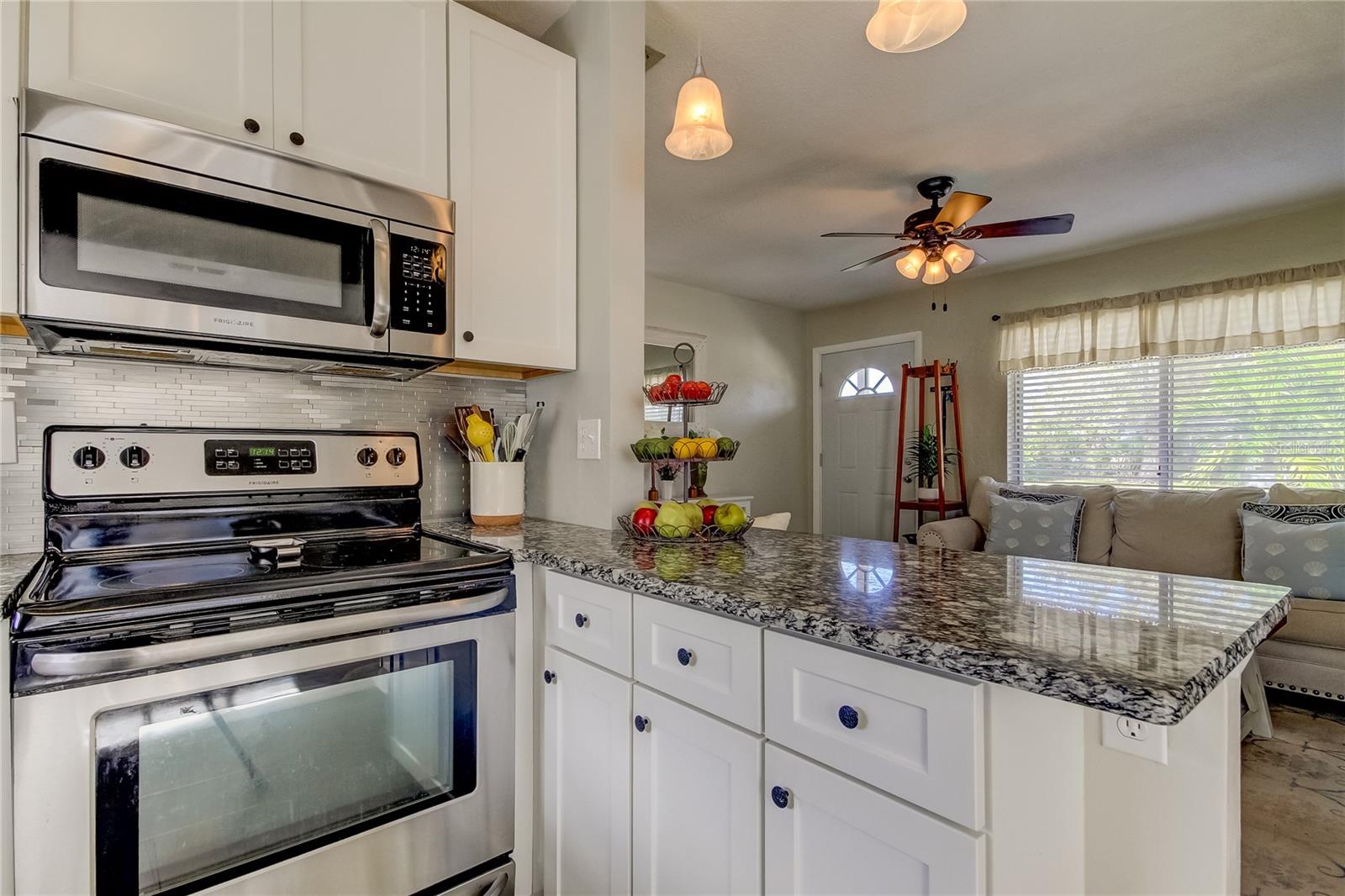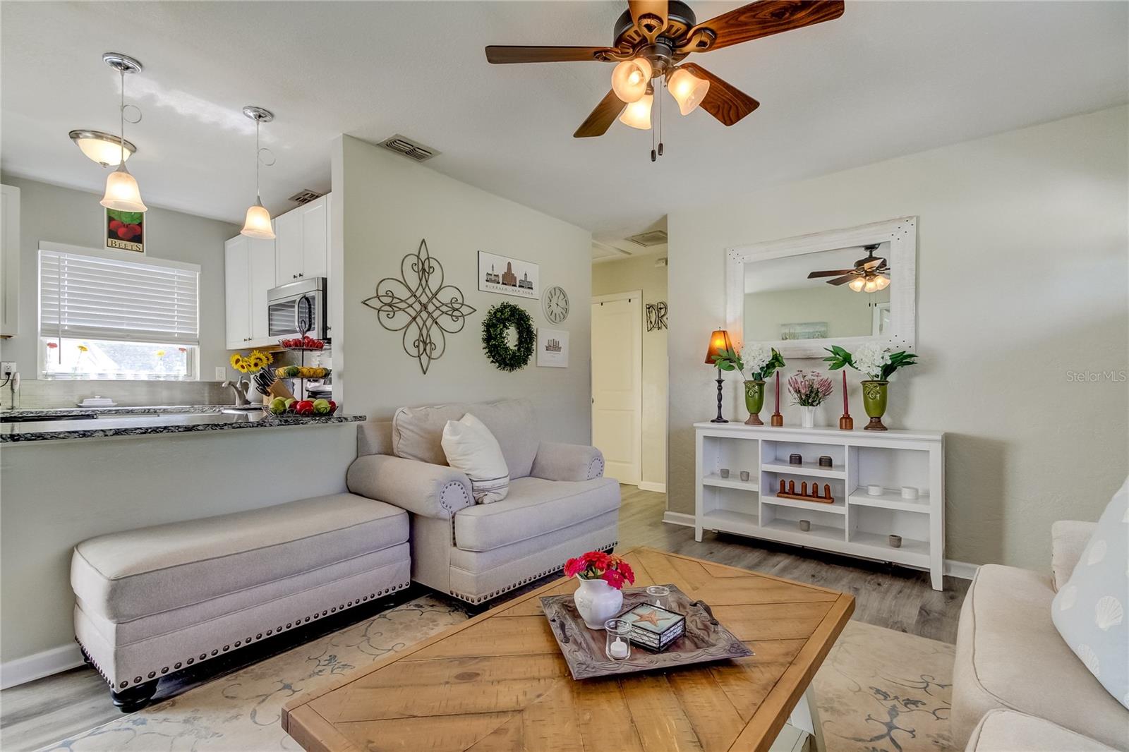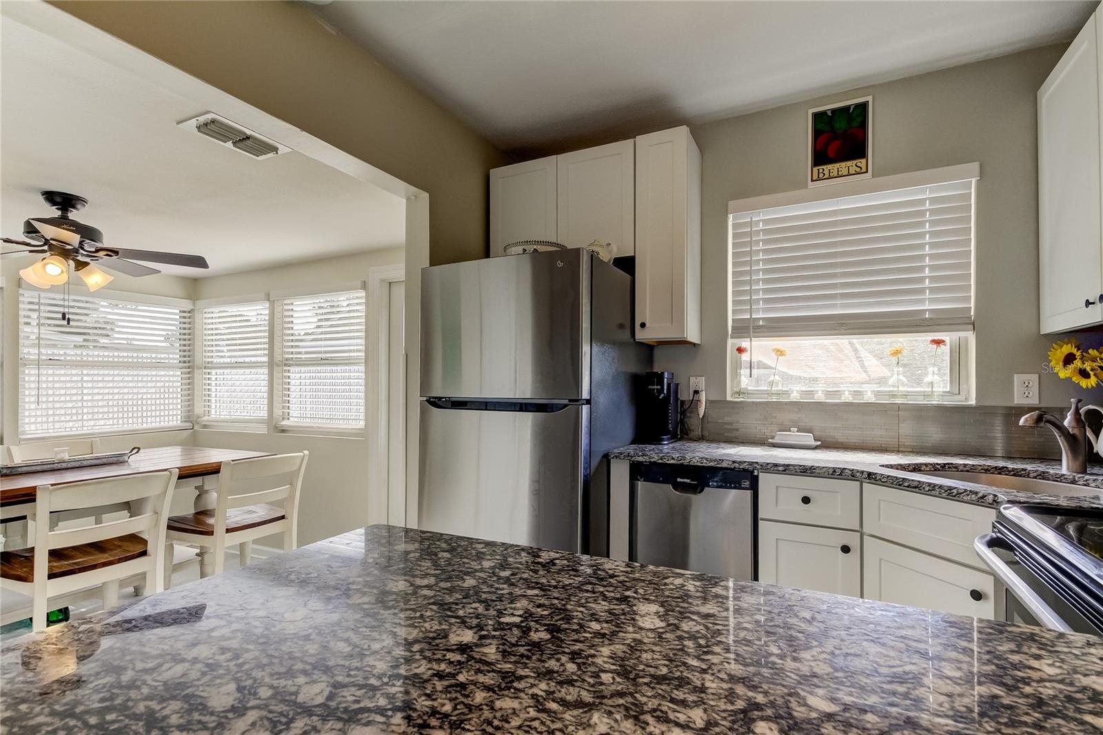 Charming single family home in NO-FLOOD ZONE X !!! The Curb Appeal will draw you in with the well maintained landscape & cute palm trees. Walk in to a welcoming living room and remodeled kitchen in an open floorplan with wood laminate flooring. The kitchen boasts newer cabinets, rich granite counters, stainless steel appliances, backsplash, pendant lights and looks onto the large back yard. On the right is a HUGE master bedroom (was 2 small bedrooms) with plenty of space to add an en-suite master bathroom. The adjacent laundry closet provides access to plumbing. The bathroom features a tub/shower, updated vanity, mirror, lighting, toilet and hardware. Split floor plan. Also, a light & bright 2nd bedroom, plus bonus/Florida room that leads to an open patio and oversized fenced back yard. The yard has SO much potential!! There is alley access and a gate in the rear allowing for RV or boat parking and space for a pool, garage, storage unit, etc. Parking pad was added to accommodate 2 cars with a walk way to the front door. The location is highly desirable, in close proximity to I-275, 4th Street with so many dining options, world-class beaches, airports, medical, major league sports, nightlife, downtown St. Petersburg and so much more! Updates also include electrical service upgrade, internal water supply plumbing, exterior doors, interior and exterior paint, and fencing for your enclosed backyard.. Brand new AC in July of 2023. Roof was replaced in 2015. Being sold furnished - if you are looking for a Coastal Oasis while you recover from the hurricanes, consider this for your full-time residence and then a rental when you are ready to move on. High & dry - there was no flooding in this area & internet never went out for either hurricane. Call today for a private showing - you won't be disappointed!