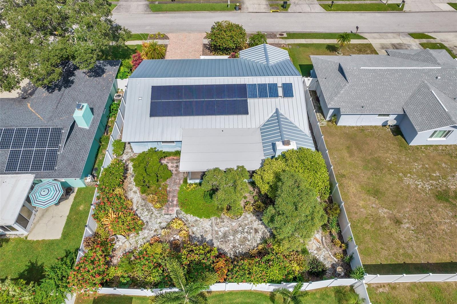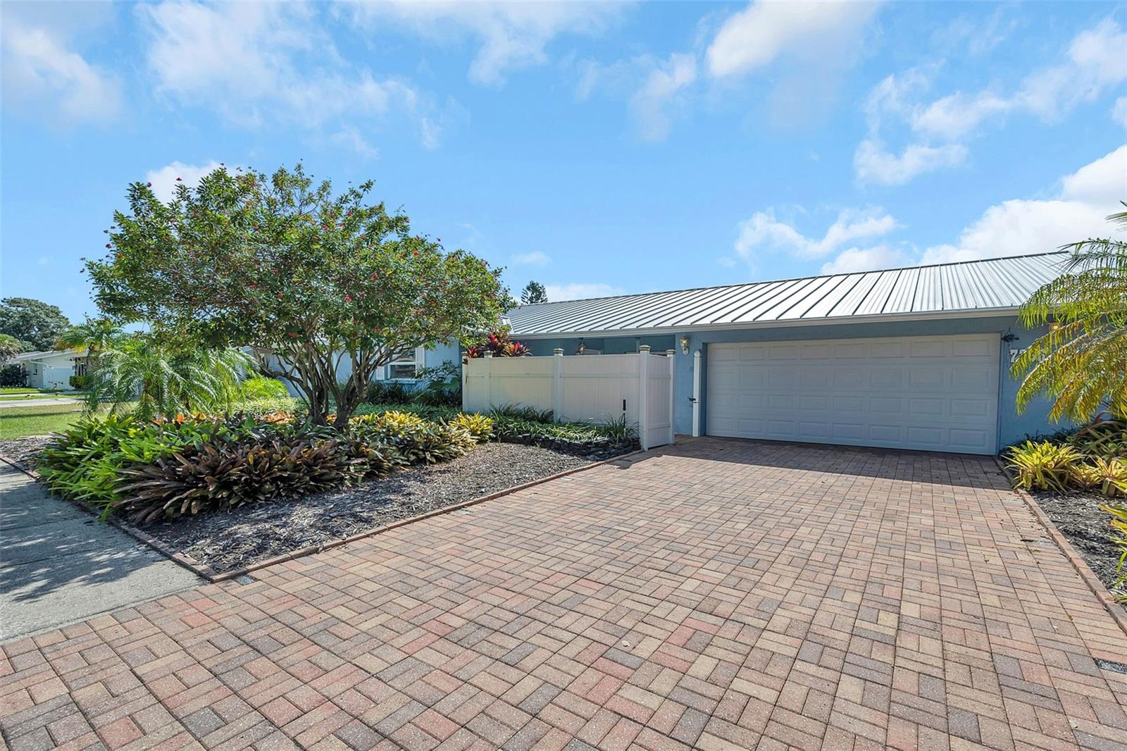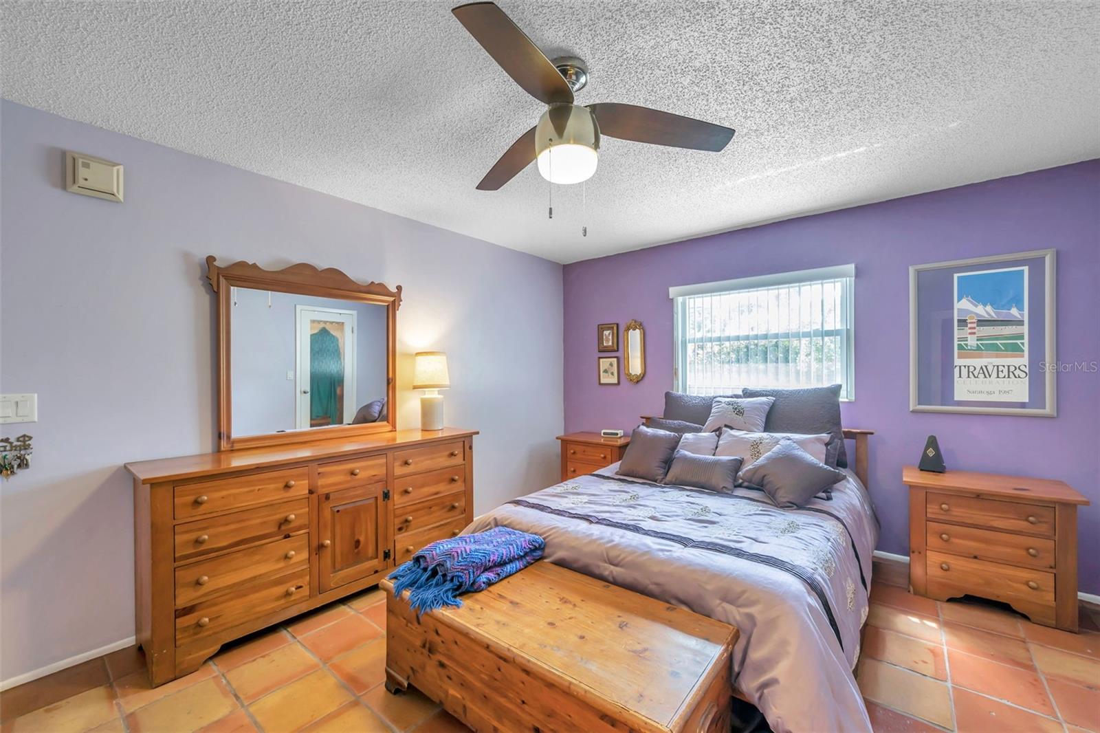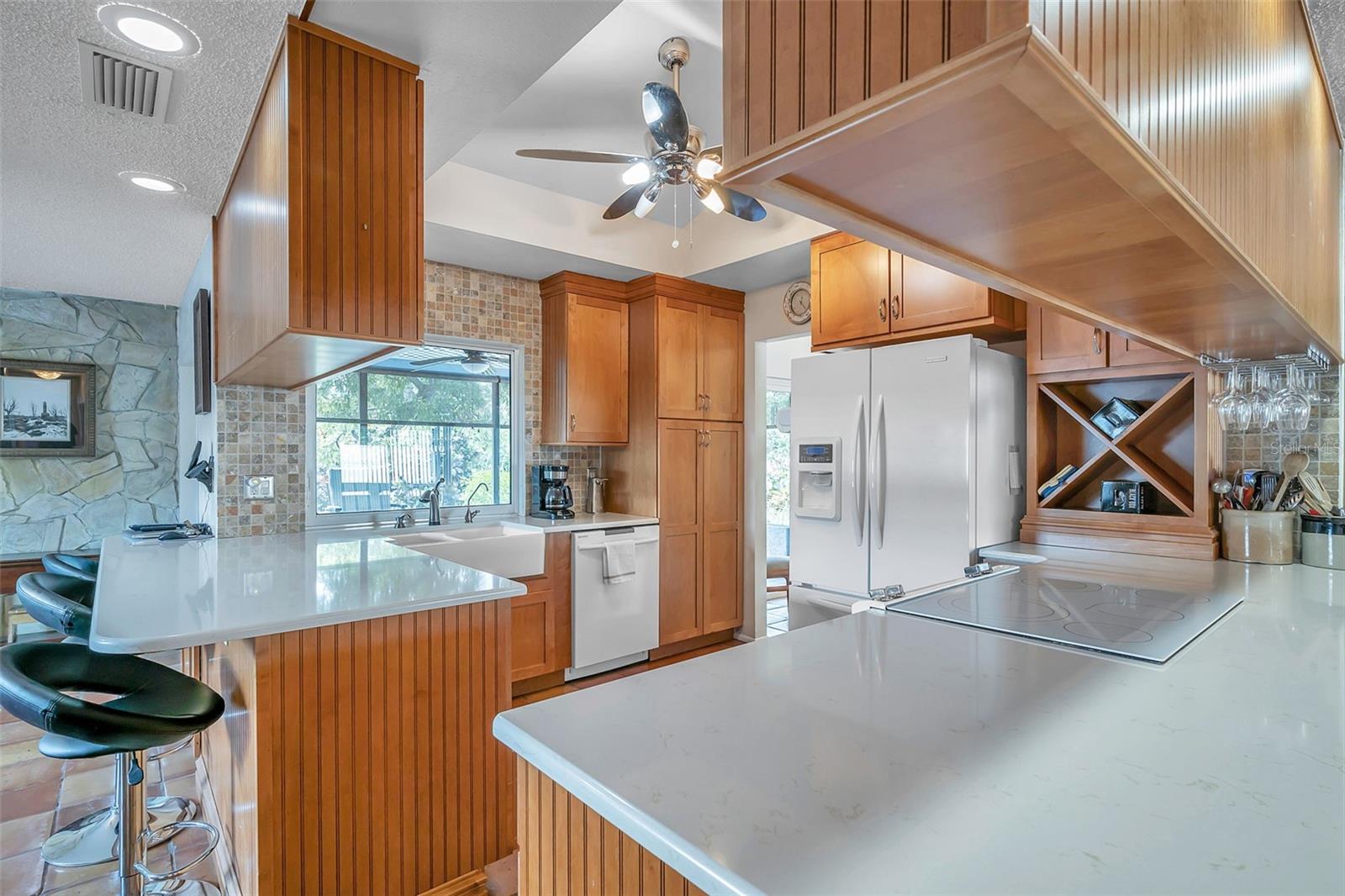 This exceptional Split-Plan home is packed with Upgrades & thoughtful touches, offering comfort, style, and peace of mind. Located in an X Flood Zone so NO flood insurance is required! This home never lost power during recent hurricanes—providing reliability & security. The Kitchen is a chef’s dream, featuring a White Farmhouse Sink, Custom Medallion Cabinets (installed in 2011), a Built-in Spice Rack next to the stove! Lazy Susan, Wine Rack, & Pantry with Pull-out Drawers! Quartz Countertops, a Stone Backsplash, and a "Boos" Chopping Block on Wheels adds functionality and charm. 2 Breakfast Bars & a pass-through window to the screened porch make entertaining effortless. Cozy up in the Family room by the Wood-Burning Fireplace, perfect for cooler evenings. Mexican Tile throughout and Closets have been Upgraded with multiple Shelving Systems. Notice the stylish Ceiling Fans and updated light fixtures. One bedroom is outfitted with built-in Cabinets and Desk, making it an ideal space for homeschooling, a home office, or a hobby room. The guest bath is updated and has it's own linen closet. The screened porch features 2 ceiling fans for year-round enjoyment, overlooking the beautifully Landscaped front & back yards that require minimal maintenance. The Garage is equally impressive, boasting an Epoxy-sealed floor, EXTRA Cabinetry, Shelving, & a Freezer included with the property! Additional highlights include Double-Pane windows & Sliding Glass door. The primary showe has a built-in seat, and Energy-Efficient SOLAR Panels are FULLY PAID FOR! Electric bills are less than 40 bucks a month. The METAL ROOF was installed in 2020, offers a 60-year lifespan!! The AC was Replaced in 2022. Water quality is ensured with a Reverse Osmosis System, Water Softener, and the home has Reclaimed Water. The owner is offering most of the furniture with the home, making this an effortless move-in opportunity. Don’t miss this rare gem—schedule your tour today!