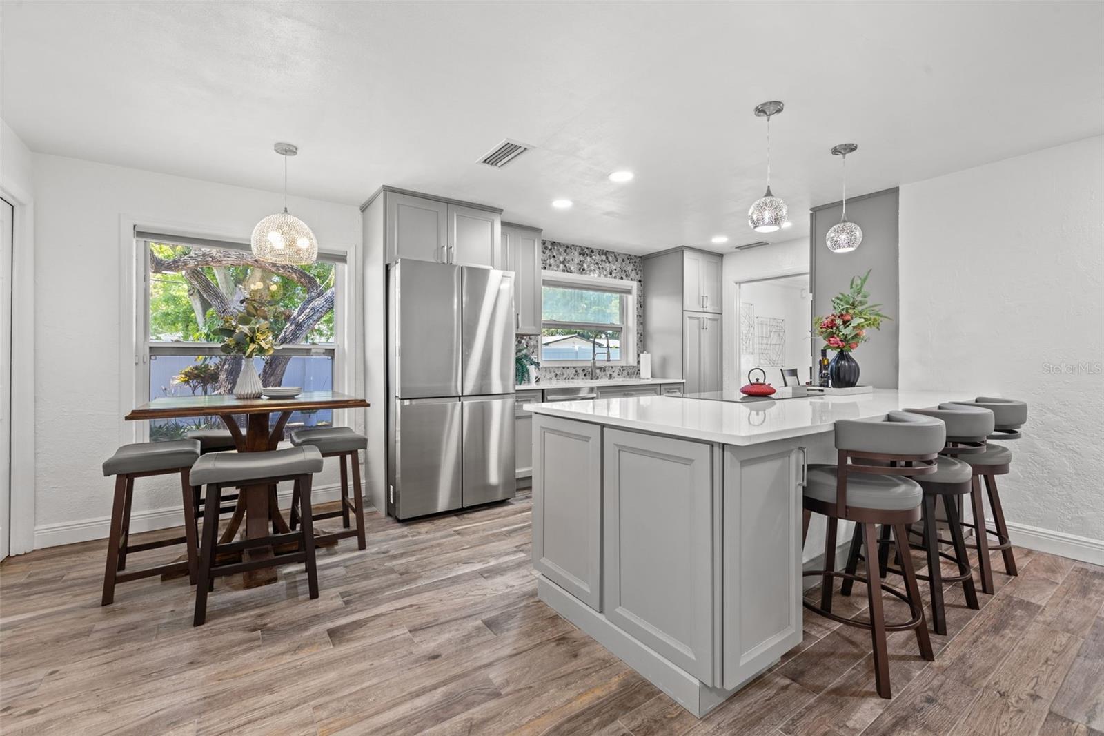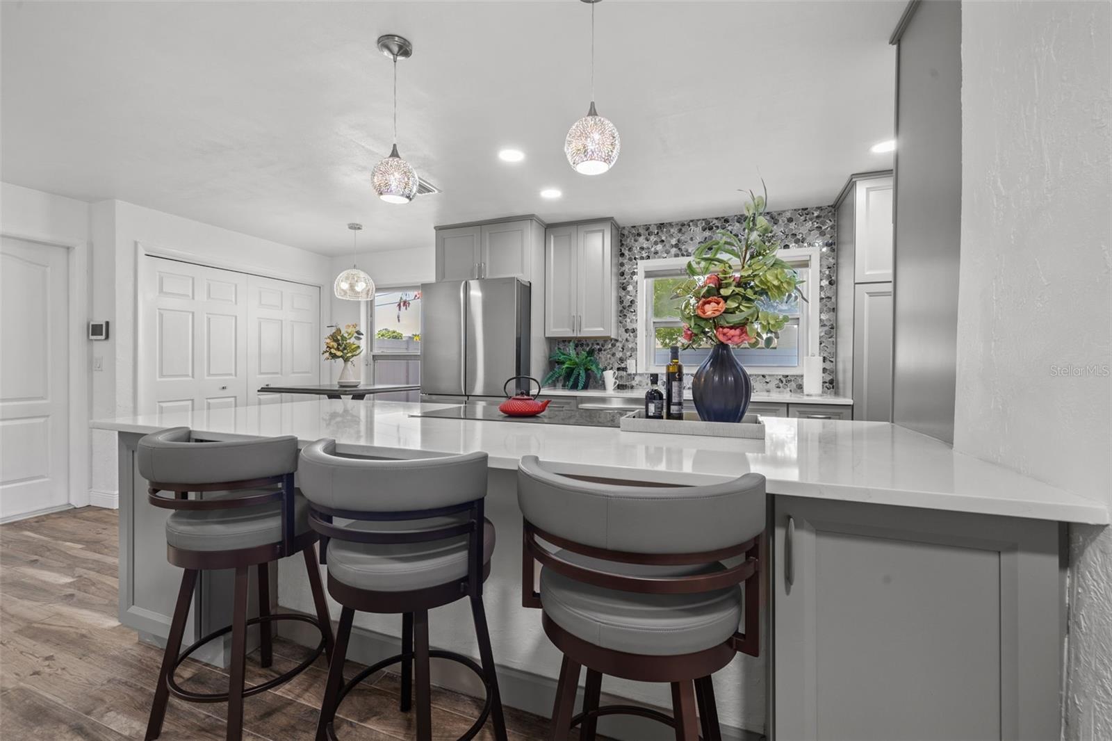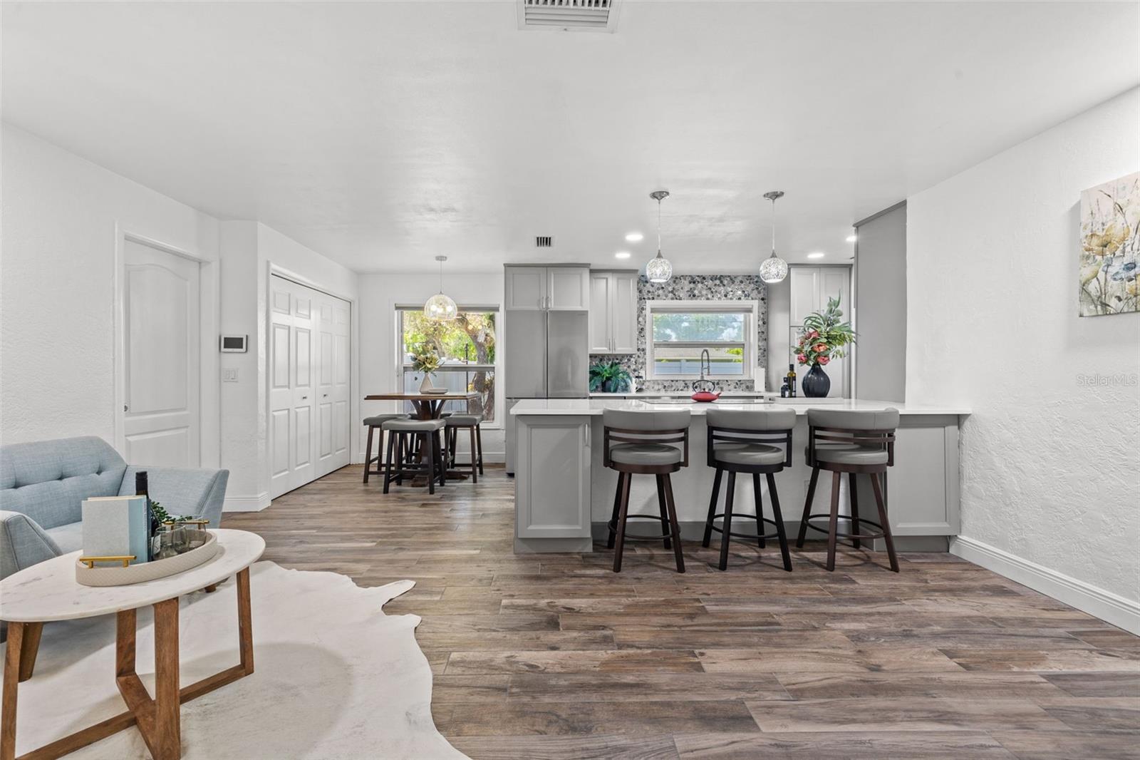 Seller may consider buyer concessions if made in an offer. Welcome home to the pinnacle of year-round Florida living at its finest with this impeccably renovated northeast St Pete pool home. From the moment you step foot on the exquisitely maintained grounds you're instantly transported to paradise. The oversized elevated corner lot boasts nearly a quarter acre of masterfully crafted lush tropical landscape providing an unparalleled level of privacy. Situated in one of St Petersburg's most loved neighborhoods, this spacious Shore Acres residence features block construction and a desirable floor plan boasting three (3) bedrooms with primary en-suite and closet, two (2) new bathrooms, a large two (2) car garage, and over 1700 square feet of living space. The Primary bathroom is an updated retreat featuring spa like amenities including led backed mirrors, frameless glass, new fixtures and built in blue tooth so you can relax to your favorite music, podcast or book while unwinding at the end of a long day. Pride of ownership and love for the community exudes throughout the home as the current residents have lovingly maintained the property and enjoyed living here for more than 30 years. They have recently upgraded many of the residences most desirable features including a new instant tankless water heater (2023), newer HVAC with smart thermostat (2022), new plumbing (2023) and newer roof (2017) which all assure peace of mind worry free living for years to come. A few more of the homes gold standard upgrades include new bathrooms, a sparkling pool, custom lanai with screen protection, new wood look tile floors throughout, fresh paint, automatic blinds, new LED recessed lighting, and a brand new reimagined chefs kitchen. The tastefully designed kitchen is sure to impress even the most discerning in taste. It is equipped with an all-new stainless appliance suite, built in oven, quartz counter tops, custom backsplash, solid wood shaker cabinets with ample storage, recessed LED lighting and a smooth top range. The Piece de Resistance is found as you step outback through either set of large sliders that allow for a flood of natural light. This is the ideal place to kick back, relax, read, reflect, or entertain friends and family. Step outside to your spacious back yard oasis and catch the nightly sunsets all while letting your cares slip away. Completing your new favorite outdoor destination is a 15,000 gallon pebbletec pool framed by custom pavers. There is a deep sense of community in Shore Acres where you’re only minutes to the vibrant shoppes and restaurants of booming Downtown St Petersburg and the glistening waters of Tampa Bay. Bring your golf cart and zoom around this golf cart friendly neighborhood or partake in the Holiday golf cart parade. There is also an annual boat parade sure to warm your spirits. Stroll to one of the many neighborhood parks or take a short bike ride through Snell Isle to Coffee Pot Park or Historic Vinoy Park along the active Northeast Trail. Make an appointment today for a private showing and experience this stunning residence for yourself.