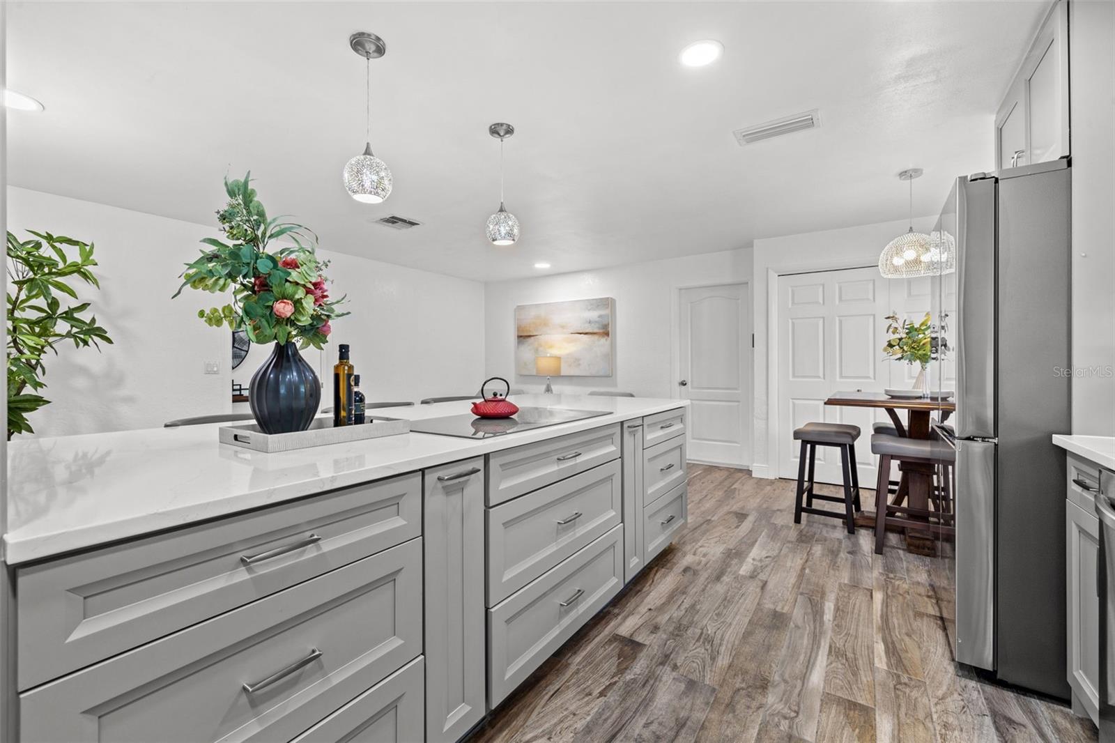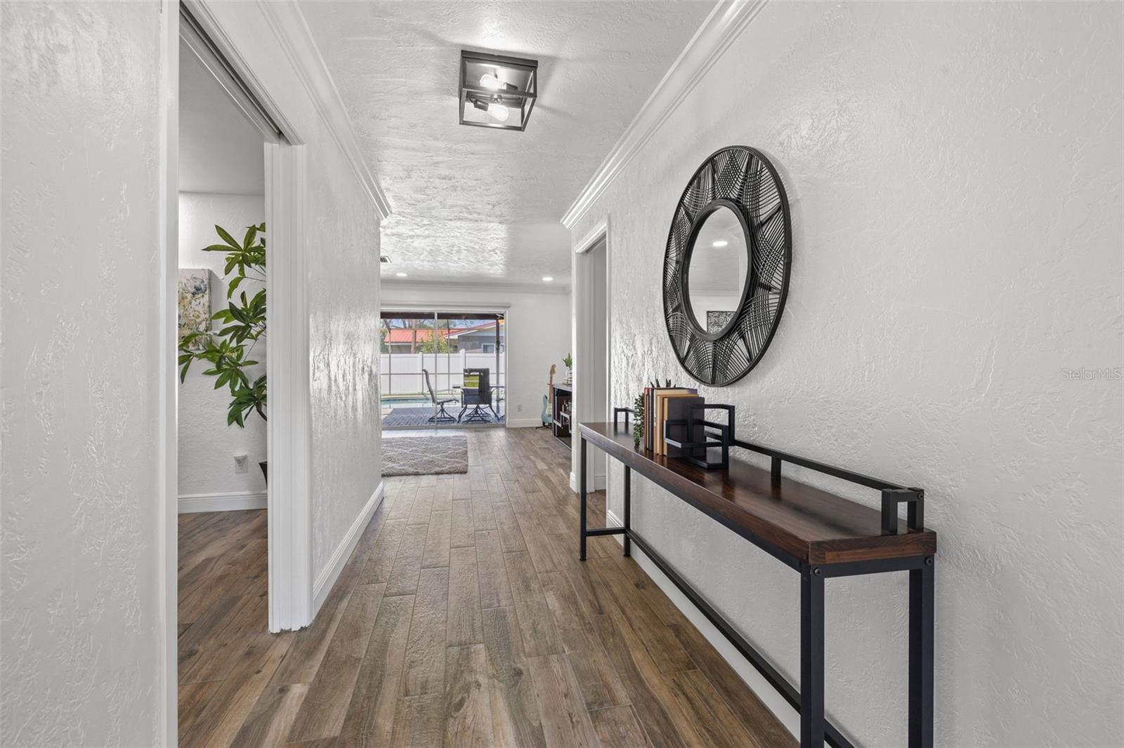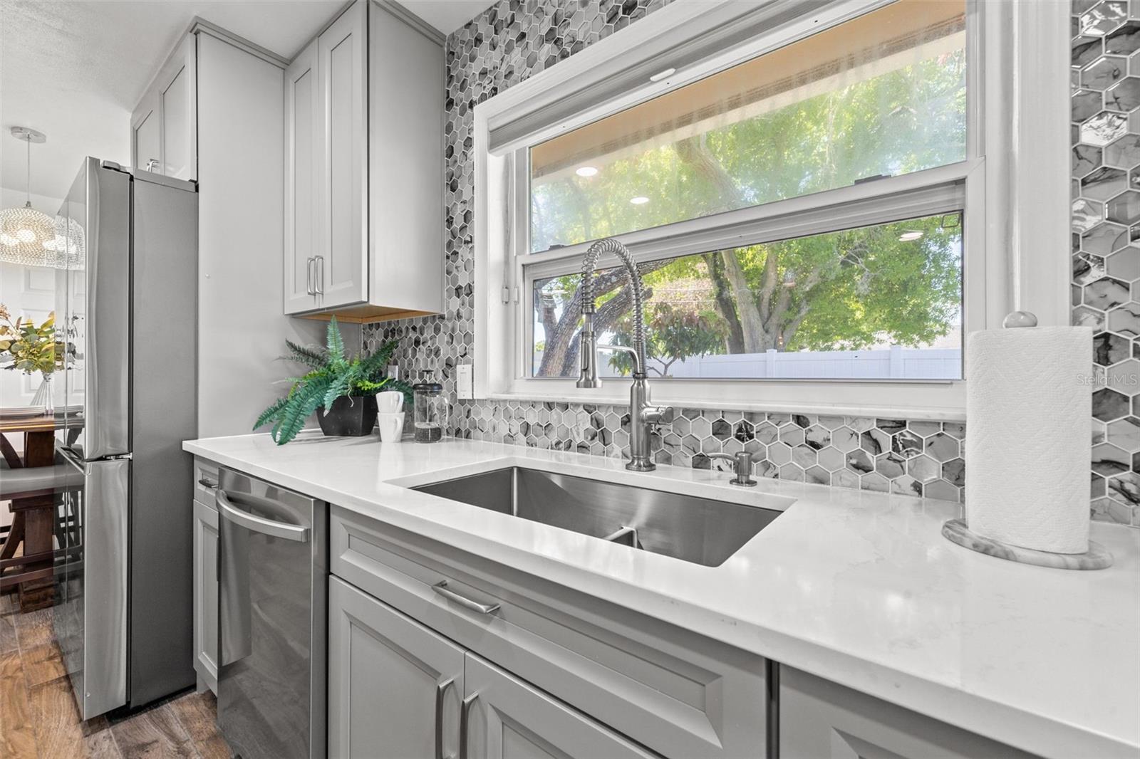Seller may consider buyer concessions if made in an offer. Welcome home to the pinnacle of year-round Florida living at its finest with this impeccably renovated northeast St Pete pool home. From the moment you step foot on the exquisitely maintained grounds you're instantly transported to paradise. The oversized elevated corner lot boasts nearly a quarter acre of masterfully crafted lush tropical landscape providing an unparalleled level of privacy. Situated in one of St Petersburg's most loved neighborhoods, this spacious Shore Acres residence features block construction and a desirable floor plan boasting three (3) bedrooms with primary en-suite and closet, two (2) new bathrooms, a large two (2) car garage, and over 1700 square feet of living space. The Primary bathroom is an updated retreat featuring spa like amenities including led backed mirrors, frameless glass, new fixtures and built in blue tooth so you can relax to your favorite music, podcast or book while unwinding at the end of a long day. Pride of ownership and love for the community exudes throughout the home as the current residents have lovingly maintained the property and enjoyed living here for more than 30 years. They have recently upgraded many of the residences most desirable features including a new instant tankless water heater (2023), newer HVAC with smart thermostat (2022), new plumbing (2023) and newer roof (2017) which all assure peace of mind worry free living for years to come. A few more of the homes gold standard upgrades include new bathrooms, a sparkling pool, custom lanai with screen protection, new wood look tile floors throughout, fresh paint, automatic blinds, new LED recessed lighting, and a brand new reimagined chefs kitchen. The tastefully designed kitchen is sure to impress even the most discerning in taste. It is equipped with an all-new stainless appliance suite, built in oven, quartz counter tops, custom backsplash, solid wood shaker cabinets with ample storage, recessed LED lighting and a smooth top range. The Piece de Resistance is found as you step outback through either set of large sliders that allow for a flood of natural light. This is the ideal place to kick back, relax, read, reflect, or entertain friends and family. Step outside to your spacious back yard oasis and catch the nightly sunsets all while letting your cares slip away. Completing your new favorite outdoor destination is a 15,000 gallon pebbletec pool framed by custom pavers. There is a deep sense of community in Shore Acres where you’re only minutes to the vibrant shoppes and restaurants of booming Downtown St Petersburg and the glistening waters of Tampa Bay. Bring your golf cart and zoom around this golf cart friendly neighborhood or partake in the Holiday golf cart parade. There is also an annual boat parade sure to warm your spirits. Stroll to one of the many neighborhood parks or take a short bike ride through Snell Isle to Coffee Pot Park or Historic Vinoy Park along the active Northeast Trail. Make an appointment today for a private showing and experience this stunning residence for yourself.