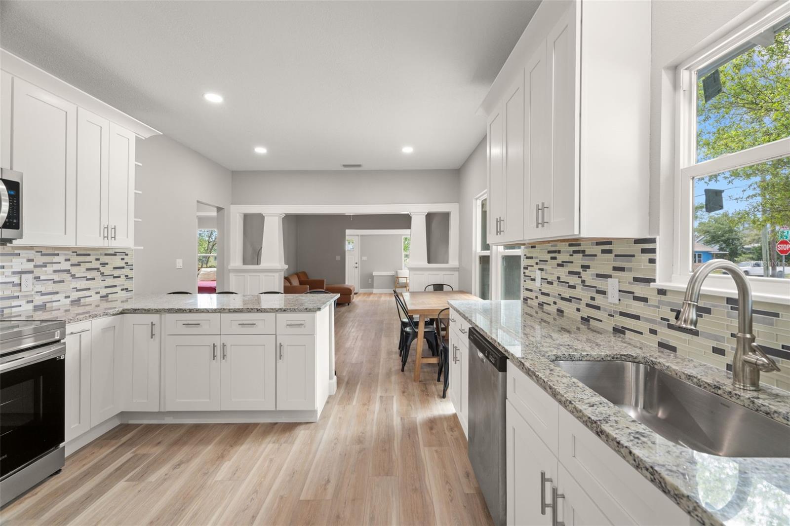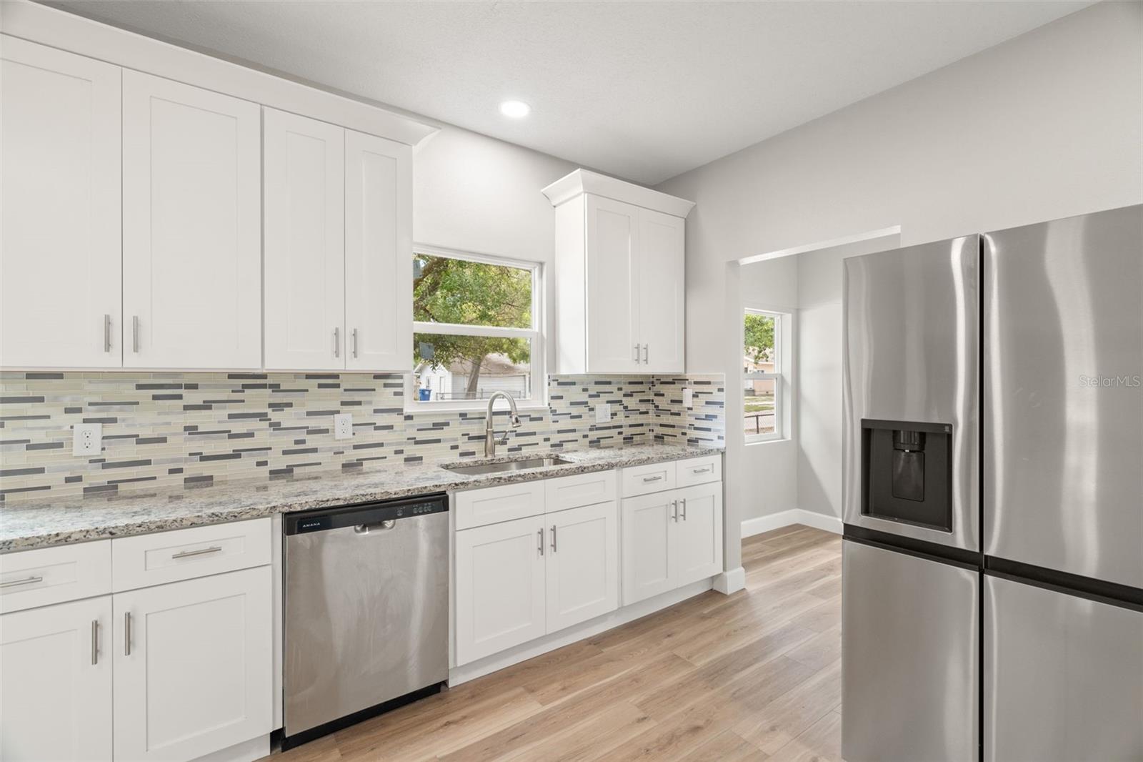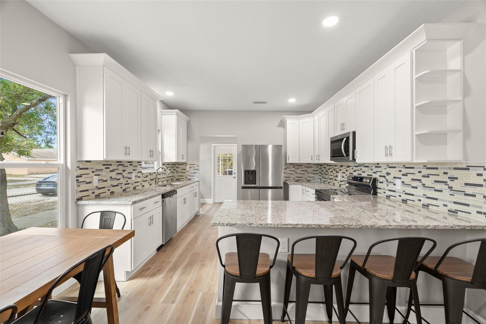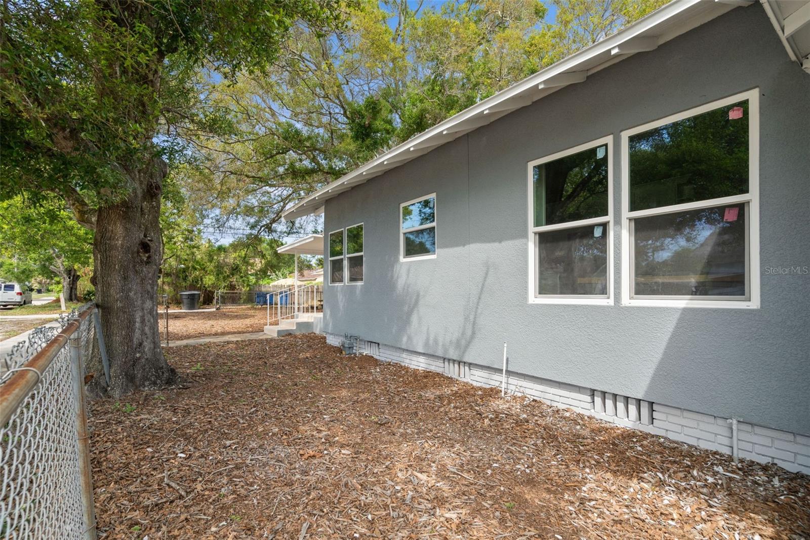 FOUND IT! This MUST SEE, fully renovated 1392 Sqft, two bedroom, two full bath BEAUTY features a huge, modern kitchen complete with stainless steel appliances, 9' high ceiling, granite countertops throughout and 42" upper cabinets with crown moulding, plenty of cabinet space. Your new home includes a huge, truly walk-in closet in the master bedroom suite, an open, flowing floor plan and large, newly installed impact windows that allow for as much natural light as you wish. Other features include: New stucco exterior walls 2024, New HVAC system with ducts throughout 2023, all new electrical wiring and exterior panel box 2023, all new plumbing 2023, beautifully tiled bathrooms; a large, shaded, fenced in backyard with low maintenance mulch, a large shed and alley access. Conveniently located near the beaches, marinas, hospitals, shopping, golfing, breweries, art and cultural richness of St. Petersburg and surrounding neighborhoods have to offer. SCHEDULE YOUR SHOWING NOW before it's gone, you don't want to miss this one!!!