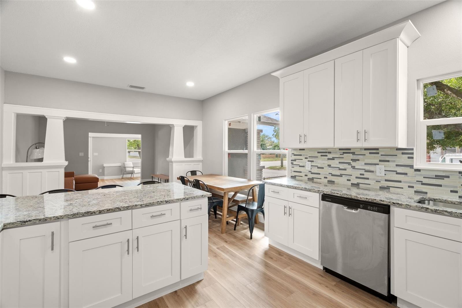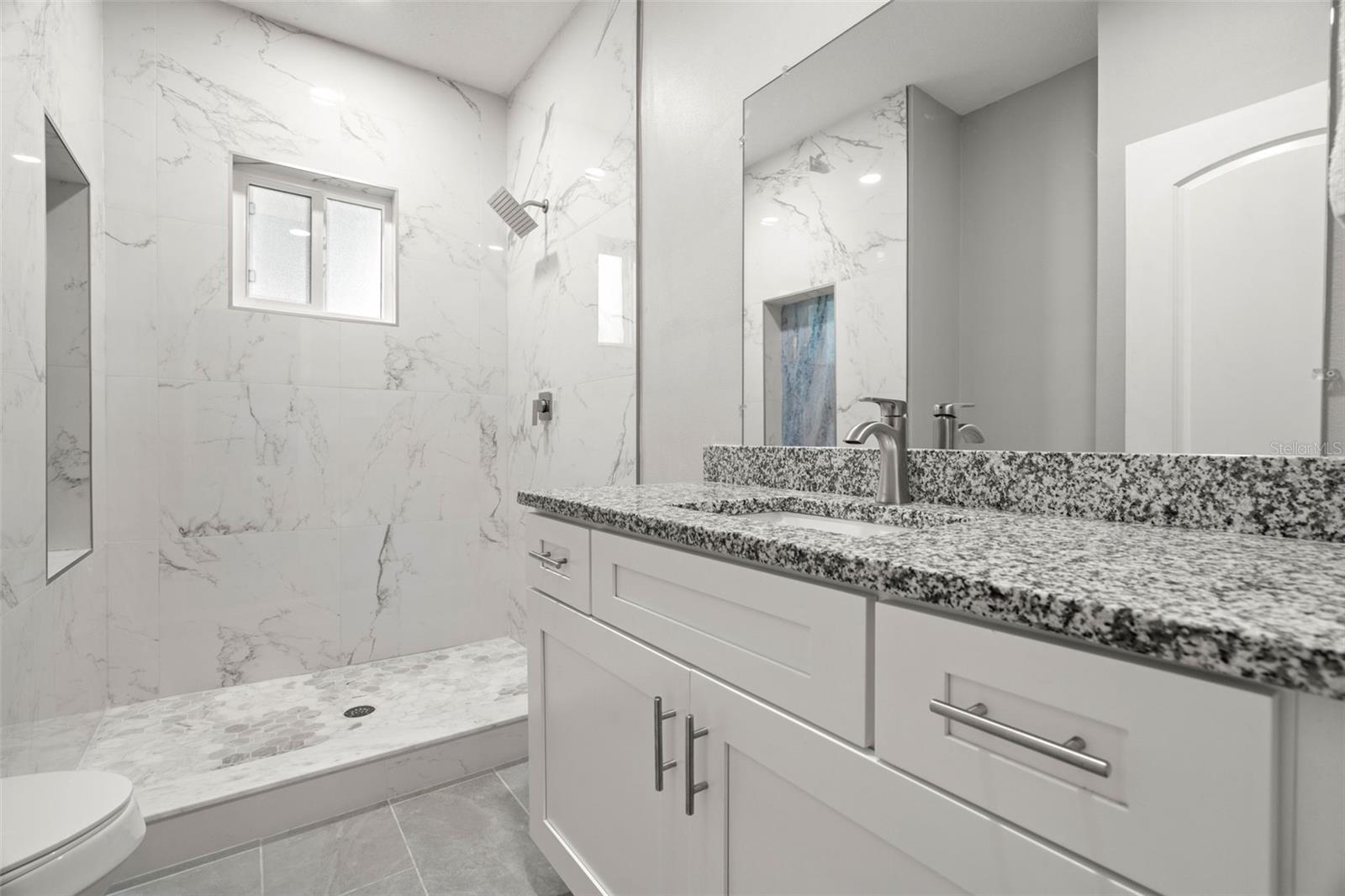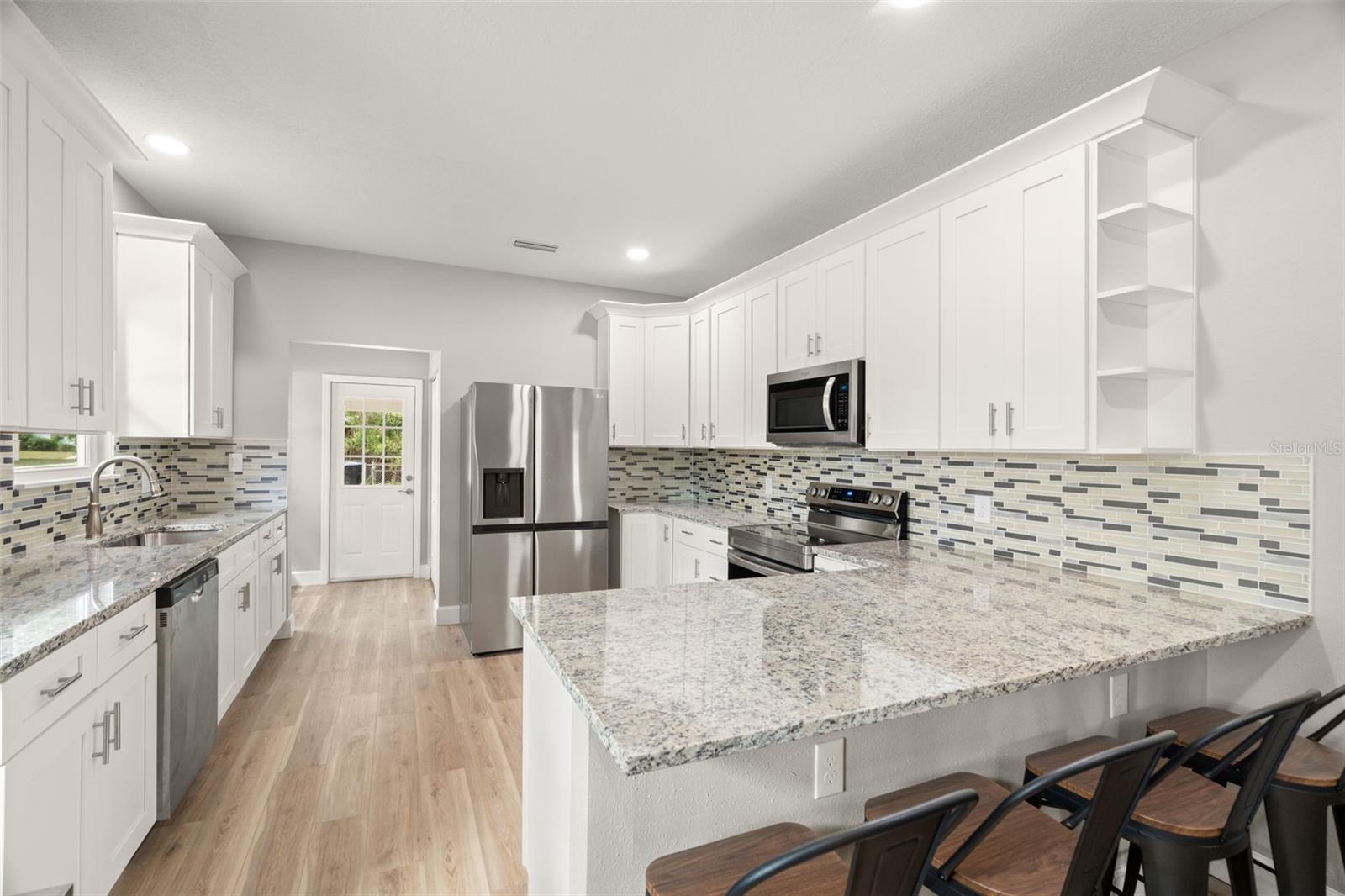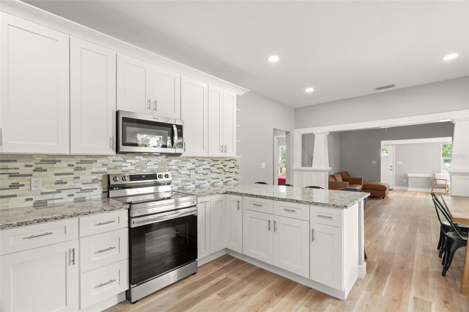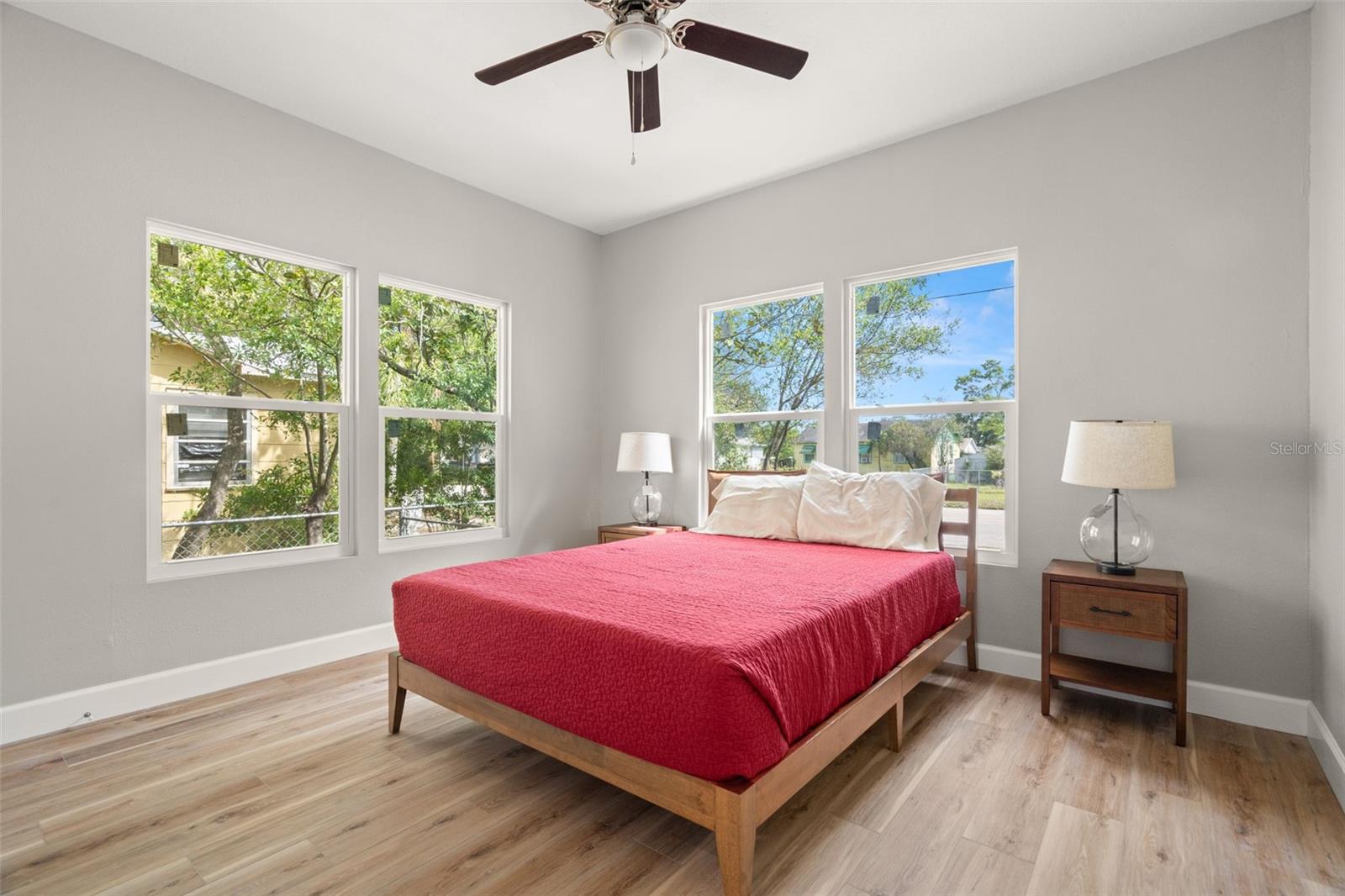 FOUND IT! This MUST SEE, fully renovated 1392 Sqft, two bedroom, two full bath BEAUTY features a huge, modern kitchen complete with stainless steel appliances, 9' high ceiling, granite countertops throughout and 42" upper cabinets with crown moulding, plenty of cabinet space. Your new home includes a huge, truly walk-in closet in the master bedroom suite, an open, flowing floor plan and large, newly installed impact windows that allow for as much natural light as you wish. Other features include: New stucco exterior walls 2024, New HVAC system with ducts throughout 2023, all new electrical wiring and exterior panel box 2023, all new plumbing 2023, beautifully tiled bathrooms; a large, shaded, fenced in backyard with low maintenance mulch, a large shed and alley access. Conveniently located near the beaches, marinas, hospitals, shopping, golfing, breweries, art and cultural richness of St. Petersburg and surrounding neighborhoods have to offer. SCHEDULE YOUR SHOWING NOW before it's gone, you don't want to miss this one!!!