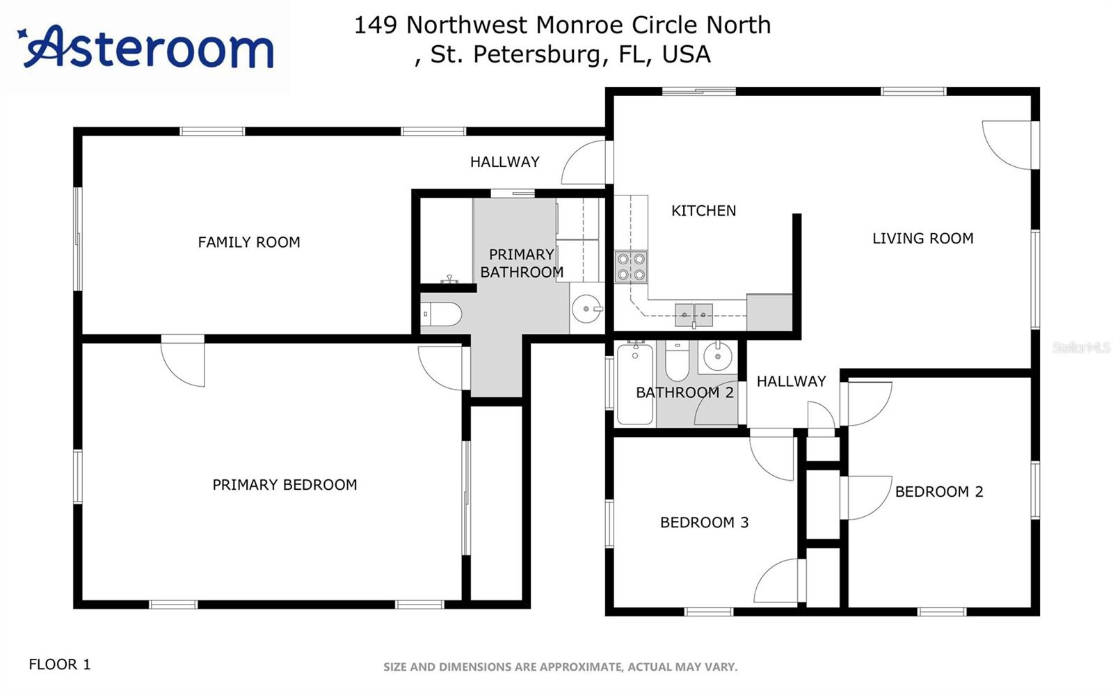 Discover exceptional value in the heart of vibrant St. Petersburg with this charming 3 Bed / 2 Bath Fossil Park home. Perfectly situated for easy access to downtown via a quick drive or bike ride, as well as seamless connections to Tampa and the bustling shopping district along 4th Street, this location offers unparalleled convenience in North St. Pete. As you step in from the covered front porch, you're greeted by a versatile living room that alternatively can be used as a spacious dining area. The home features two bedrooms and a full bath at the front, providing privacy and separation from the primary bedroom located at the rear. Flowing from the living area, the kitchen beckons with sliding glass doors leading to a side patio, filling the space with natural light and providing access to the fenced backyard. Continuing through the home, you'll find a cozy family room with convenient access to the rear yard, complemented by the adjacent generously sized primary bedroom. The second bath, nestled in the center of the home, boasts a convenient step-in tile shower with contemporary glass door and holds the indoor laundry facilities. Outside, the expansive rear yard offers alley access and ample space for potential enhancements such as a pool or shed, promising the creation of your own private Florida oasis. Don't miss the opportunity to experience the charm and convenience of Fossil Park living. Enjoy the two block stroll for morning coffee at the brand new Kahwa location on 4th st. Or for an evening libation, Rumba Island Bar & Grill is at the end of the next block. Schedule your showing today and take the first step towards making this delightful neighborhood your new home!
