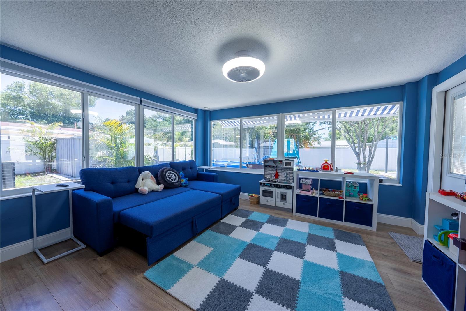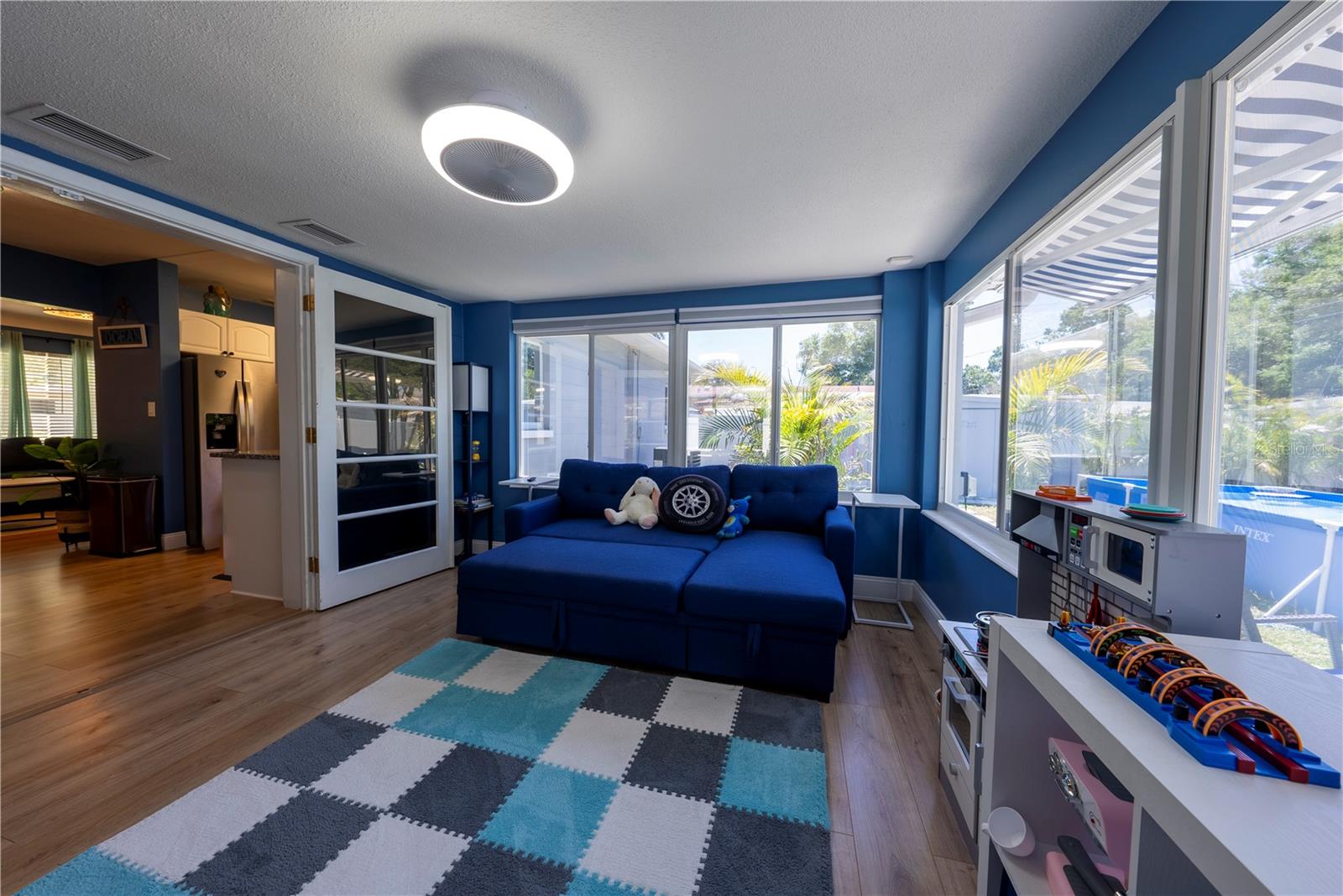 In the heart of St. Pete, this move-in-ready 2 bedroom, 1 bath with bonus finished Florida room is your home-sweet-home! Your entry includes a retractable screen storm door, fingerprint door lock, and open floor plan. Lovingly cared for, the upgrades are endless including Aquaguard waterproof laminate flooring throughout the living area and 2nd bedroom, granite countertops in the kitchen and bathroom, stainless steel appliances, recessed led, dimmable lighting in the main living area and bonus living space surrounded by tinted windows to enjoy the natural light without the heat! Did we mention it has a smart thermostat?!? Your fully fenced backyard is a welcomed oasis with its generous paver patio, new screened-in area with insulated roof, shaded pergola, hot tub, and above ground pool. The 1 car garage has a new epoxy floor for easy maintenance and cleaning. No HOA and no flood insurance required! The roof, A/C, and windows are 2022, and the water heater is 2024.