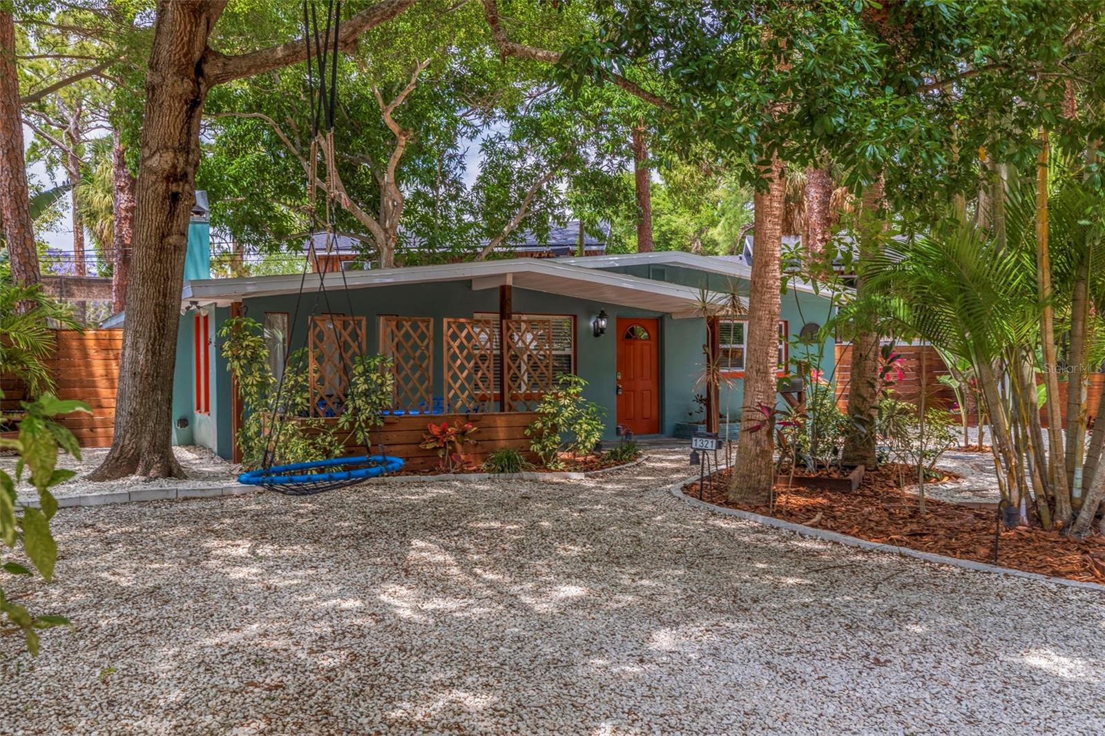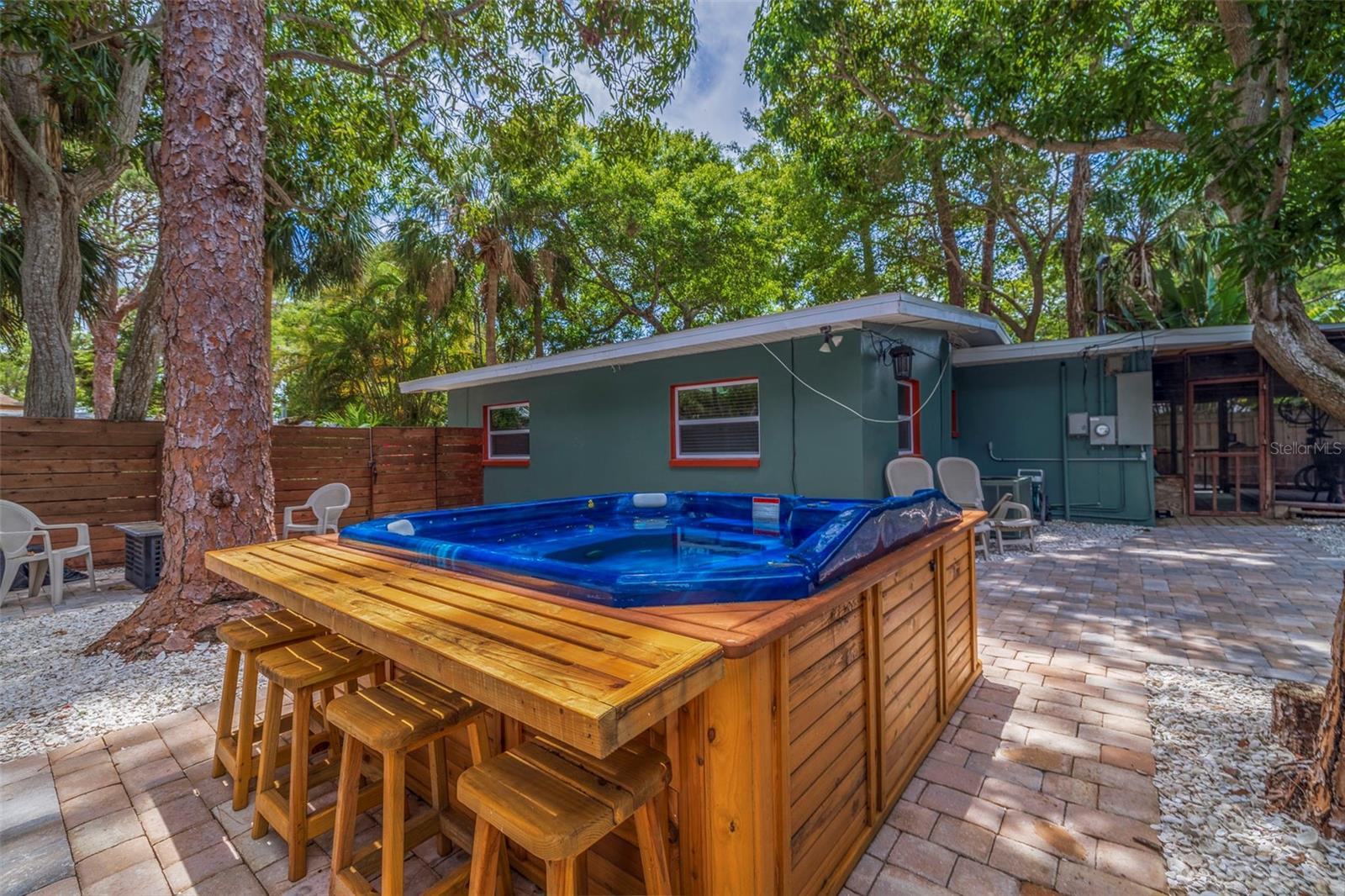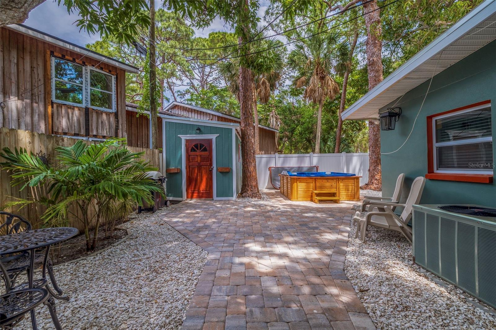 Hot off the press IN THE PINK STREETS! Brand new roof, pavers AND water heater! Upon arriving to this stunning, cozy 2 bedroom, 2 full bathroom home, you'll be blown away with the vibrant, lush, tropical landscaping -- Many beautiful colors of Florida vegetation in your very own front yard. As you walk through the front door, you'll find an open and bright living room with a beautiful fireplace. The kitchen has been tastefully renovated with marble backsplash and newer quartz countertops. The updated cabinets provide ample storage and the breakfast bar provides a perfect spot for enjoying your morning coffee or evening glass of wine. Recent updates have been made to the bathrooms and laundry area. As you walk through the French doors, a backyard oasis awaits, including a large screened in lanai and paver patio that brings you to your brand new private hot tub. This space is absolutely perfect for hosting get togethers or for total relaxation. The back and side yards are completely fenced, offering privacy and security. Additional storage can be found in the back yard with the large shed. This home offers convenient access to Tampa, 10 minutes from Pass-a-Grille and St. Pete beach, a gorgeous waterfront Downtown, and more! Don't miss this opportunity, schedule a private showing today!