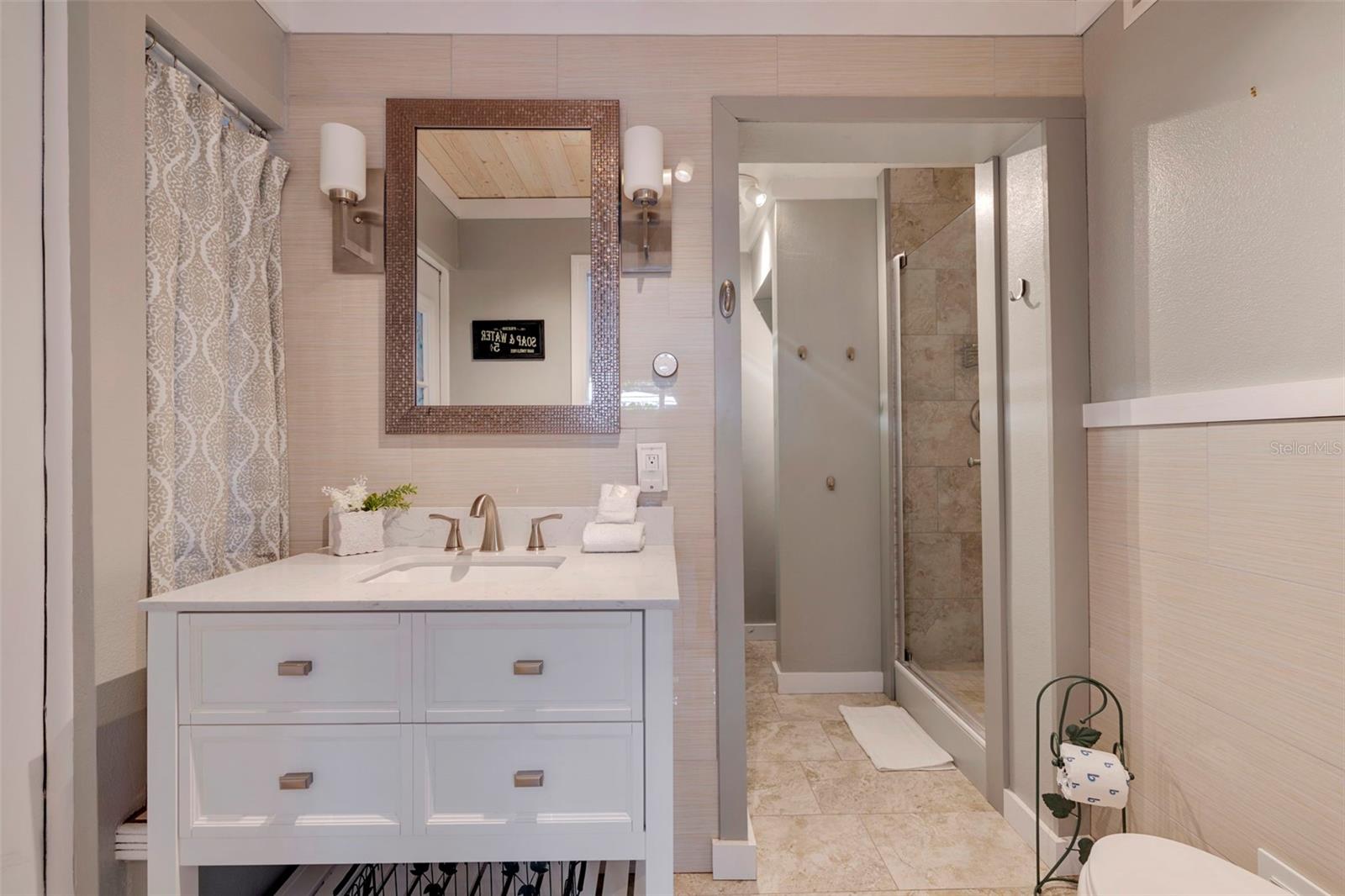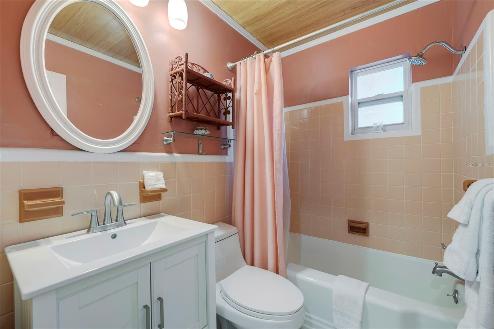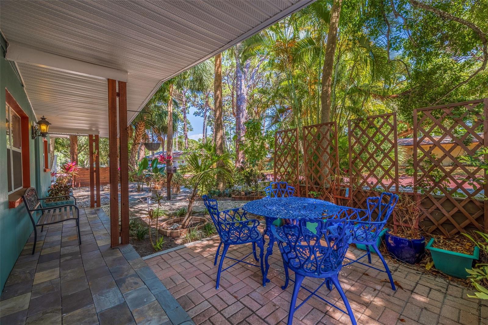 Hot off the press IN THE PINK STREETS! Brand new roof, pavers AND water heater! Upon arriving to this stunning, cozy 2 bedroom, 2 full bathroom home, you'll be blown away with the vibrant, lush, tropical landscaping -- Many beautiful colors of Florida vegetation in your very own front yard. As you walk through the front door, you'll find an open and bright living room with a beautiful fireplace. The kitchen has been tastefully renovated with marble backsplash and newer quartz countertops. The updated cabinets provide ample storage and the breakfast bar provides a perfect spot for enjoying your morning coffee or evening glass of wine. Recent updates have been made to the bathrooms and laundry area. As you walk through the French doors, a backyard oasis awaits, including a large screened in lanai and paver patio that brings you to your brand new private hot tub. This space is absolutely perfect for hosting get togethers or for total relaxation. The back and side yards are completely fenced, offering privacy and security. Additional storage can be found in the back yard with the large shed. This home offers convenient access to Tampa, 10 minutes from Pass-a-Grille and St. Pete beach, a gorgeous waterfront Downtown, and more! Don't miss this opportunity, schedule a private showing today!