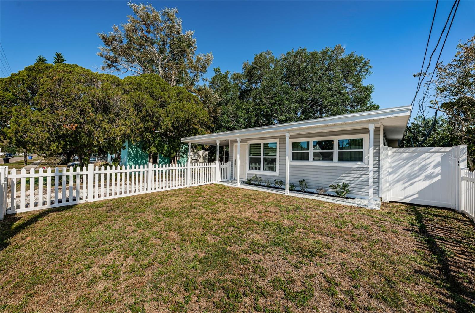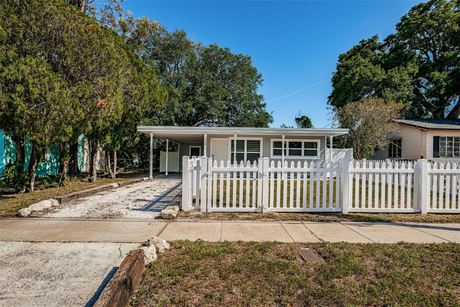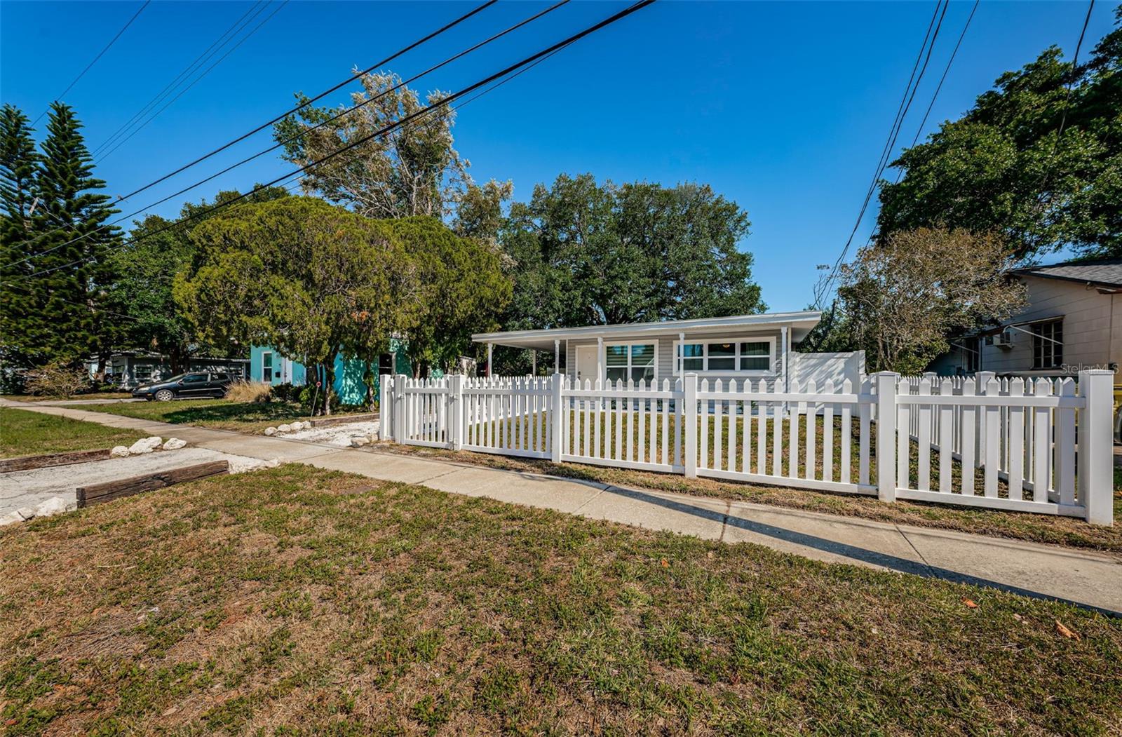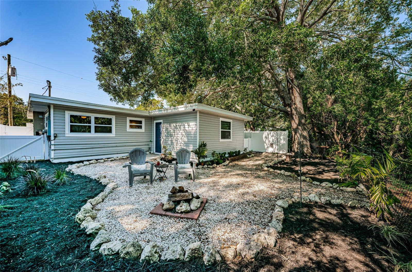 BEAUTIFUL, COMPLETELY RENOVATED HOME LOCATED IN NORTHEAST ST PETERSBURG! This 3 bedroom, 1 bathroom home conveniently located between 4th Street and 9th Street will not disappoint! Home has recently been completely renovated. Home boasts luxury vinyl floors, renovated bathroom, beautiful kitchen with stainless steel appliances, butcher block countertops, custom cabinet and beautiful tile floor in the large rear room of the home. Spacious rear room can be used as Primary Bedroom, large Florida room or living area opening out to the beautifully serene fenced backyard. Relax under the stars next to the fire pit area or birdwatch through the trees along the 54th Avenue E Canal. Vinyl fencing all round the home front and sides, chain link fencing overlooking the canal, extra gates on the sides. This home includes a large designated mudroom./laundry room off of the carport which opens up to the back room. New and elegant blinds on the windows. New roof in 2022 with transferable warranty, new windows in 2022, new hot water heater in 2022, newer A/C in 2019 and updated electrical in 2022. THIS HOME IS A MUST SEE! Make your appointment today!