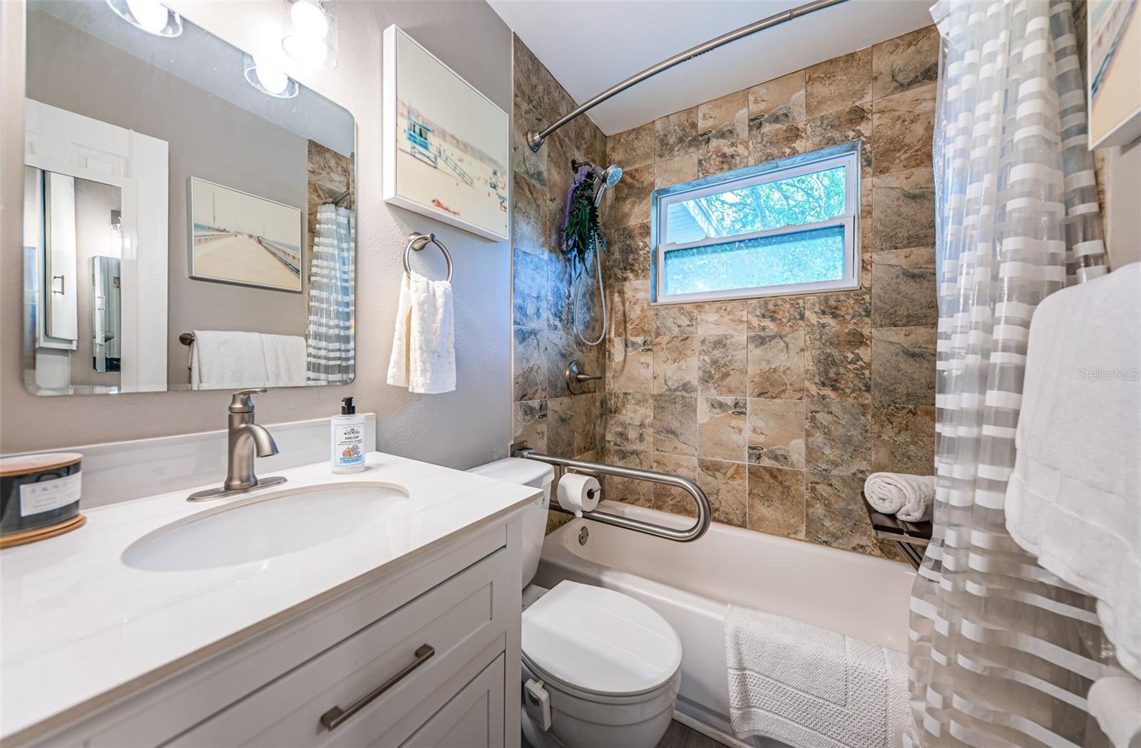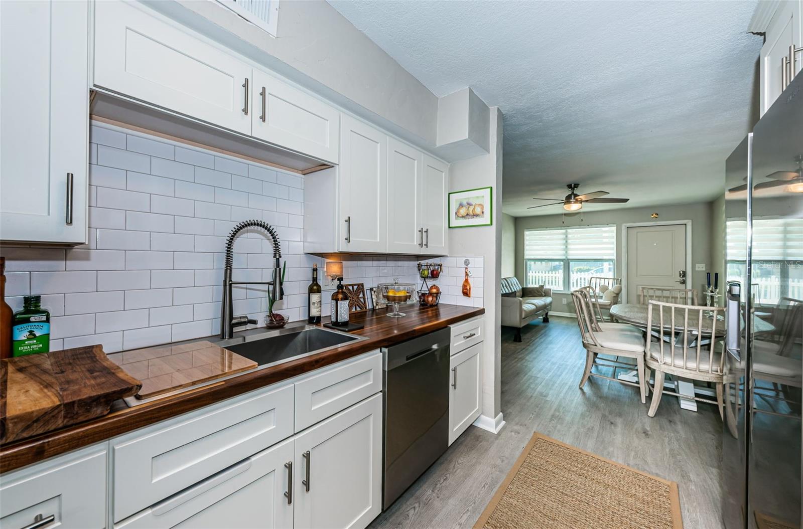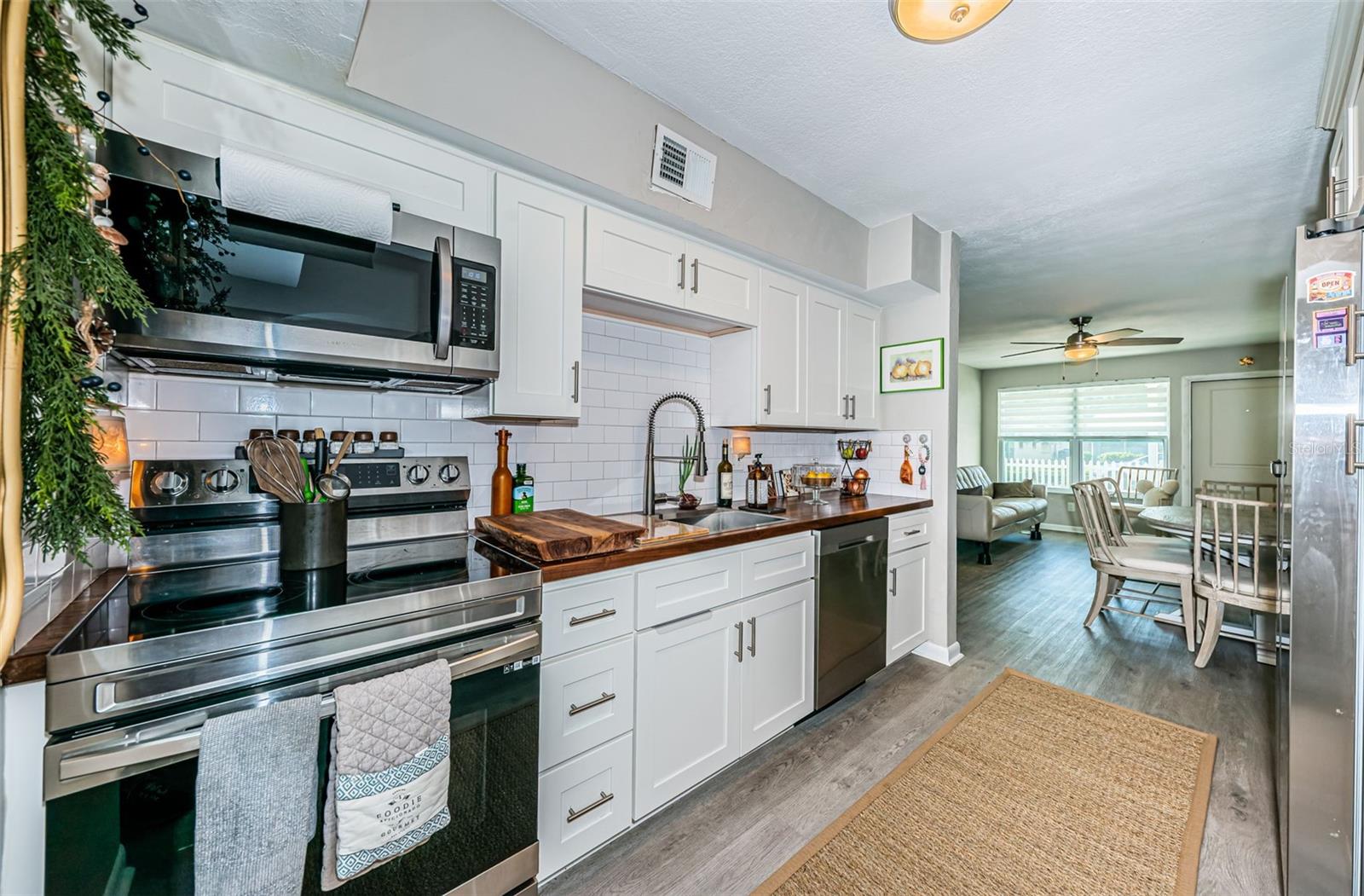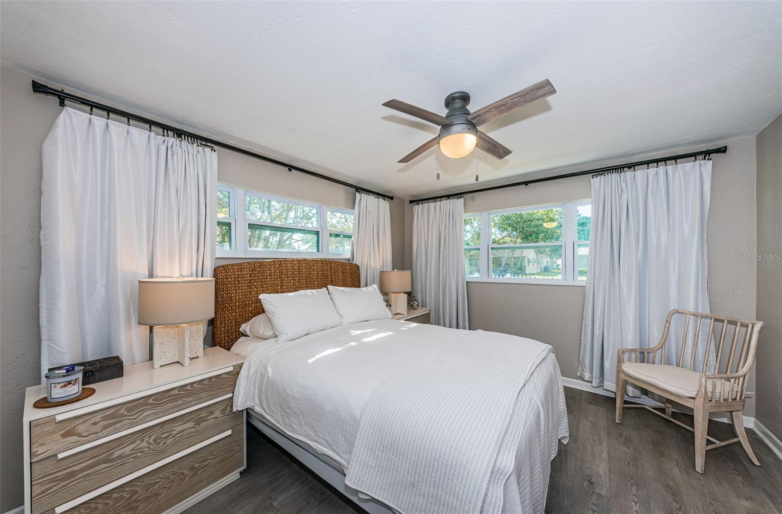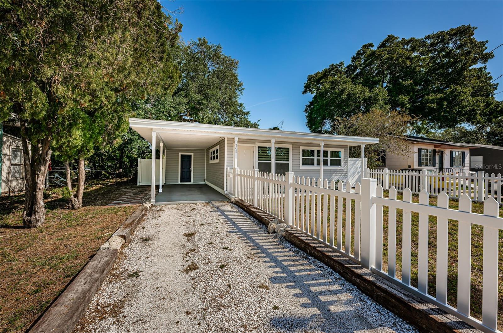 BEAUTIFUL, COMPLETELY RENOVATED HOME LOCATED IN NORTHEAST ST PETERSBURG! This 3 bedroom, 1 bathroom home conveniently located between 4th Street and 9th Street will not disappoint! Home has recently been completely renovated. Home boasts luxury vinyl floors, renovated bathroom, beautiful kitchen with stainless steel appliances, butcher block countertops, custom cabinet and beautiful tile floor in the large rear room of the home. Spacious rear room can be used as Primary Bedroom, large Florida room or living area opening out to the beautifully serene fenced backyard. Relax under the stars next to the fire pit area or birdwatch through the trees along the 54th Avenue E Canal. Vinyl fencing all round the home front and sides, chain link fencing overlooking the canal, extra gates on the sides. This home includes a large designated mudroom./laundry room off of the carport which opens up to the back room. New and elegant blinds on the windows. New roof in 2022 with transferable warranty, new windows in 2022, new hot water heater in 2022, newer A/C in 2019 and updated electrical in 2022. THIS HOME IS A MUST SEE! Make your appointment today!