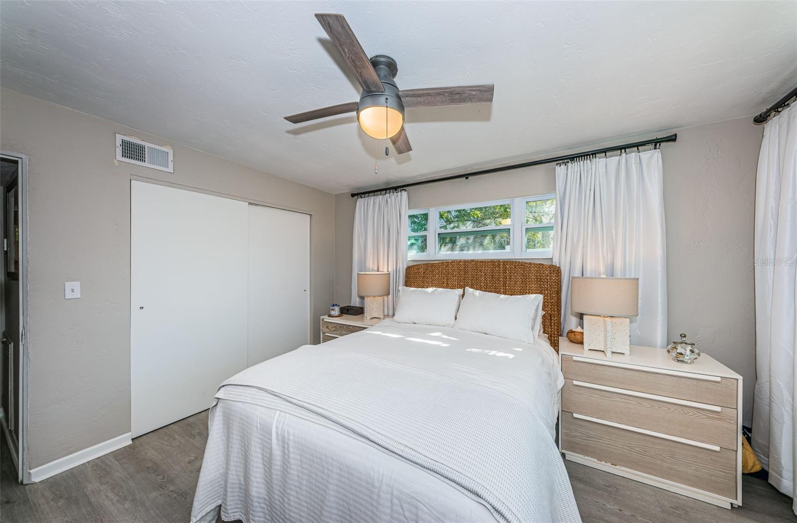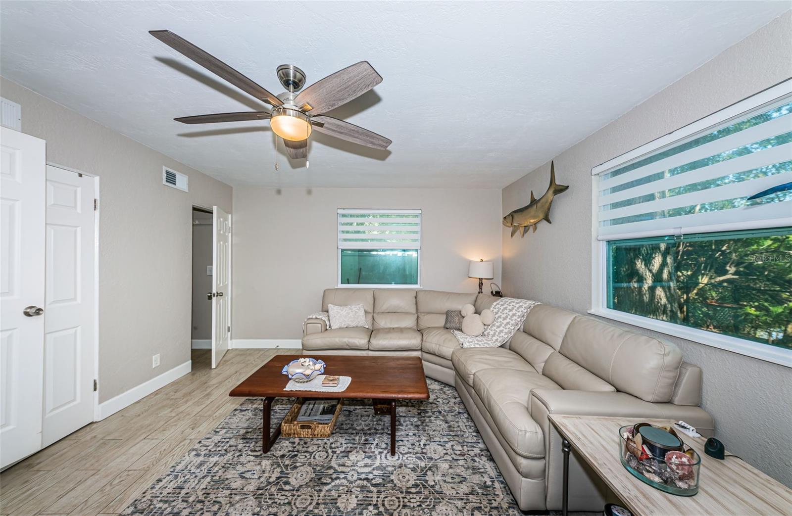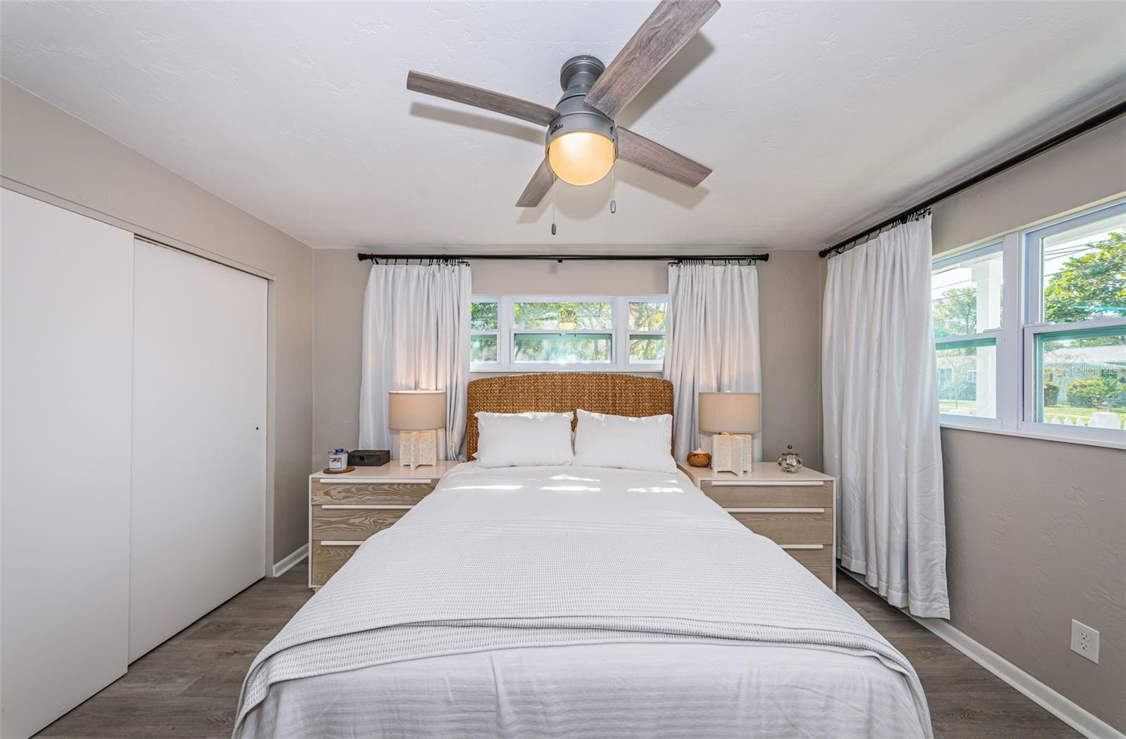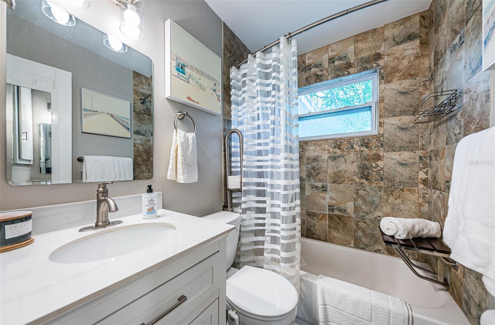 BEAUTIFUL, COMPLETELY RENOVATED HOME LOCATED IN NORTHEAST ST PETERSBURG! This 3 bedroom, 1 bathroom home conveniently located between 4th Street and 9th Street will not disappoint! Home has recently been completely renovated. Home boasts luxury vinyl floors, renovated bathroom, beautiful kitchen with stainless steel appliances, butcher block countertops, custom cabinet and beautiful tile floor in the large rear room of the home. Spacious rear room can be used as Primary Bedroom, large Florida room or living area opening out to the beautifully serene fenced backyard. Relax under the stars next to the fire pit area or birdwatch through the trees along the 54th Avenue E Canal. Vinyl fencing all round the home front and sides, chain link fencing overlooking the canal, extra gates on the sides. This home includes a large designated mudroom./laundry room off of the carport which opens up to the back room. New and elegant blinds on the windows. New roof in 2022 with transferable warranty, new windows in 2022, new hot water heater in 2022, newer A/C in 2019 and updated electrical in 2022. THIS HOME IS A MUST SEE! Make your appointment today!