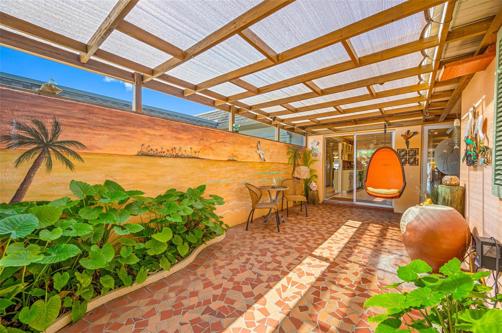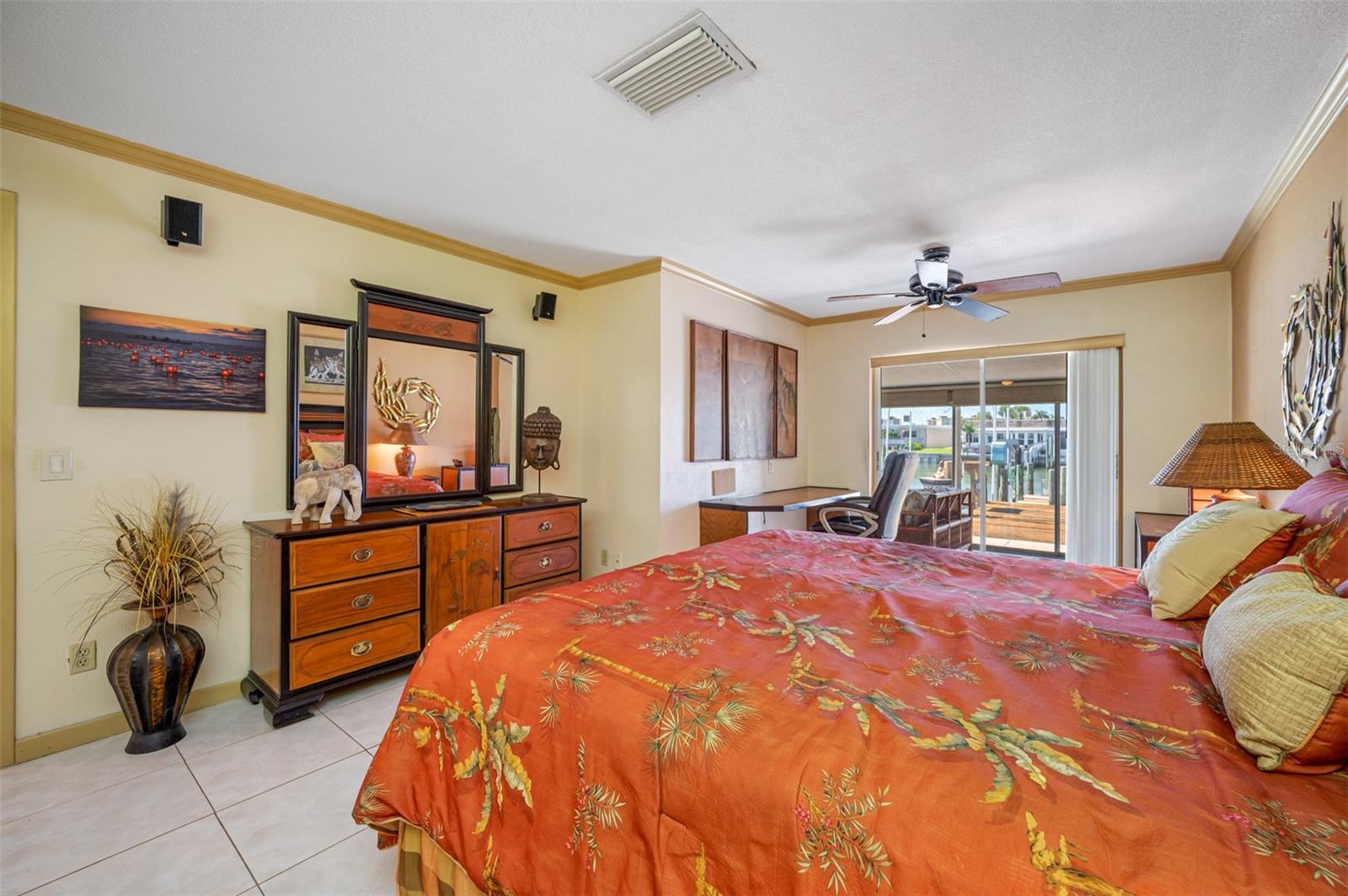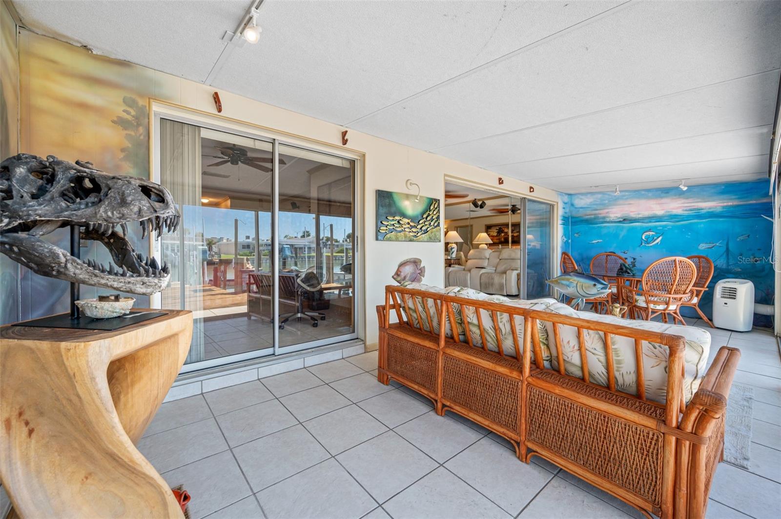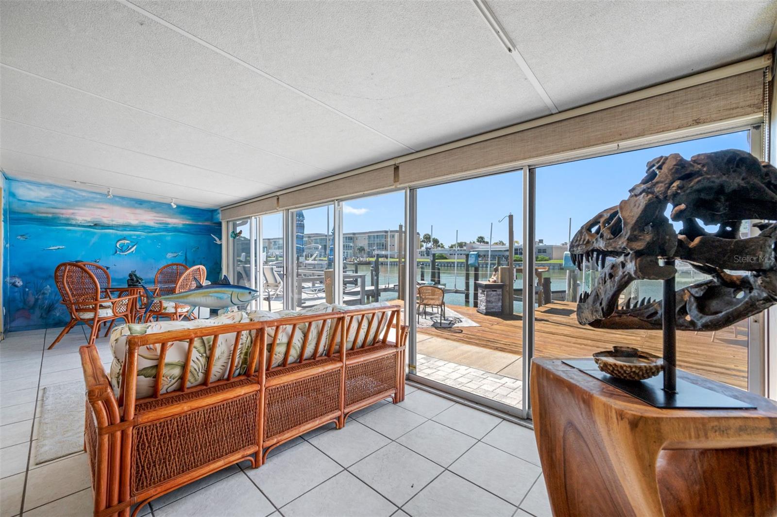 Back on the market, buyer’s financing fell through. Calling all Boaters and Beach Lovers! Vacation year-round in the sought after Boca Ciega Point 55+ Boating Community located around the corner from world famous Madeira Beach. This tropical paradise features all the amenities of a home without the work. The delightful courtyard entry features wall murals of coastal scenery and Florida foliage with plenty of room for relaxing and entertaining guests. As you enter this 1400+ Sq. Ft. spacious villa, you will enjoy the views of the water from the kitchen, dining and living room. The main living areas are tiled and feature crown molding, ceiling fans, and recessed lighting. There is a theatre area with a 75” built-in 3-D TV, and surround sound in each room. The adjoining Florida room adds additional living space/square footage (10’ x 25’) and features an under-water mural. Wake up to water views from the primary bedroom with private bath and two closets. The tiled second bedroom features a faux-fire place and access/views to the courtyard. The second bath features a walk-in shower. The over-sized 1 car garage has plenty of additional storage, work bench, washer/dryer & extra fridge and water softener. Best of all, you can walk out your back door to your private boat slip with 16K Lift, along with an ample sized dock and finger pier for easy access to boat. The dock has a fish cleaning table and electric/water service. Boaters love the quick Gulf access via John’s Pass and the many restaurants up and down the intracoastal. This condo allows for room to bring your personal style and updates as needed and is priced accordingly with similar condos sold up to the $700K + range. Boca Ciega Point is gated with 24-hour security and managed on-site with homeowner elected Board members who maintain this beautiful, sought after community. There are endless activities, annual events and parties: heated pool, gym, library, tennis courts, pickleball, shuffleboard, bocci, 9 hole putting green and boat club, to name a few! Bocan’s call it the Beast Kept Secret near the beaches!