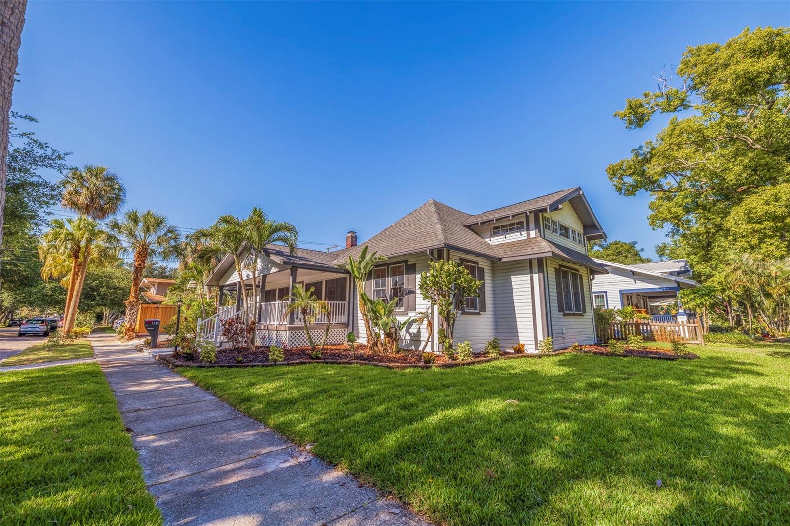 Located high and dry!! No wind or water damage during the last two hurricanes!! This home has a Generac generator installed that would provide power to the entire house in the case of a power outage. Dont' miss this rare opportunity to own a freshly updated home on one of the premier blocks of highly sought after Old Northeast! This light and bright traditional 4 bedroom and 3 bath home has been impeccably renovated with a brand new shingle roof. The home is situated on a 60' x 110' corner lot offering an expansive, warm and inviting front porch for socializing to enjoy St. Pete's year-round beautiful weather. Greet your guests in the casual foyer with custom built-ins and a wood-burning fireplace, and beautifully refinished hard wood floors! As you walk towards the kitchen, you pass through the oversized dining room that is great for family gatherings. The kitchen offers granite countertops with plenty of room for cooking big meals for guests, stainless steel appliances, and tons of storage in the meticulously crafted wood cabinets. The primary suite boasts a large master bath with a walk in closet and double vanity. Enjoy lots of natural lighting from the skylight as well as your own separate access to your private oasis featuring an in-ground pool for that resort like feel. This home features multiple bedrooms and a second en suite to make your guests feel right at home. The recent updates to the bathrooms are a testament to modern elegance, continuing the high-end design found throughout the home. Additionally the upstairs space could serve as a great den/ office space for the new home owner. No rock was left unturned with this remodel. If ever you decide you want to leave this exquisitely designed home, you are within walking distance to Vinoy Park, Beach Drive, Downtown St. Petersburg, and all of its most popular restaurants, breweries, boutiques, museums, parks and beaches. Call for a private showing today and start living the St. Pete Lifestyle on one of the most desirable neighborhoods in all of Florida!!