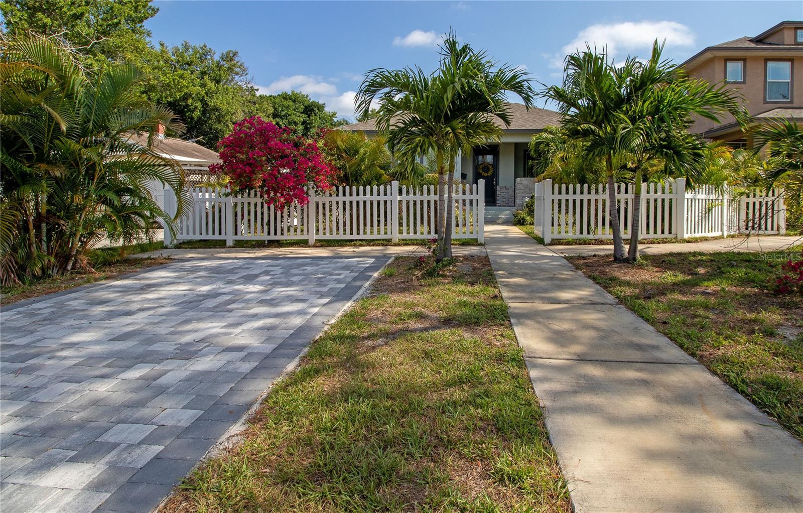 Seller may consider buyer concessions if made in an offer. Welcome to this stunning, newer construction home in the heart of St. Petersburg, meticulously crafted in 2020. As you arrive, the custom-installed lush landscaping and mature trees create an inviting atmosphere, while pavered walkways lead you to a charming front porch. Step inside to a spacious, light-filled interior showcasing luxurious wood grain ceramic tile flooring that extends throughout the home, offering a seamless flow and easy maintenance. The open floor plan is perfect for entertaining, featuring a large living area that effortlessly connects to the dining space and a chef’s kitchen. This culinary haven is equipped with HIGH-END APPLIANCES, TOP-TEIR GRANITE COUNTERTOPS, exquisite cabinetry with crown molding, and a convenient pantry. The master suite is a private retreat designed for relaxation, complete with a soothing soaking tub, dual vanities, a linen closet, and a view of the serene outdoor greenery. Additional bedrooms are cozy and comfortable with plush carpeting and ample closet space. NO EXPENSE WAS SPARED with landscaping, fencing, extra parking, well installed for sprinklers, screened in porch and window coverings all added after homeownership. Upgrades and features designed to enhance comfort and convenience. The fully screened porch offers a tranquil setting for morning coffees or evening relaxation, while the practical laundry room simplifies daily chores. In the two-car detached garage, overhead storage solutions maximize space, making organization a breeze, PLUS 2 PAVERED PARKING PADS. A well-installed irrigation system keeps the lush landscaping vibrant and cost-efficient by saving on water expenses. Additionally, the backyard is fully enclosed with vinyl fencing, providing privacy and security for peaceful living. HIGH AND DRY, NON FLOOD ZONE! Prime LOCATION! This neighborhood offers a quick 7-minute commute to downtown St. Petersburg, where you can enjoy world-class dining, shopping, entertainment, events, and sports venues. Take a stroll through scenic Vinoy Park and along Coffee-Pot Bayou, where you might spot manatees and dolphins playing in the water. Plus, you're just 20 minutes from the world's best beaches and Tampa International Airport. This home is not just a living space but a lifestyle upgrade. Don’t miss the opportunity to own a slice of paradise in St. Petersburg, where every detail is designed for supreme comfort and style.