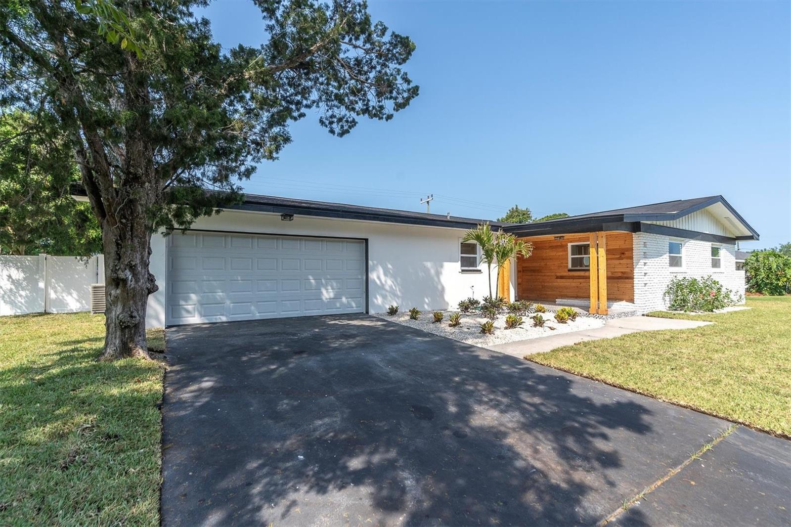 One or more photo(s) has been virtually staged. **One of a few homes that did not flood for Hurricane Helene** Wonderful freshly painted three bedroom, two bath home with an oversized two car garage is situated on 0.23 of an acres in the amazing neighborhood of Maximo Moorings. You will love all the natural light this home has. There have been so many updates in this spectacular home. When you enter you love the large open concept, tile in the living space and Luxury Vinyl in the bedrooms the home make for easy maintenance and cleaning. The primary bedroom has a beautiful en-suite bath, all bedrooms are good size, not your typical small room home. A huge screen rooms lets you enjoy the beautiful weather. If you are looking for a home that is move in Ready, close to the beach and will be low maintenance, you have found your dream home! The kitchen was remodeled in 2023, A/C 2015, roof done in 2023, Impact windows 2023, new plumbing including the lateral line, irrigation, sod, insulation and much more. This large lot in Maximo is big enough to add a pool. This home is walking distance to Tiki docks for a great meal or cocktail, walk to Publix or so much more! Maximo Moorings is ideally located to I-275, restaurants, shops & Maximo Marina which just underwent $20 million in renovations and upgrades and includes the new restaurant, Tiki Docks! Only minutes to the Gulf beaches, Eckerd College, downtown St. Pete and only 20 minutes to Tampa! Do not miss this beauty - call today to schedule your appointment.