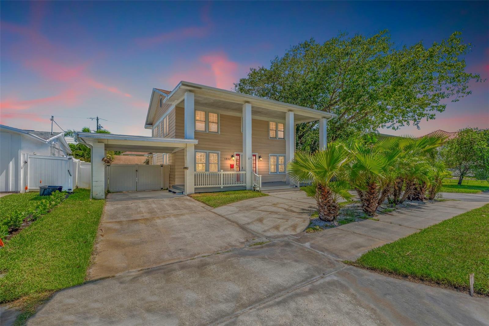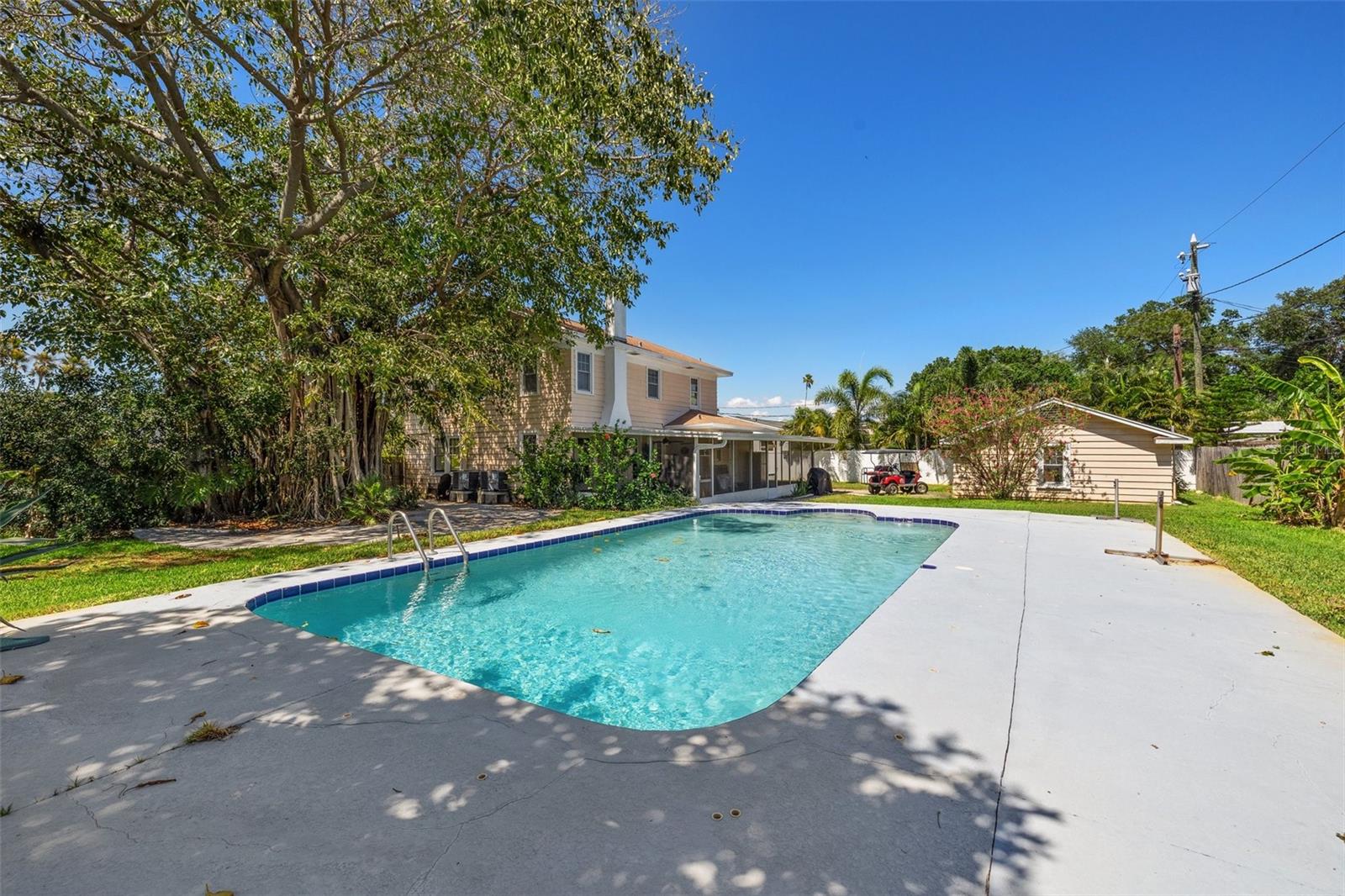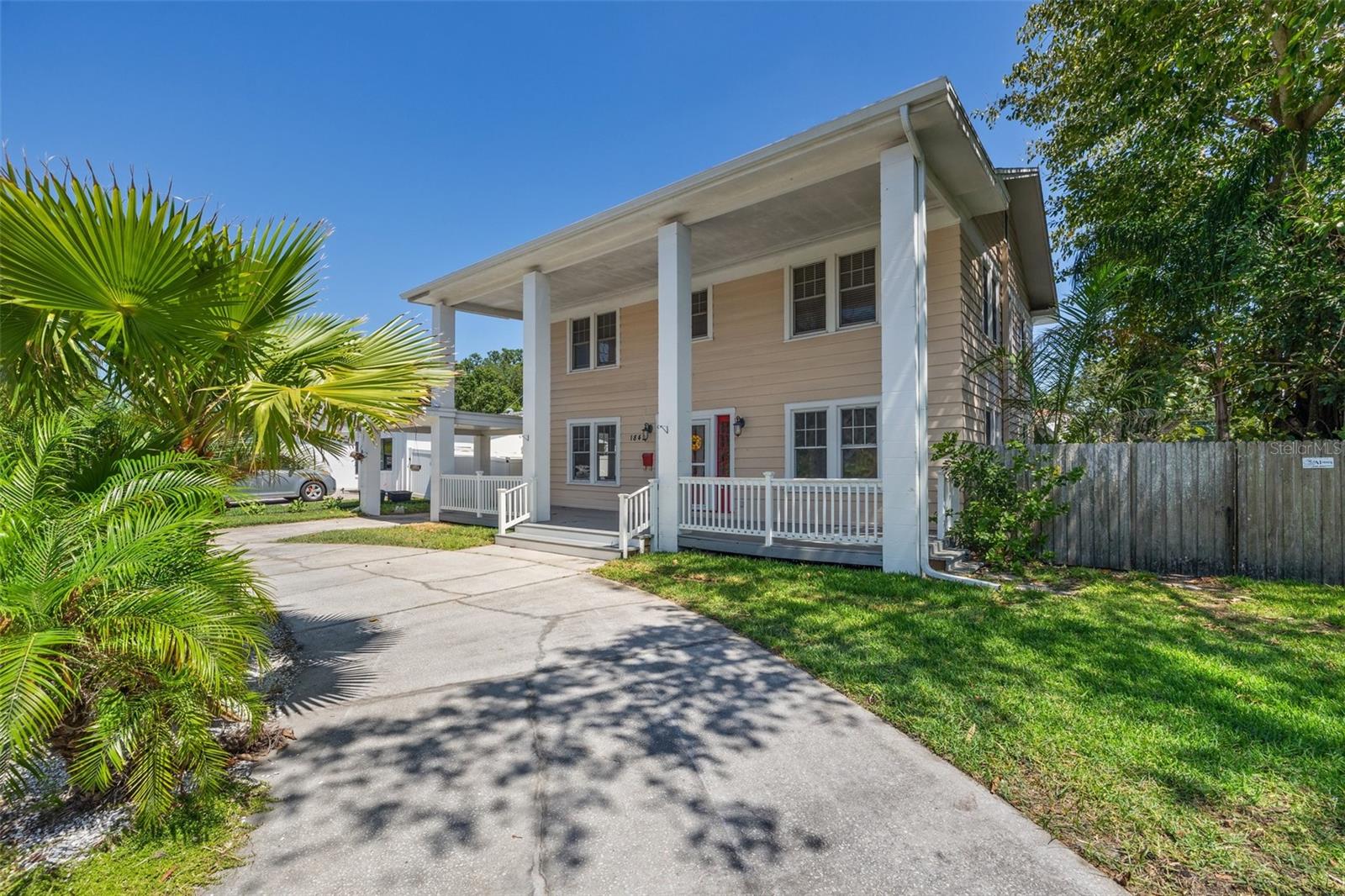 Do not miss out on one of the most unique properties in NE St Pete. This 1925 Colonial POOL home sits on an expansive DOUBLE lot and offers 4 bedrooms, 2.5 bathrooms, and a detached 2 car garage. Charm abounds throughout every inch of this property - inside and out. Driving up to this residence you are greeted with a circular driveway, sprawling front porch and grand pillars. Upon entry, you'll immediately feel the warmth and charm of this home with its original staircase, hardwood floors, wood burning fireplace, french doors, crown molding and more. Downstairs is the perfect place for entertaining guests and spending time with loved ones where you'll find a dining room perfect for hosting and a grand living/family room that opens up to your large screened in lanai. The foyer leads to the breathtaking newly renovated kitchen with custom wood cabinetry, Quartz countertops and top of the line LG appliances. Just past the kitchen you will find the laundry room and beautifully designed powder bathroom with custom cabinetry and Quartz countertops. Upstairs in addition to the primary ensuite, there are (3) spacious bedrooms perfectly positioned in each corner along with a full guest bathroom. The backyard is a showstopping feature of this home and has one of the most stunning Banyan trees you'll ever see. There is so much space to entertain and enjoy the Florida lifestyle. Additional noteworthy upgrades and features include: Downstairs Electrical Rewire (2024), Fresh Stonework and Walnut Mantle on Fireplace (2024), New Hardwood Flooring Downstairs (2024), Fresh Interior Paint (2024), Custom Closet and Millwork completed in Nursery (2023), (2) HVAC units (2020), Downstairs Re-plumbed (2020), Carport Roofs (2022), Electric Water Heater (2022). There is no lack of parking with the circular driveway, additional covered parking under the carport & room for boat/RV/golfcart parking as well. Located just blocks from the waterfront and all that Downtown St Pete has to offer with easy access to I-275, Tampa International Airport and our top rated Gulf Beaches. Seller's current flood policy of $3,545 is assumable to the new buyer. The pride of ownership that has gone into this home over the years is undeniable. Call today for your private showing and be prepared to fall in love with 1842 Nebraska Avenue.