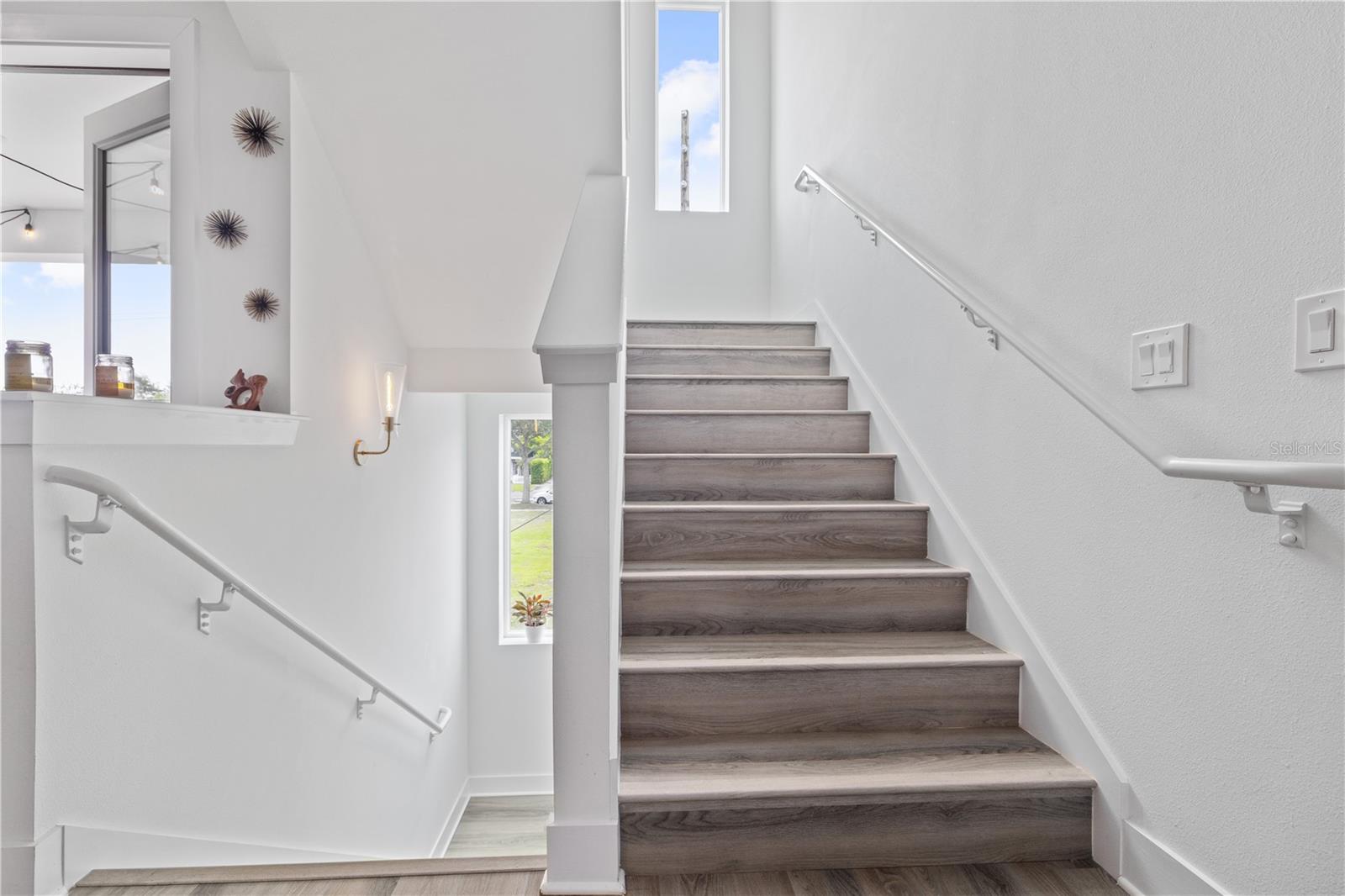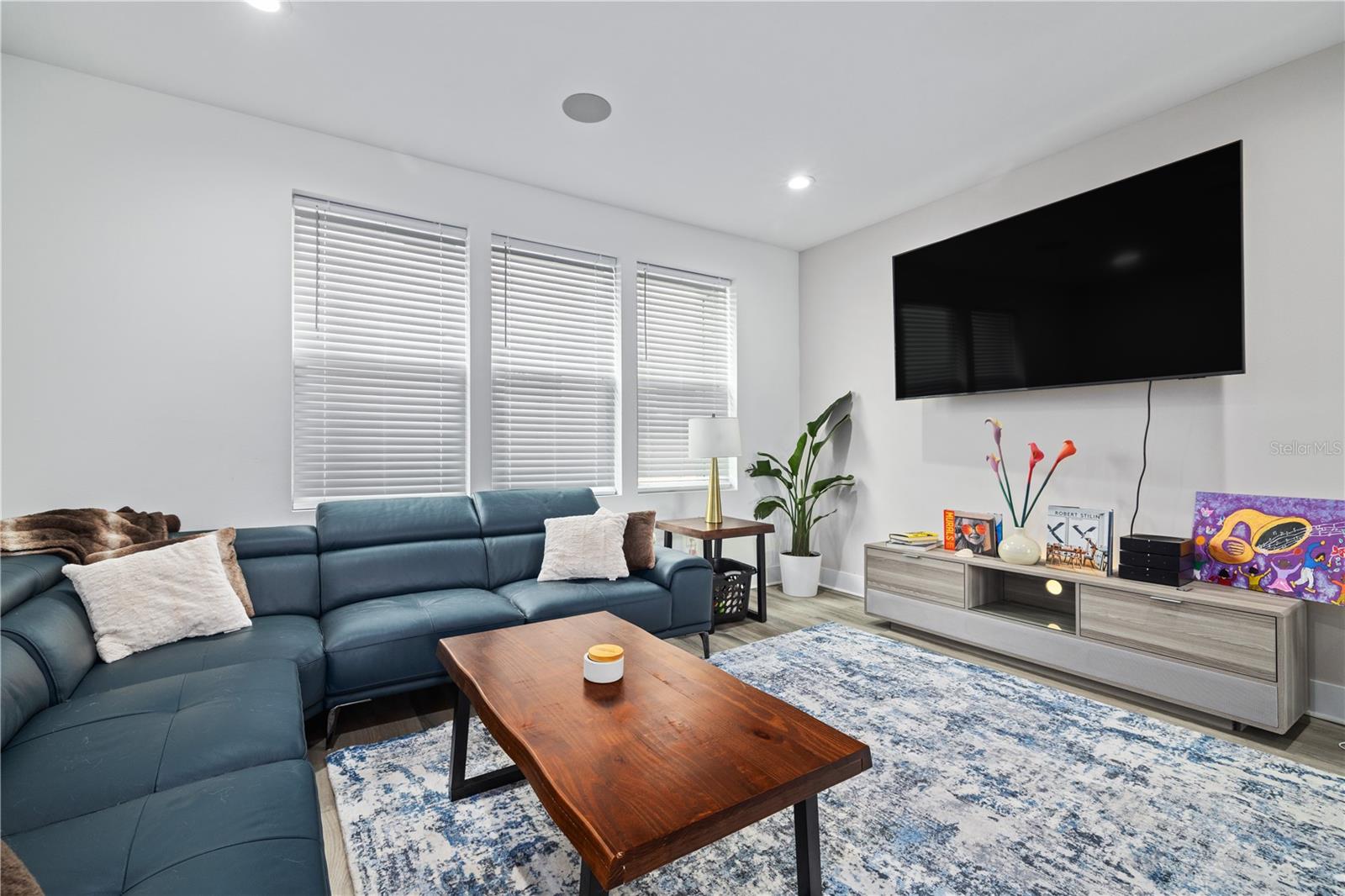 Indulge in the extraordinary elegance of this exceptional corner unit, a masterpiece of upgraded newer construction, nestled in the vibrant Grand Central District. This townhome is truly one-of-a-kind, boasting a myriad of luxurious enhancements that will captivate your senses. Prepare to be enchanted by the Sonos 10-inch ceiling speaker system, complete with three amps, creating a harmonious symphony of sound throughout. The level two quartz countertops exude opulence, while the luxury engineered wood LPV flooring adds a touch of grandeur to every step. With impact windows, you can enjoy both security and serenity, while the opulent light fixtures cast a warm and inviting ambiance. The Cat 6 upgraded electrical system ensures seamless connectivity, and the extra cabinets provide ample storage space for all your treasures. Adorned with luxury champagne bronze fixtures and Delta plumbing fixtures, the baths boast subway tiles that lend a timeless elegance. The upgraded stainless reel appliances and gas cooking surface elevate your culinary experience, while the large kitchen island becomes the heart of your home. Step onto the spacious balcony off the kitchen and bask in the natural light, creating an idyllic setting for entertaining. The high-end plank tiles in the wet areas exude sophistication, while the massive walk-in shower in the main suite offers a sanctuary of relaxation. Complete with the convenience of upstairs laundry and a main walk-in closet, this exceptional dream home is an opportunity not to be missed.