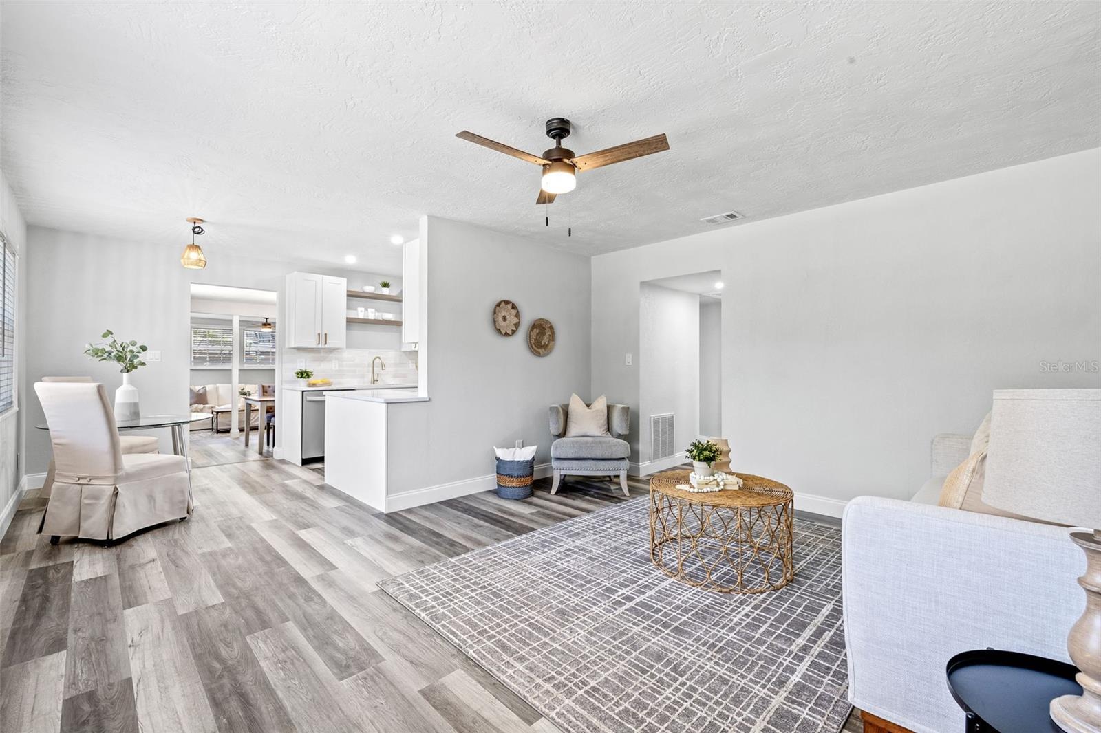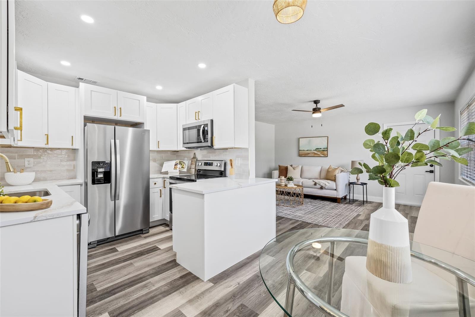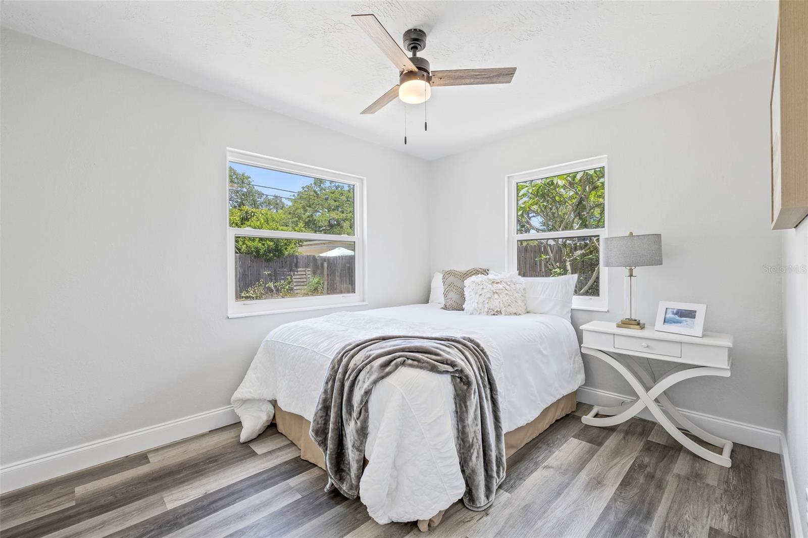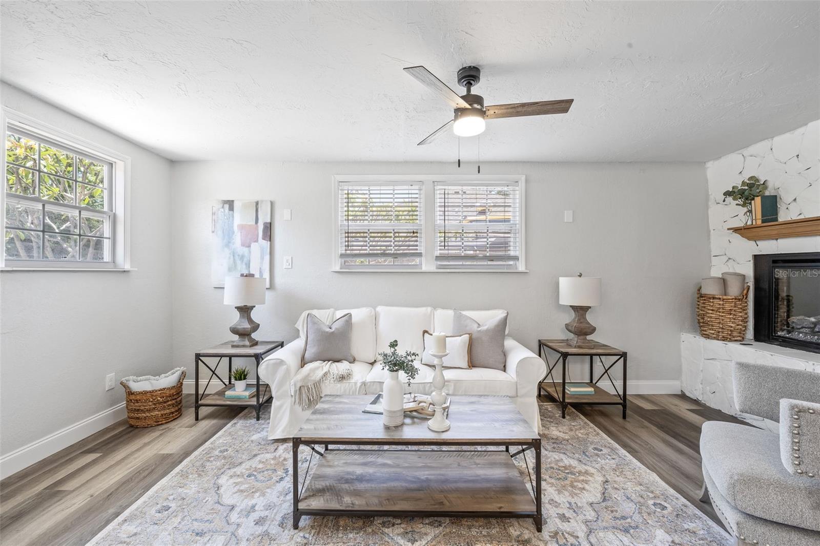 Seller motivated. Be this close to the water and NO FLOOD INSURANCE! Welcome to this mid-century charmer! A beautiful kitchen highlighted with upgraded quartz counters, shaker cabinets and new stainless steel appliances. Plenty of cabinets for storage and ample counter space for cooking your favorite meals. Enjoy a dining area for nightly dinners or hosting friends and family. Step into the living room to relax or step outside and enjoy the wonderful Florida weather on the large screened in patio. Updated with new interior and exterior paint and all new luxury vinyl floors. This home is further complemented by a tiled bathtub/shower, fenced-in spacious backyard with a side yard large enough to store a boat. The special custom touches make this house feel like it was made just for you. Have peace of mind with a new roof (2023), hurricane impact windows, new whole house plumbing, and newer electrical. When you're ready to get out of the house the ocean, Pinellas Trail and Azalea park are a short walk or bike ride away. The Azalea community has neighborhood events scheduled throughout the year. Schedule your showing today!