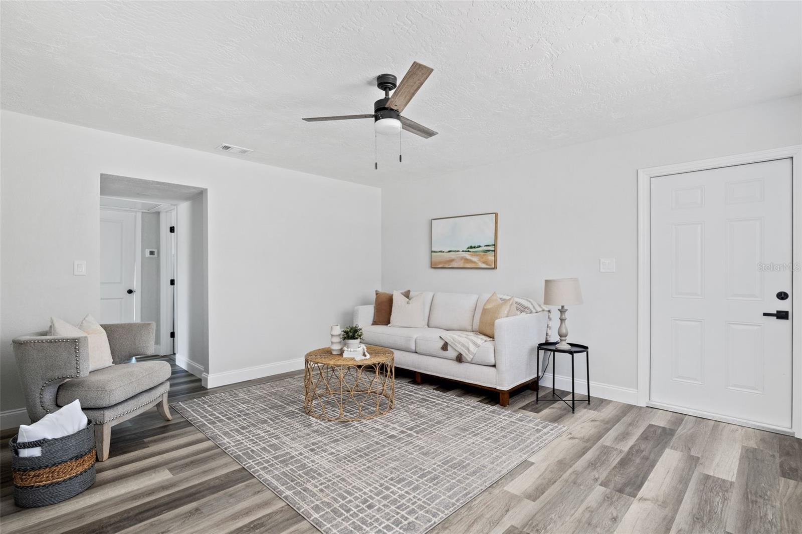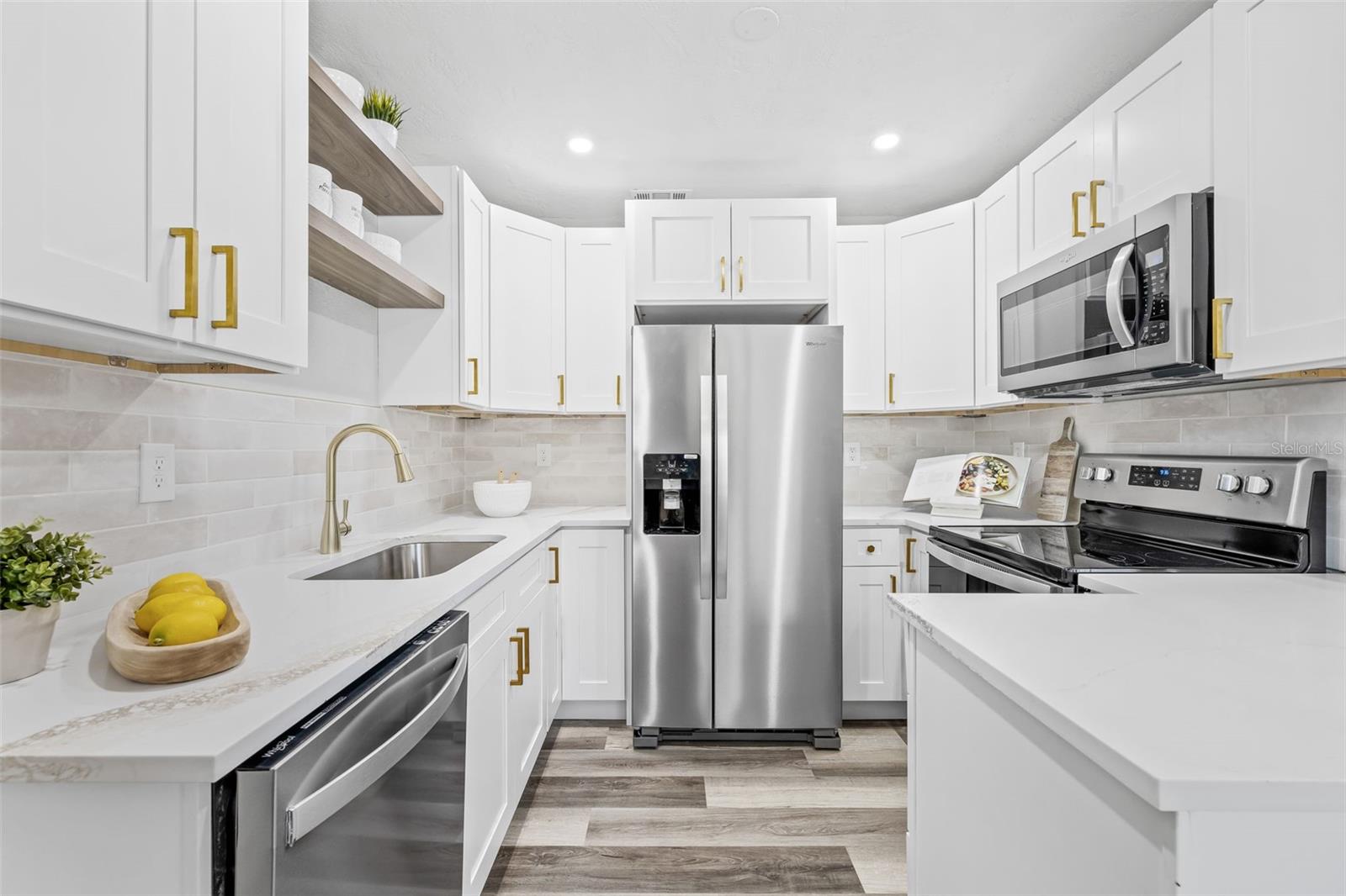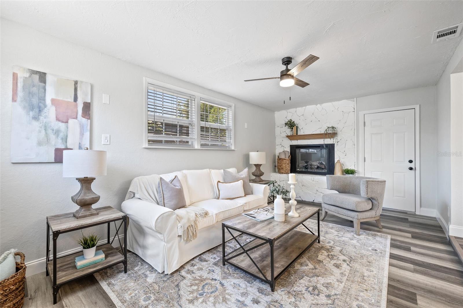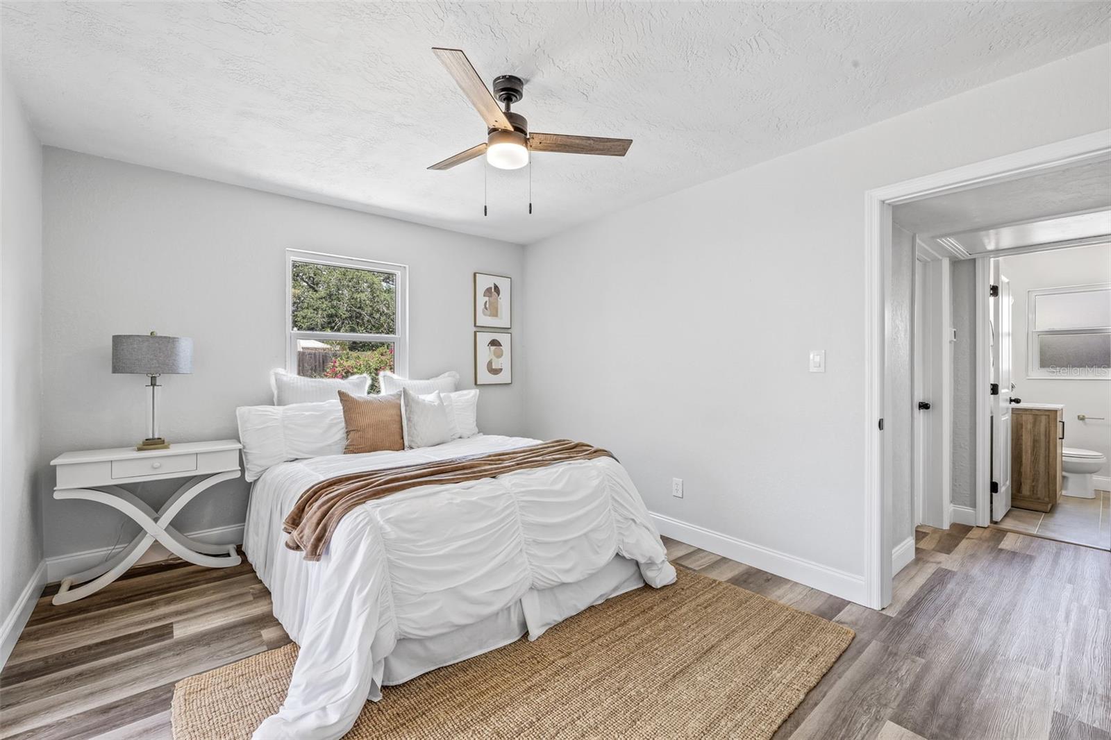 Seller motivated. Be this close to the water and NO FLOOD INSURANCE! Welcome to this mid-century charmer! A beautiful kitchen highlighted with upgraded quartz counters, shaker cabinets and new stainless steel appliances. Plenty of cabinets for storage and ample counter space for cooking your favorite meals. Enjoy a dining area for nightly dinners or hosting friends and family. Step into the living room to relax or step outside and enjoy the wonderful Florida weather on the large screened in patio. Updated with new interior and exterior paint and all new luxury vinyl floors. This home is further complemented by a tiled bathtub/shower, fenced-in spacious backyard with a side yard large enough to store a boat. The special custom touches make this house feel like it was made just for you. Have peace of mind with a new roof (2023), hurricane impact windows, new whole house plumbing, and newer electrical. When you're ready to get out of the house the ocean, Pinellas Trail and Azalea park are a short walk or bike ride away. The Azalea community has neighborhood events scheduled throughout the year. Schedule your showing today!